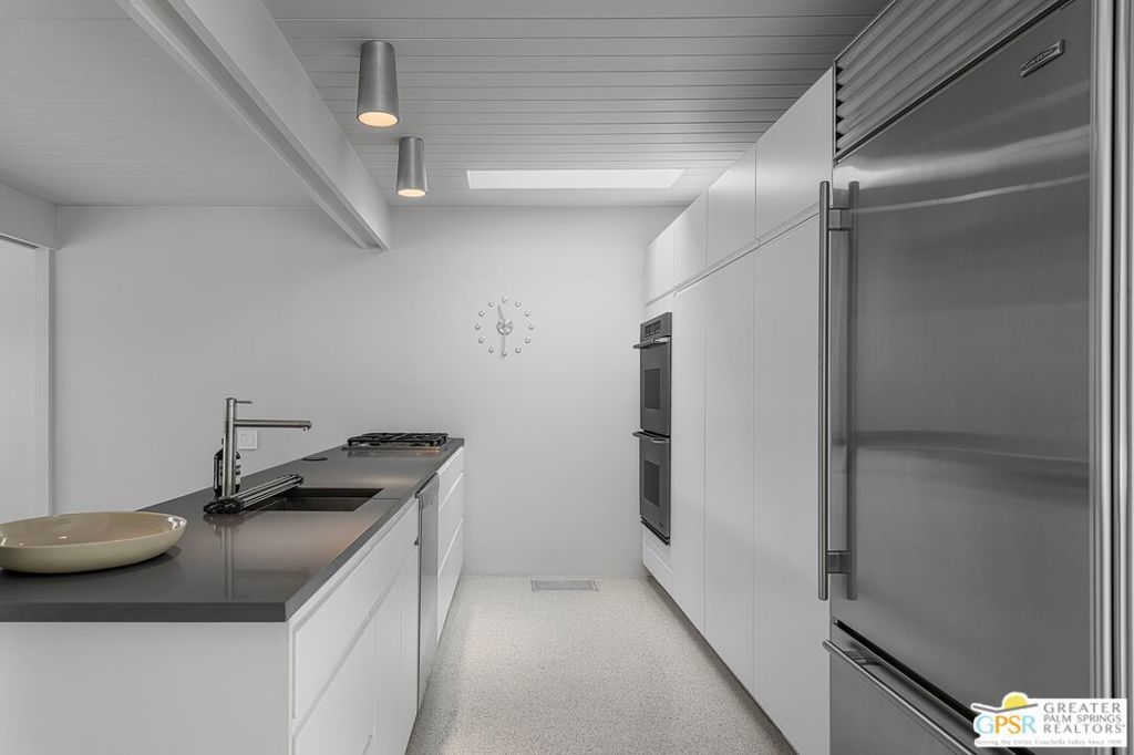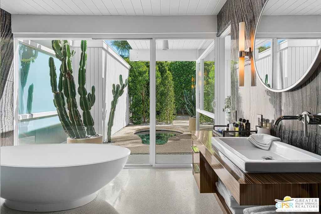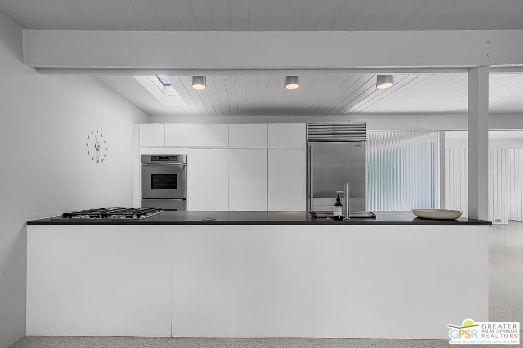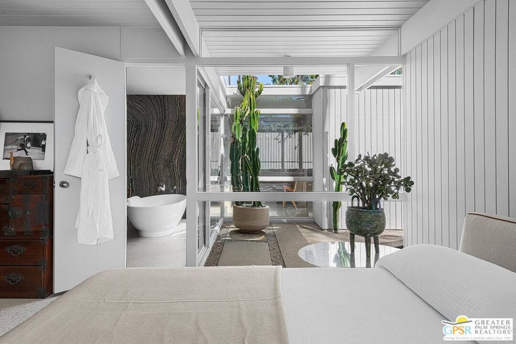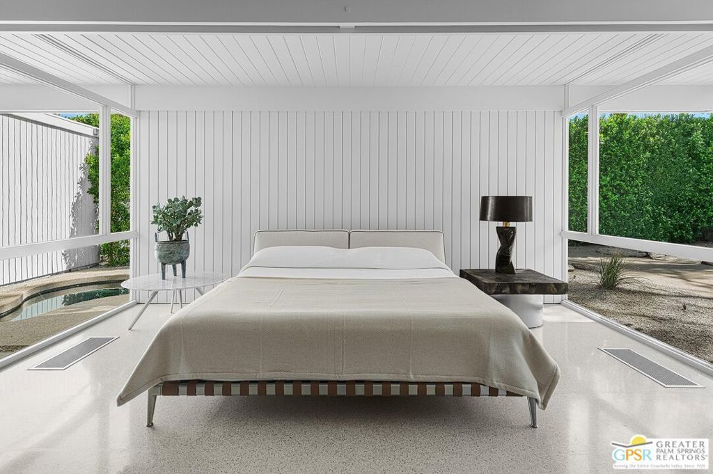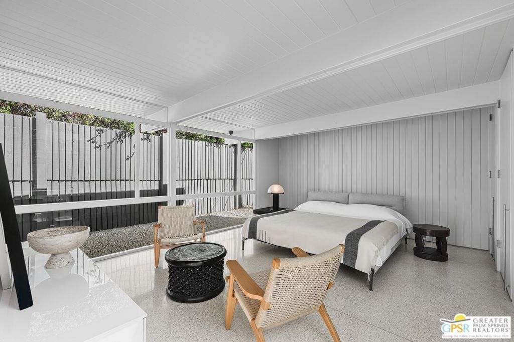 The Wexler Residence is one of Palm Springs' most significant architectural offerings - a deeply personal work of modernism designed in 1955 by Donald Wexler as his own family home. Privately set on approximately one-third of an acre in Movie Colony East, this Class 1 Historic Resource is listed on the National Register of Historic Places and offers the valuable benefit of Mills Act property tax savings. Distinct from the industrial language of Wexler's celebrated steel houses, the residence reveals a softer, more organic vision, shaped by his early work with Richard Neutra and William F. Cody. Its all-wood post-and-beam construction, open and flexible floor plan, floor-to-ceiling glass, and deep overhangs create a seamless relationship between architecture, landscape, and light. From 2007 to 2026, the home underwent a museum-quality restoration completed in three phases, preserving its architectural integrity while elevating it for contemporary living. In a rare full-circle collaboration, Donald Wexler himself, together with architect Lance O'Donnell and designer Darren Brown, helped shape a comprehensive restoration honored with the Palm Springs Modern Committee's Residential Restoration of the Year Award. Original vertical fir siding and spun metal lighting were meticulously preserved, while terrazzo floors, marble surfaces, refined European fixtures, a new roof, updated HVAC, and solar were thoughtfully integrated. Hidden behind gates and a mature perimeter hedge, the grounds unfold as a private desert retreat with native landscaping, ancient boulders, a striking black-bottom pool, detached spa, and sweeping San Jacinto Mountain views - an extraordinary union of historic significance, architectural purity, and beautifully restored modern living.