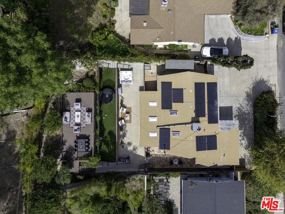 Come experience a little slice of heaven. So many things make this home the perfect place to make memories. From the exceptional location to the outdoor options, this gem is ideal for those wanting to live an indoor/outdoor lifestyle while being in close proximity to shopping, entertainment and dining. Located on a lightly travelled street that dead-ends, this one-story home has a large open kitchen with eat-at counter, adjacent dining area and additional charming dining patio outside. The living room is comfortable and cozy with an office and bedroom off one side and a hallway leading to the other two bedrooms and a bathroom on the other side. The master bedroom has a recently remodeled on-suite bathroom. The other bedroom has a large patio for outdoor play. The backyard has been completely utilized with several levels - one with a hot tub and plenty of lounging space, an additional turfed level with trampoline and recreation space and an upper level deck for your city-light viewing and entertaining. Solar panels installed in 2021 will be paid off by seller providing huge savings for the new owner. Tendilla Drive awaits!