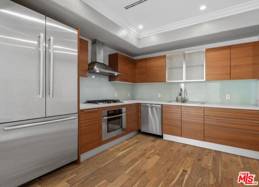 Experience modern luxury living in the heart of West Hollywood. This stunning two-story townhouse is located in a premier building originally constructed as a condominium, offering superior quality and design throughout. Enjoy direct street access as well as private entry from the secured, gated parking area. Spanning approximately 1,910 square feet, the residence features two spacious primary suites with walk-in closets, two and a half well-appointed bathrooms, soaring ceilings, and recessed lighting. The sleek chef's kitchen boasts premium Bosch stainless steel appliances and generous counter space perfect for both everyday living and entertaining. Additional highlights includes an in-unit washer and dryer, a private balcony, and a dedicated private storage room. The building also offers a rooftop deck with sweeping 360-degree views of the city and mountains. Ideally situated just moments from Sunset Boulevard and some of West Hollywood's best restaurants, boutiques, and nightlife. 12+ lease term.