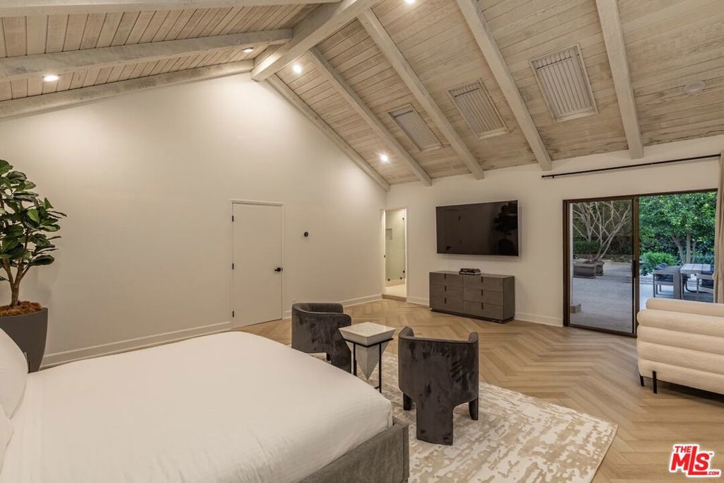 Welcome to an ultra rare jewel in the Flat of Beverly Hills a sprawling little shy of one acre (40,478 sq. ft.), fully gated estate featuring a single level, 7,000 sq. ft. residence, offered for the first time in more than three decades. Designed to evoke a true resort style lifestyle, this masterfully remodeled property boasts a heated saltwater pool, private tennis and basketball courts, a full gym, and a state-of-the-art surround sound system, creating an unparalleled environment for relaxation and entertainment. The estate is thoughtfully appointed with five bedrooms in the main residence and two additional bedrooms in the private guest house, blending comfort with sophistication for family and guests alike. A chef's kitchen with professional grade appliances anchors the home, while expansive living areas flow seamlessly to lush, manicured grounds ideal for hosting gatherings or enjoying tranquil privacy. Fully furnished with high-end Italian designer pieces, with flexibility to customize selections, the interiors reflect refined luxury tailored to your lifestyle. Security and peace of mind are assured with complete perimeter cameras, gated entry, and parking for 10+ cars. The estate also embraces modern flexibility with the option to pay in cryptocurrency, making this one-of-a-kind Beverly Hills retreat as forward thinking as it is timeless. Flexible lease term! available starting May 1st.