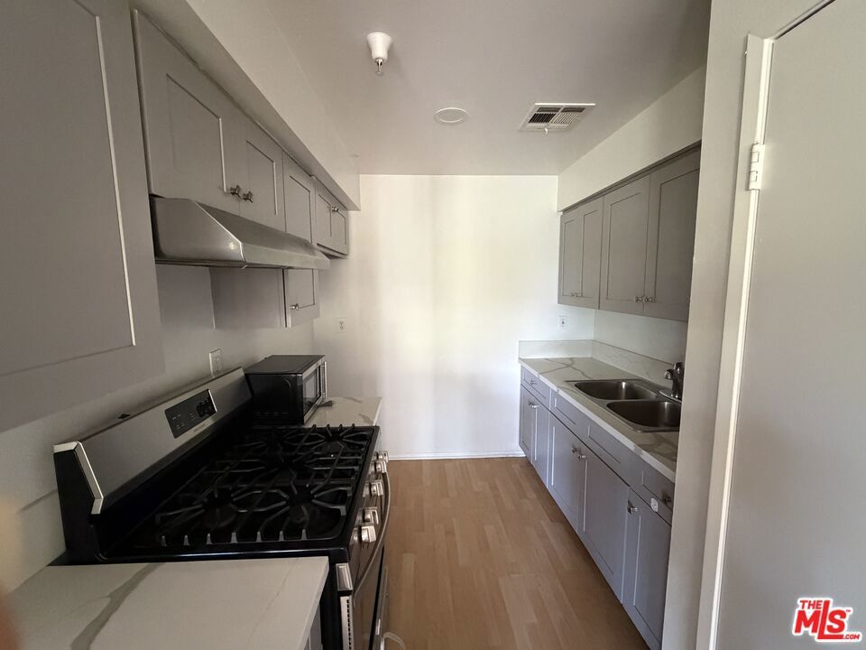Spacious 2-bedroom, 2-bath first-floor condo with approximately 1,100 sq ft of comfortable living space. Bright and airy unit features an open floor plan, large living room, updated kitchen and bathrooms, recessed lighting throughout, and wood-style flooring. Includes in-unit washer/dryer hookups, central A/C and heating, and abundant natural light. Secure building with elevator access, gated parking, and live security cameras in common areas. Enjoy a small private garden at the front door, for your own plants. Currently vacant. Text listing agent to schedule a showing.