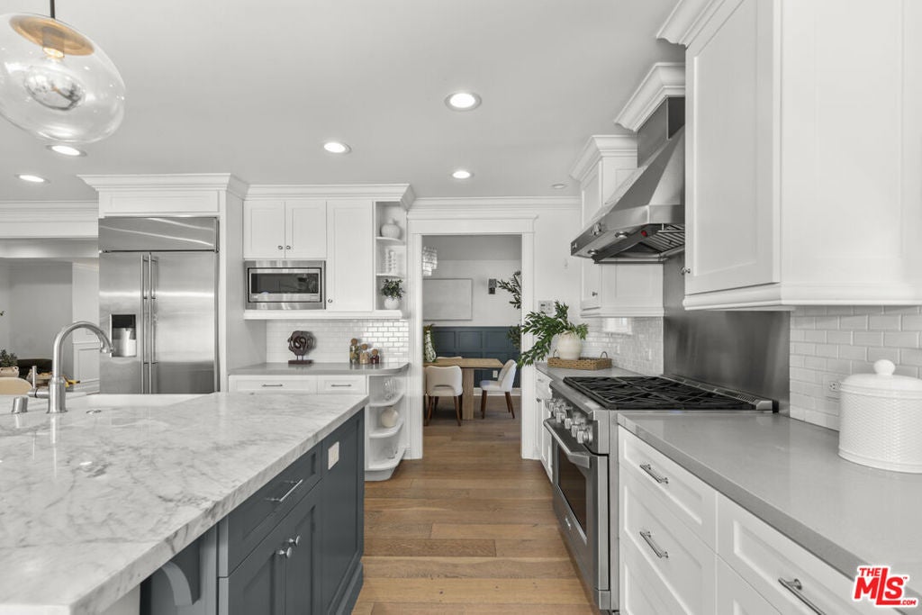 Stunning custom home located in the prestigious Mar Vista Elementary School district! Located on one of Mar Vista's quietest streets, this 2017 designed home is a perfect balance of elegance and comfort. With a bright and open floor plan, the home boasts a magnificent entryway and vaulted ceilings. The gourmet chef's kitchen is equipped with a large island, professional stainless-steel appliances, and a walk-in pantry. Bi-fold doors seamlessly connect the family room to a spacious patio and backyard, providing the perfect setting for indoor/outdoor living and entertaining. Designer touches throughout the home include white oak hardwood floors, natural and porcelain tiles, wainscoting, crowns, and custom cabinetry. Ample closets, a large laundry room, BBQ area with pavers, finished garage, and custom stonework further enhance the living experience. The first story features a beautiful primary suite with dual closets, vaulted ceilings, luxurious bathroom with large shower and separate tub, and vaulted ceilings. Two additional bedrooms with vaulted ceilings, a hallway bathroom, and large laundry room round out the first story. On the second level, you'll find a large junior suite and loft area ideal for use as an office, guest room, recreation room, or bedroom. Craftsmanship of the highest quality is evident throughout this home. Additionally, the house is designed to be environmentally friendly, boasting energy-efficient features such as double tank-less water heaters, double-pane doors/windows, LED lighting, and a high-efficiency AC system. Furthermore, the home comes pre-wired for LAN, cable, CAT5, and smart home capabilities.