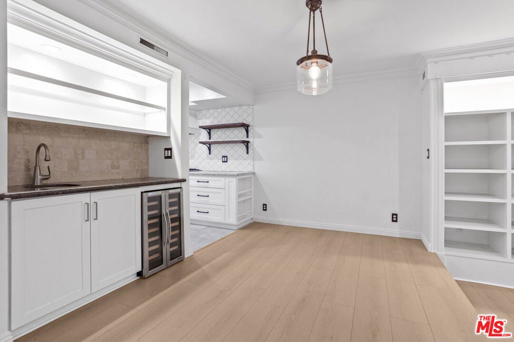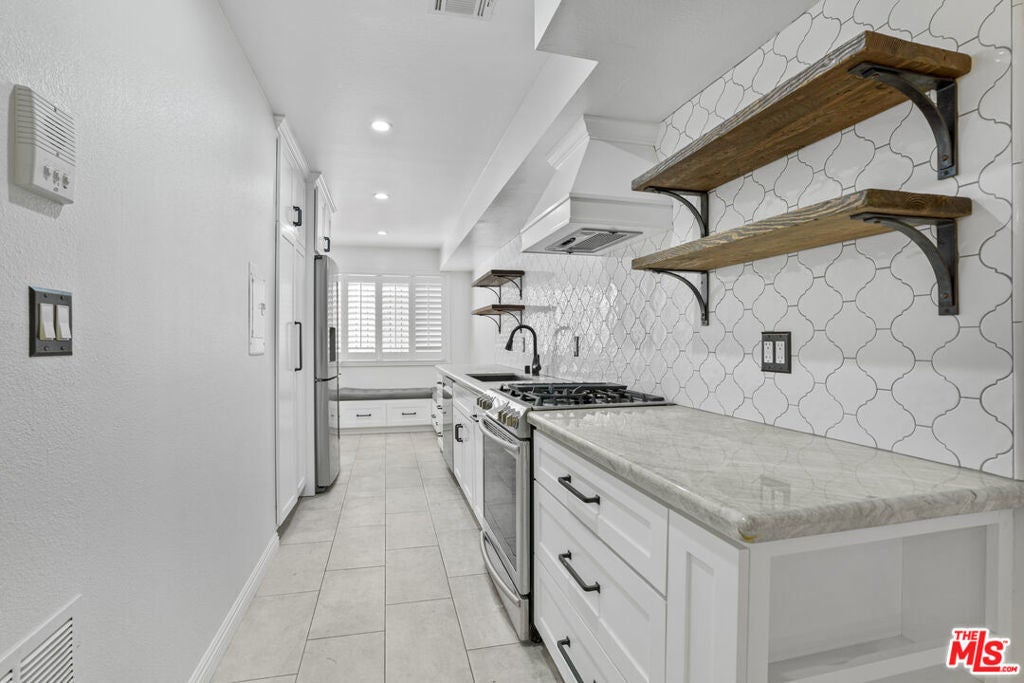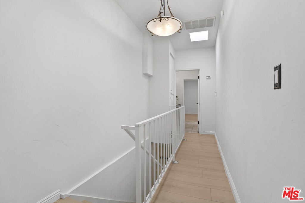 Elegant and spacious 3-bedroom, 3-bath Westwood townhome offering refined comfort, thoughtful updates, and a private outdoor retreat. Newly installed flooring flows throughout the home, while the beautifully updated kitchen features quartz countertops, a tiled backsplash, custom cabinetry, and a charming breakfast nook. Just beyond, the dining area is ideally positioned for both everyday living and entertaining, complete with a custom built-in bar and wine fridge. A step-down living room creates a warm and inviting focal point, enhanced by a custom built-in bookcase and direct access to a serene, tree-lined private patio. Surrounded by mature hedges and anchored by a graceful magnolia tree, this outdoor space feels like a true hidden oasis in the heart of Westwood. Fireplace is for decorative purposes only. The first floor also includes a welcoming entry with closet, a versatile bedroom or bonus room, an updated bath with shower, and conveniently located in-unit side by side washer and dryer. Upstairs, the generous primary suite is filled with natural light and architectural character, highlighted by a dramatic floor-to-ceiling arched window with custom shutters, high ceilings, recessed lighting, and a large walk-in closet. The en-suite bath features a skylight, glass-enclosed tub and shower, spacious vanity, and additional storage. A third bedroom and full bath complete the upper level.Additional amenities include tandem parking for two cars in a gated subterranean garage, a personal EV charger, and a spacious private storage unit with built-in shelving located just steps from the parking area. Four guest parking spaces are also available in the garage. Ideally situated in one of Westwood's most convenient locations, this home is moments from an array of shops, restaurants, and daily conveniences, UCLA and near highly regarded Westwood Charter Elementary. Offering space, privacy, and elevated living, this exceptional townhome presents a rare lease opportunity in a sought-after neighborhood.