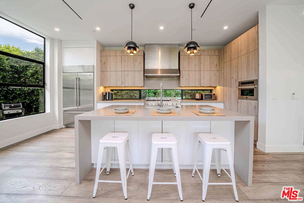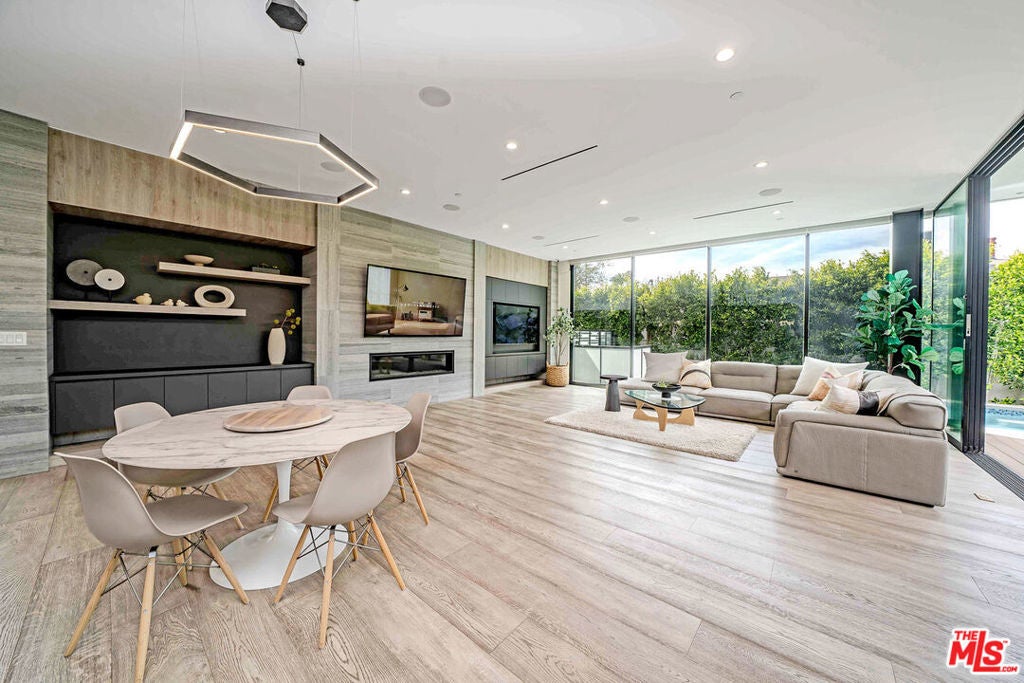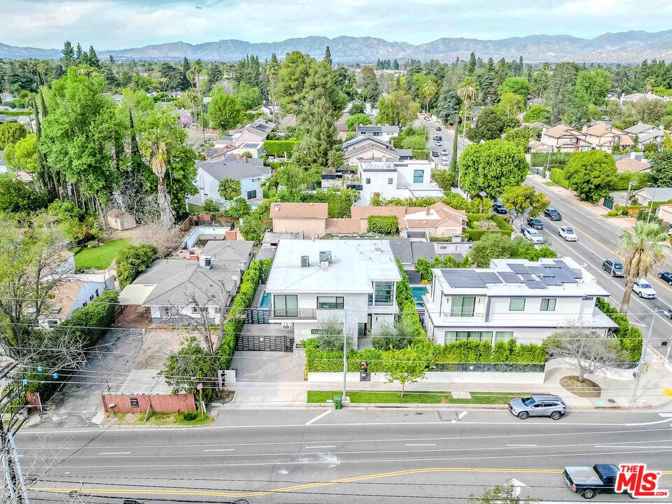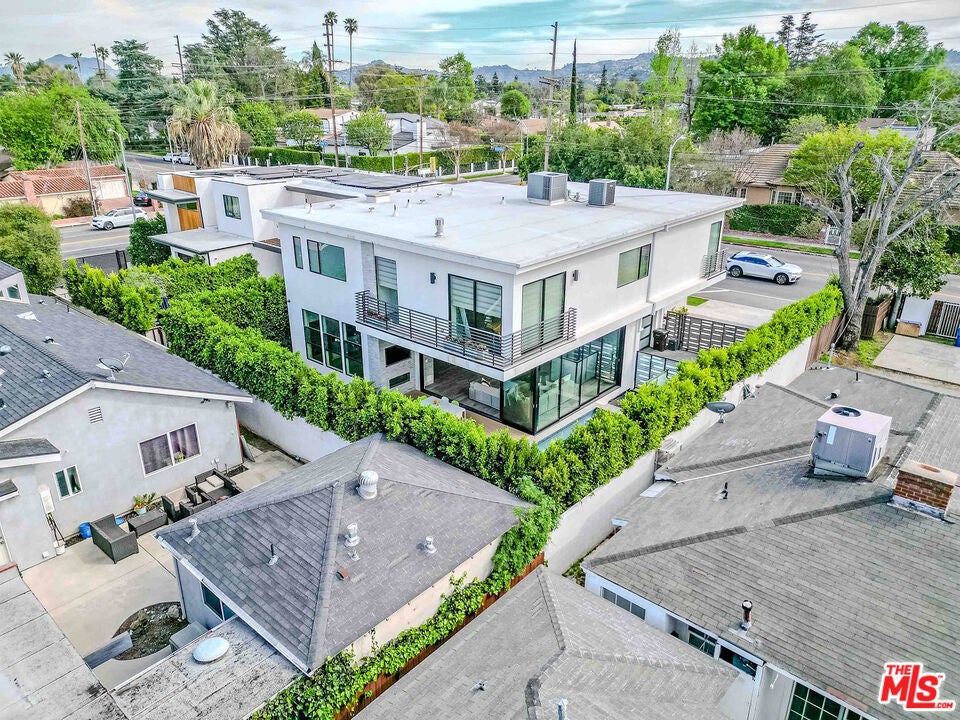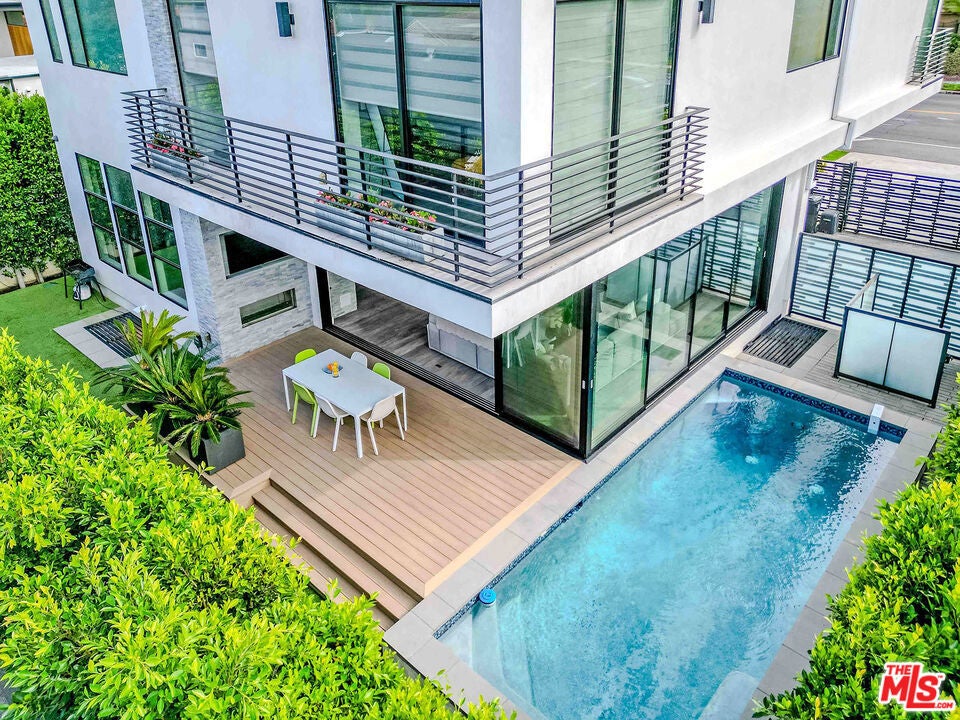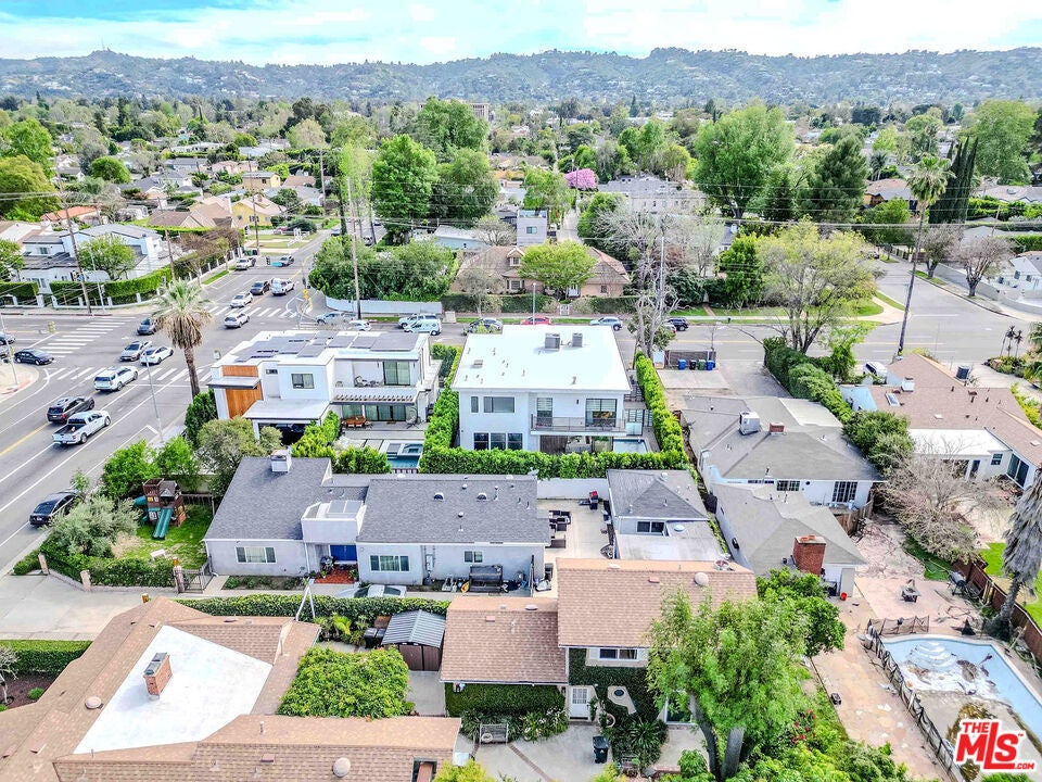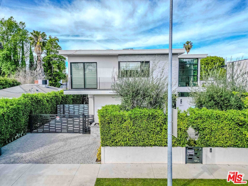 13311 Magnolia offers artistic elegance and visionary design in the heart of Sherman Oaks. This multi-level home features pristine balconies, custom modern finishes, Spanish Porcelanosa tile, floating staircases, gleaming hardwood floors, and thoughtfully placed light fixtures. The master retreat includes a fireplace and walk-in closet, complemented by a second fireplace in the living room. Two in-unit laundry rooms provide convenience. The gourmet kitchen boasts high-end stainless appliances, abundant counter space, and a center island that flows into a bright family room with wide glass doors. Seamless indoor/outdoor living is highlighted by expansive sliding doors opening to a backyard oasis with a tiled pool, patio, artificial grass, and lush ficus and olive trees. Additional spaces include an upstairs den, media/exercise room in the basement, and built-in barideal for entertaining. Open layout, designer lighting, and smart home automation complete this sophisticated residence. Outdoor living is complemented by a tiled pool, patio, and landscaped backyard, with private parking for up to six vehicles: a 2-car enclosed garage and 4 additional spaces in the gated driveway.