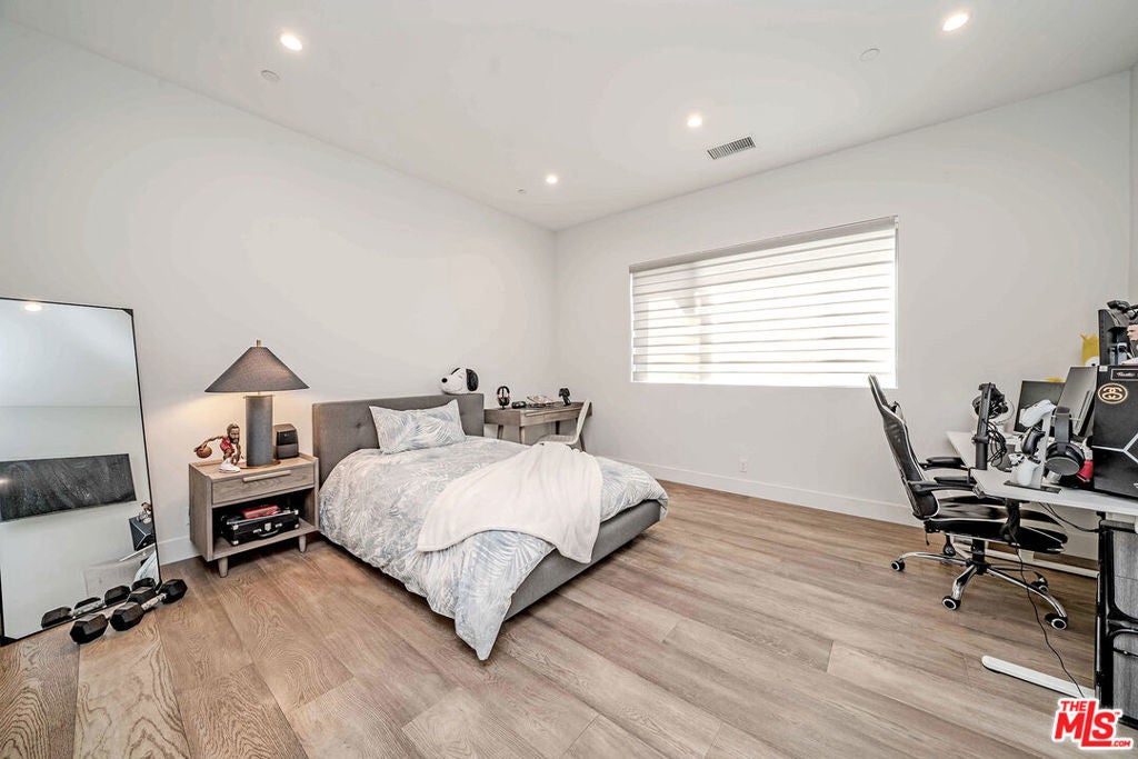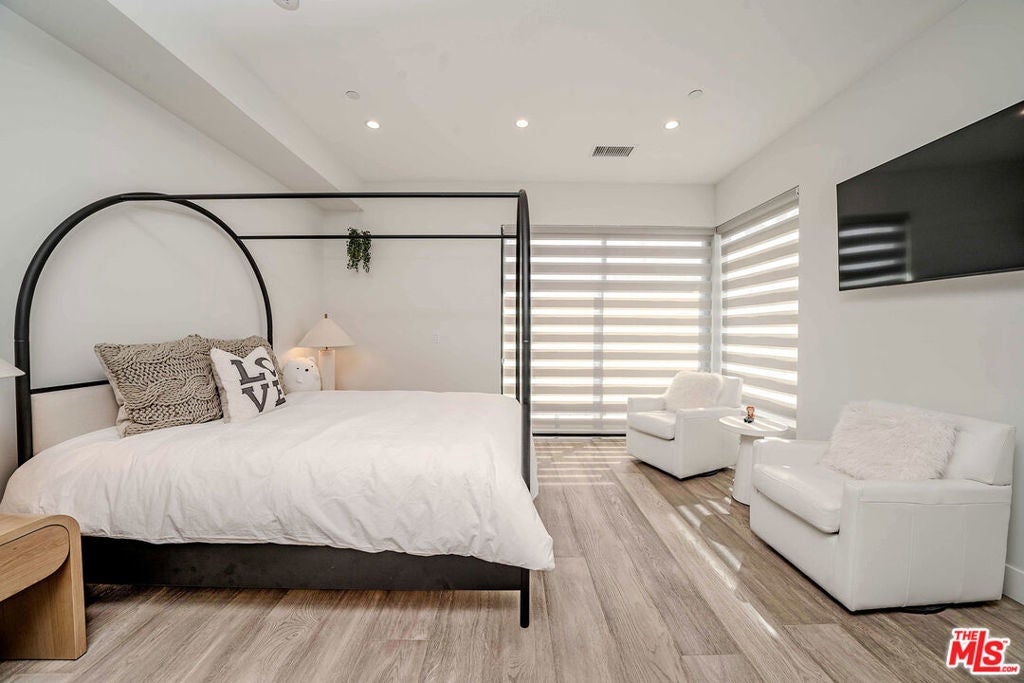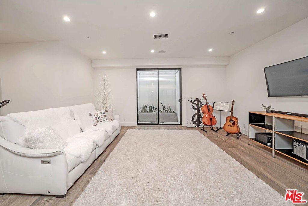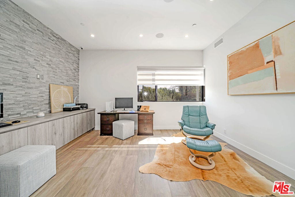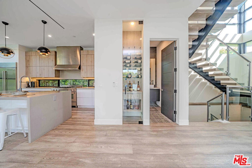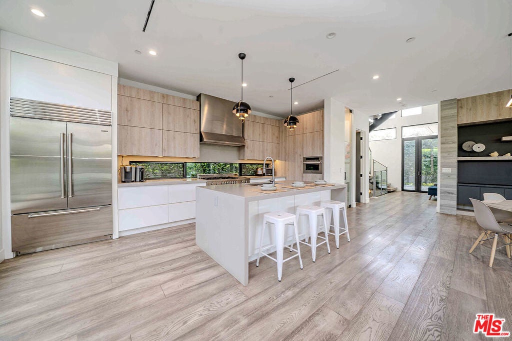 13311 Magnolia offers artistic elegance and visionary design in the heart of Sherman Oaks. This multi-level home features pristine balconies, custom modern finishes, Spanish Porcelanosa tile, floating staircases, gleaming hardwood floors, and thoughtfully placed light fixtures. The master retreat includes a fireplace and walk-in closet, complemented by a second fireplace in the living room. Two in-unit laundry rooms provide convenience. The gourmet kitchen boasts high-end stainless appliances, abundant counter space, and a center island that flows into a bright family room with wide glass doors. Seamless indoor/outdoor living is highlighted by expansive sliding doors opening to a backyard oasis with a tiled pool, patio, artificial grass, and lush ficus and olive trees. Additional spaces include an upstairs den, media/exercise room in the basement, and built-in barideal for entertaining. Open layout, designer lighting, and smart home automation complete this sophisticated residence. Outdoor living is complemented by a tiled pool, patio, and landscaped backyard, with private parking for up to six vehicles: a 2-car enclosed garage and 4 additional spaces in the gated driveway.