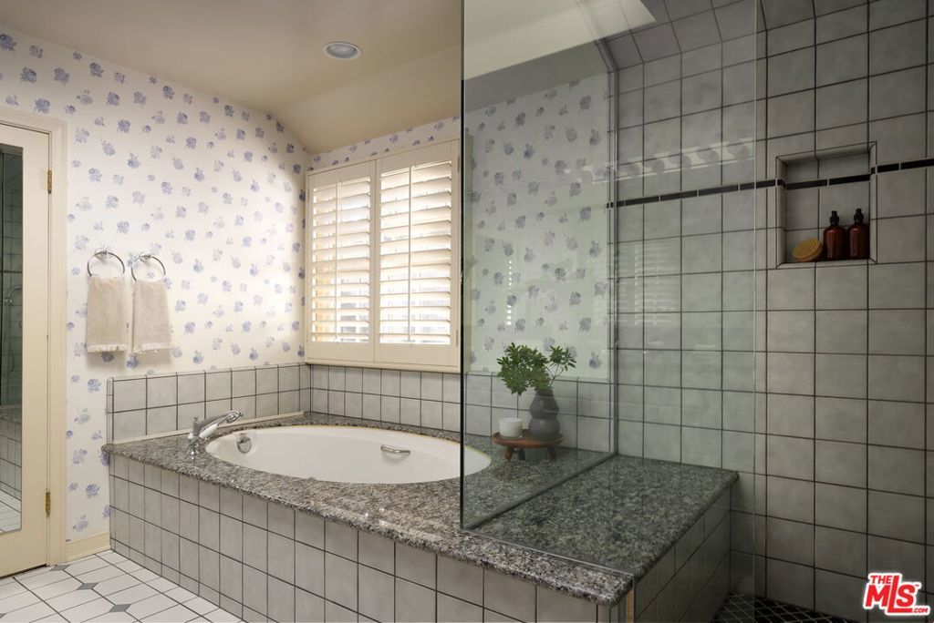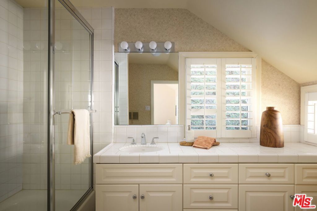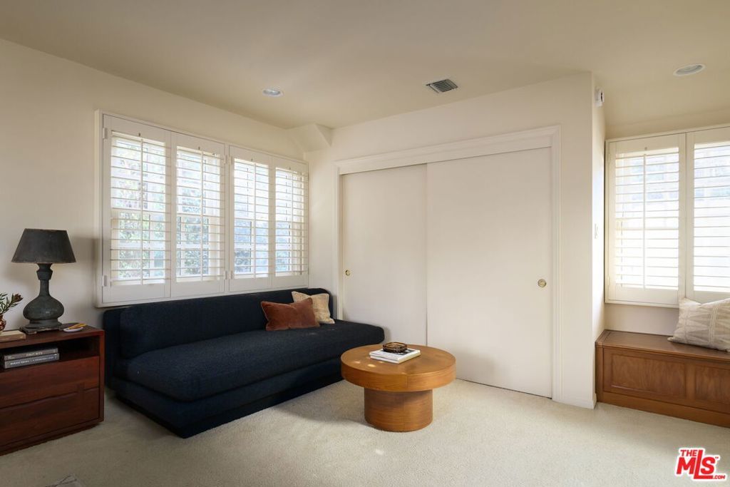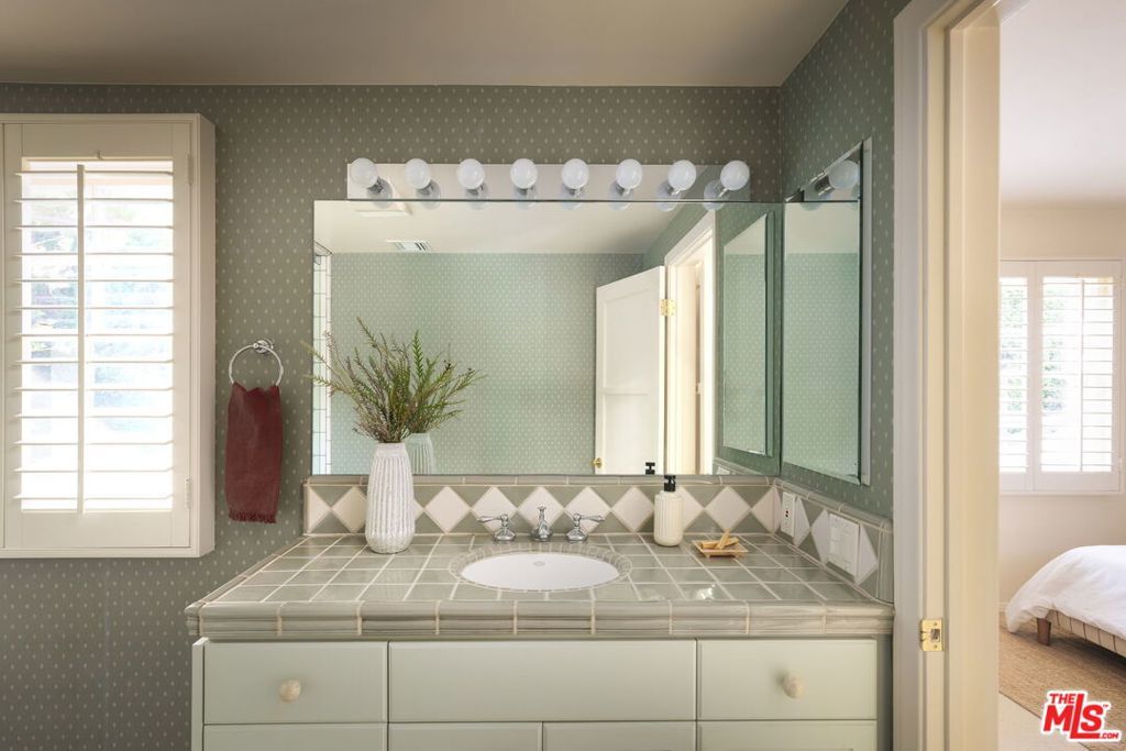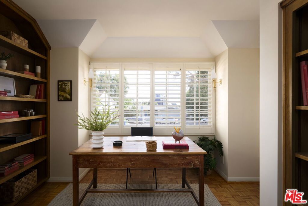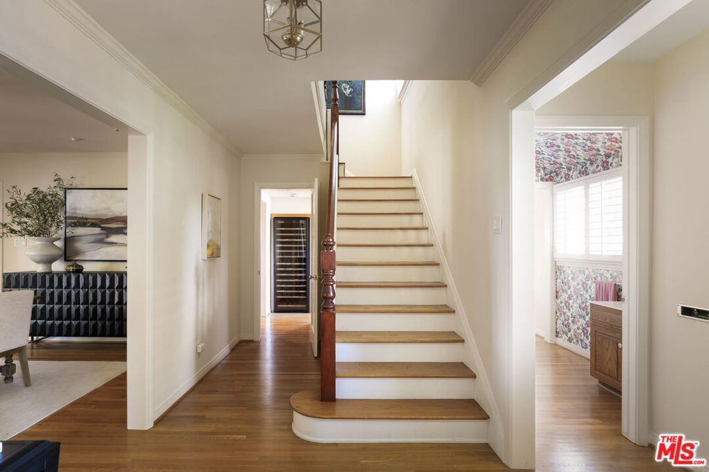 Tucked at the end of a tree-lined cul-de-sac, lies this charming 4BR+3.5BA traditional with a detached guest room/office + 3/4 bathroom, set on over a 9,500 sq. ft lot. Formal entry welcomes you to the large formal living and dining room with hardwood floors, recessed lighting and fireplace. Cozy den with custom built-ins and built-in mini fridge, overlooks the large grassy backyard. Eat-in kitchen with large center island, features granite countertops, Viking cooktop, Sub-Zero Refrigerator and Thermador ovens. Downstairs bedroom can also be a great home office. Upstairs has 3 en-suite bedrooms, including the primary with walk-in closet, seating area and large bathroom with separate tub, shower and two sinks. Laundry closet is also located upstairs with side-by-side, full size washer/dryer. Private grassy backyard with mature hedging and beautiful brick lined seating areas, features a detached guest suite with reading office nook and bathroom. 2-Car garage with built-in storage. Minutes to the heart of Brentwood Village. First time on the market in almost 58 years. Would make a wonderful place to call home!