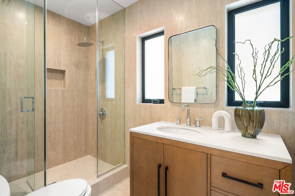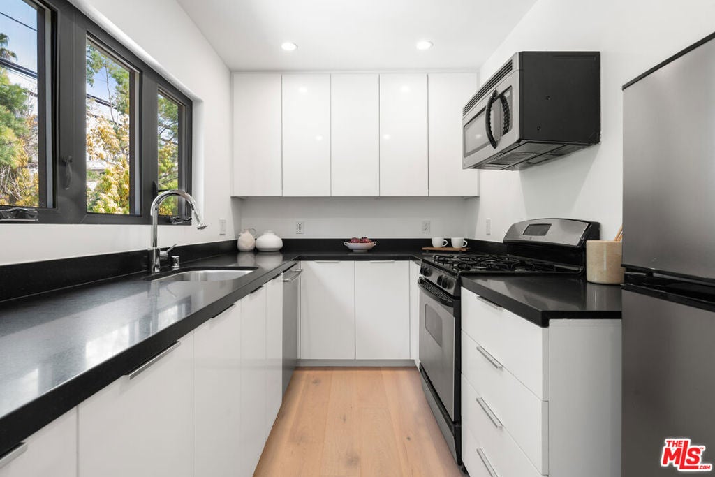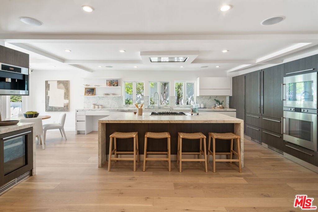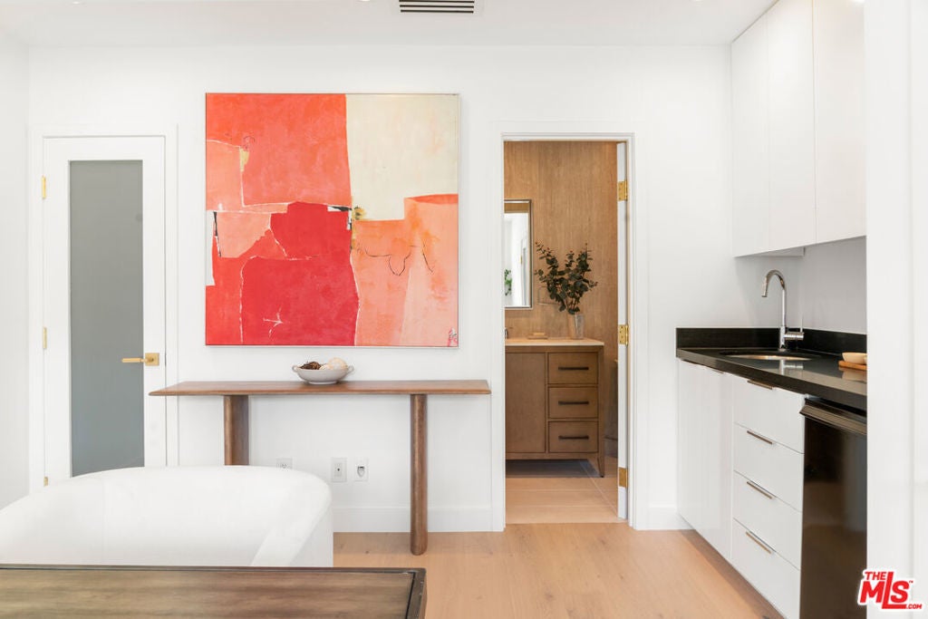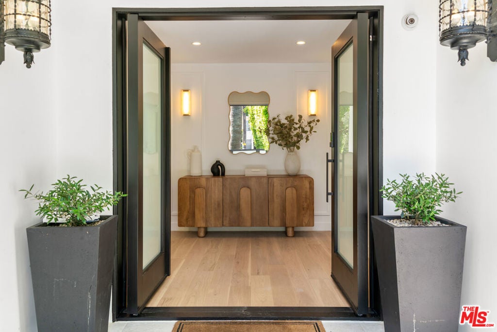 Private Compound Living Situated in the highly coveted Beverly Hills Flats, this gated and fully hedged estate offers a rare blend of privacy, versatility, and refined design all just moments from the best of Beverly Hills. Set behind lush, mature landscaping, the property unfolds as a true compound, where the pace of Doheny Drive fades away, giving way to a serene and private environment. Inside, the main residence features 3 bedrooms and 3.5 bathrooms, thoughtfully designed with elegant proportions, abundant natural light, and seamless indoor-outdoor flow. The gourmet Italian chef's kitchen is appointed with premium Miele and Gaggenau appliances, ideal for both everyday living and sophisticated entertaining. A standout feature of the property is the detached guest house, offering a fully independent living experience. Complete with 2 bedrooms (one currently styled as an office), a full kitchen, breakfast area, and a dedicated screening/media space, it is perfectly suited for extended family, guests, or a private work-from-home retreat. The home has been recently refreshed, featuring new tile work and thoughtful enhancements throughout, creating a clean, elevated, and move-in-ready environment. The grounds are designed for both comfort and functionality, featuring a Gated and fully enclosed perimeter with mature hedging for ultimate privacy, a Two-car garage plus additional parking for additional vehicles. Dual rear access points for discreet and convenient entry and Expansive outdoor areas ideal for entertaining or relaxation. Additional highlights include a Crestron home automation system, providing seamless control of lighting, media, and comfort throughout the property. Offering the scale, privacy, and flexibility often sought within the Flats, this property presents a distinctive opportunity to enjoy the Beverly Hills lifestyle in a setting that balances accessibility with seclusion. Priced with intention to reflect location while delivering a compelling value relative to nearby interior streets. Property shows as a true private compound; once inside, the hedging and layout significantly buffer street presence and create a quiet, enclosed environment. Prime location offers close proximity to the Sunset Strip lifestyle just moments to Soho House, Bird Streets Club, and premier dining, shopping, and nightlife.