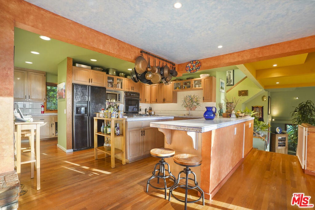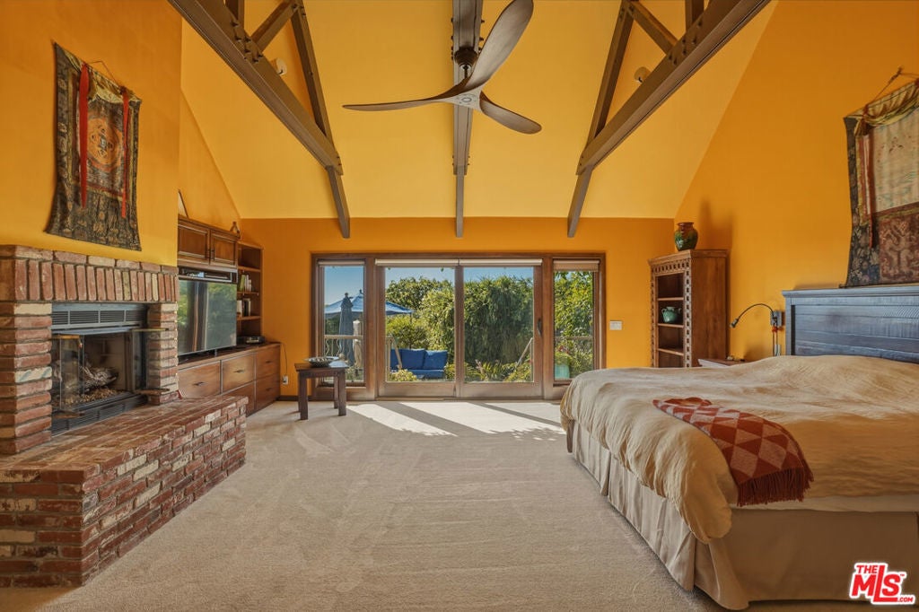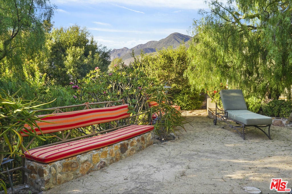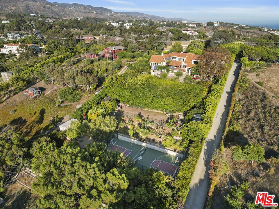 A coastal sanctuary in Zuma Mesa. Perched above the Pacific and set on 1.1 acres with a one-of-a-kind resort-style atmosphere, this estate offers an exceptional blend of elegance, serenity, and California coastal living. Sweeping ocean and canyon views surround the fully walled and gated compound, which includes a 4-bedroom, 3.5-bath main house and a separate, permitted, 1-bedroom, 1-bath guest house, also with ocean views. From the moment you enter the front courtyard, lush, mature landscaping sets the tone for this enchanting retreat. Inside, soaring ceilings and a dramatic sunken living room with a majestic fireplace create a warm yet sophisticated setting, equally suited for intimate gatherings or grand entertaining. The stunning primary suite is a true sanctuary, with a spa-like bath and direct access to the rear patio and gardens, complete with fireplace and spa, where ocean breezes greet you each morning. The cooks' kitchen features a new Miele cooktop, new Bosch dishwasher and center island which opens to a breakfast area and family room, also with a fireplace and access to a covered outdoor dining room. In addition to the guest bedrooms, a loft upstairs offers the perfect space for a home office or gym. Outdoors, the amenities and possibilities are endless: relax in the spa, tend to vibrant gardens, play on the tennis/sport court, sit by the outdoor fireplace, or envision a sparkling pool in the expansive flat grassy yard. Meandering pathways, hidden patios, and colorful landscaping create a rare sense of seclusion in Malibu. The property also includes a three-car garage, currently used as living quarters, along with a state-of-the-art fire suppression system and private water storage. Located in Malibu's desirable gated Zuma Mesa community, this residence is only minutes from pristine beaches, top-rated schools, and Malibu's finest shops and dining. Surrounded by hundreds of acres of the Santa Monica Mountains National Recreation Area with access to miles of hiking and equestrian activities. Convenient community gated entries to both Pacific Coast Highway and Kanan Dume Road ensure effortless connectivity while preserving the tranquility of this hidden gem. Experience the ultimate Malibu lifestyle, where privacy, beauty, and sophistication meet on the endless horizon.