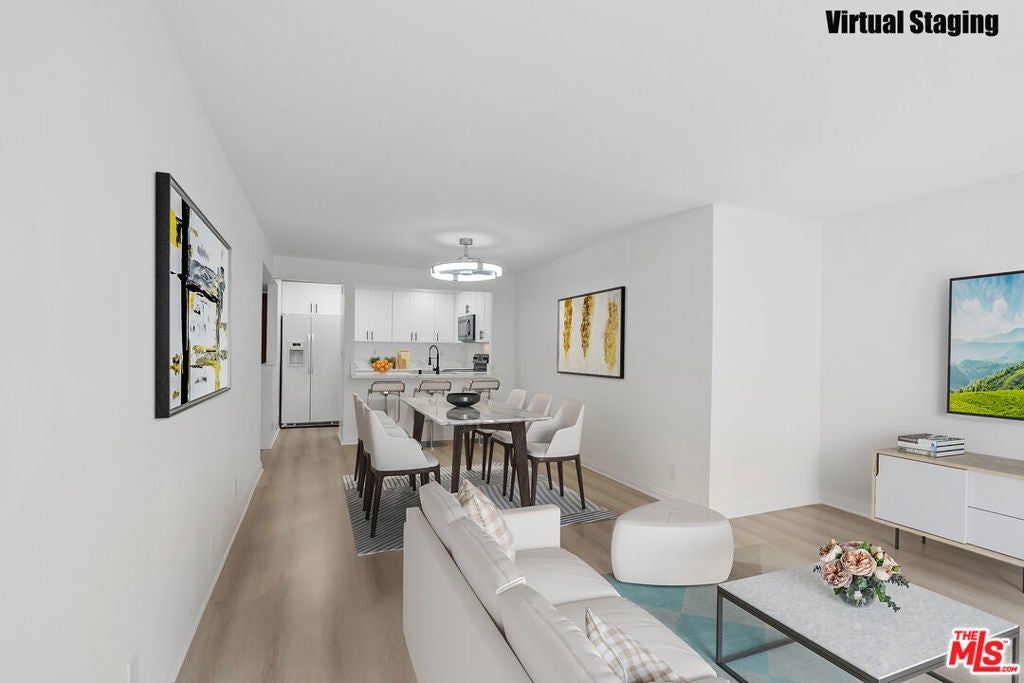 Welcome to this stylish and well-maintained 1-bedroom, 1-bathroom condo located in the heart of Mid-Wilshire. This inviting unit offers a functional and open layout featuring a spacious living room, dedicated dining area, and a bright breakfast nook seamlessly connected to the kitchen.The interior has been fully remodeled, showcasing new paint, upgraded flooring, a modern range hood, and mirrored closet doors, creating a clean and contemporary living environment. The kitchen and bathroom provide ample cabinet storage, along with essential appliances including a range/oven and dishwasher.Enjoy outdoor relaxation on the private deck, perfect for entertaining or unwinding. Additional features include two assigned tandem parking spaces in a gated parking area and convenient laundry facilities on every floor.Strategically located with easy access to Downtown LA, Wilshire Financial District, USC, and the LA Convention Center, this property offers both comfort and convenience for urban living.