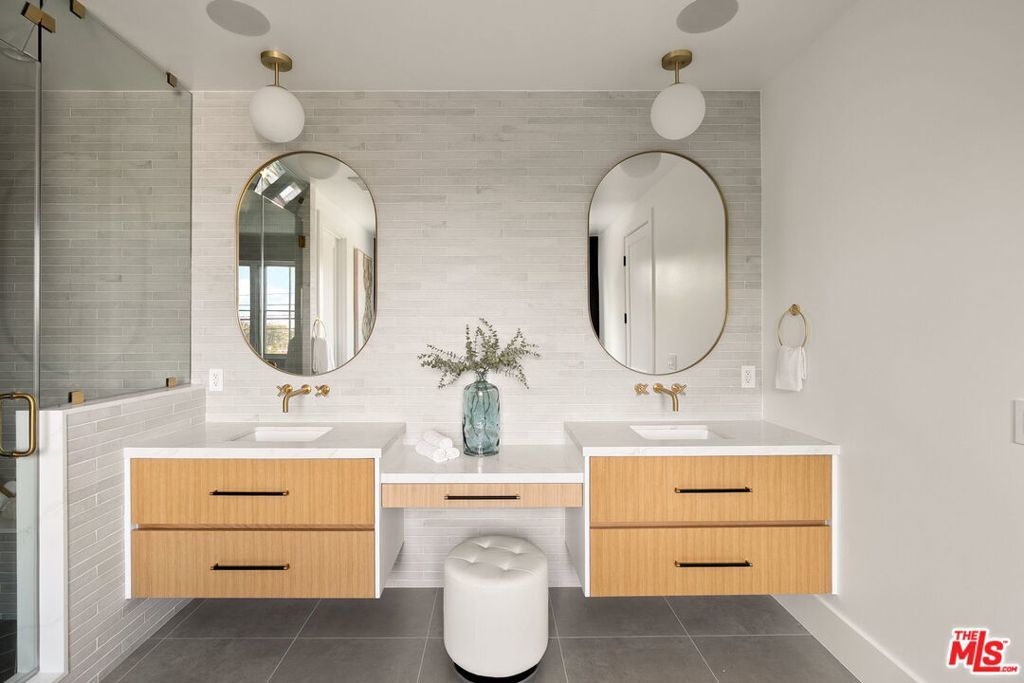 A sophisticated interpretation of modern farmhouse design, this newly constructed residence by DiNali Construction is defined by its impressive scale, refined craftsmanship, and bespoke detailing throughout. Spanning approximately 3,950 square feet, the home offers 5 bedrooms and 5.5 bathrooms, thoughtfully designed to accommodate both elevated entertaining and effortless everyday living. Upon entry, the residence reveals custom architectural accents, curated finishes, and intentional design elements that distinguish every space. Expansive living and dining areas flow seamlessly into a stunning chef's kitchen, appointed with top-of-the-line appliances, custom cabinetry, and a grand center island that serves as the heart of the home - ideal for hosting gatherings or casual family meals. Designed for seamless indoor-outdoor living, the home features multiple entertaining areas, including upper and lower-level patios that extend the living experience outdoors. The private backyard is highlighted by a contemporary pool with a dramatic waterfall feature, creating a serene yet striking focal point, while a large covered patio provides an ideal setting for al fresco dining and relaxed outdoor living. The primary suite serves as a tranquil retreat, complete with a spa-inspired bathroom and a generous walk-in closet. Each additional bedroom is generously scaled and includes its own en-suite bathroom, ensuring comfort and privacy throughout. Additional highlights include a spacious, well-appointed laundry room, smart home capabilities, security infrastructure, and thoughtfully integrated custom storage solutions. Meticulously crafted with DiNali Construction's signature attention to detail, 1742 Preuss Rd offers a lifestyle defined by comfort, elegance, and modern functionality, ideally situated in the desirable Crestview neighborhood, just moments from Beverlywood, Culver City, Beverly Hills, and the best of Los Angeles.