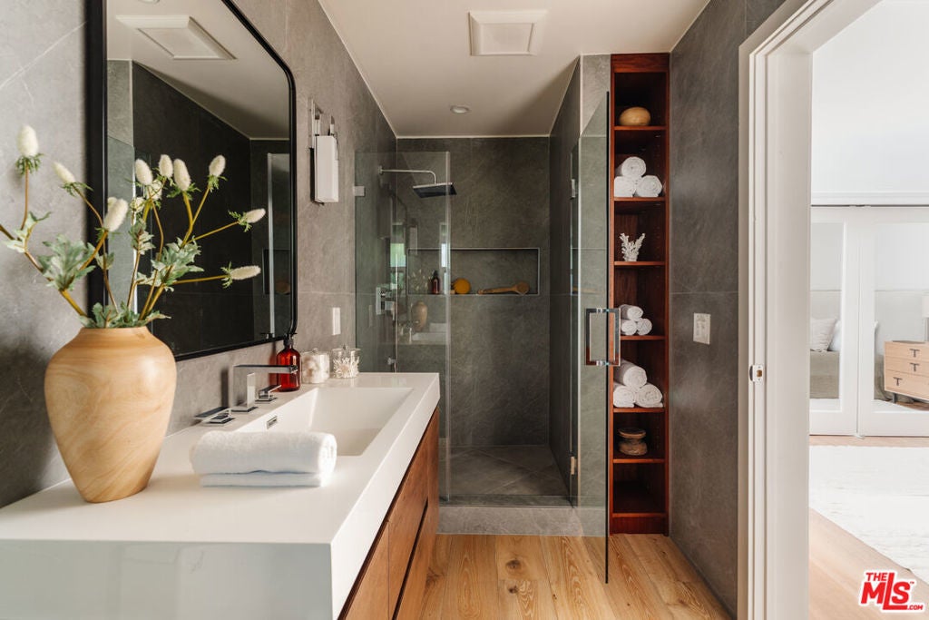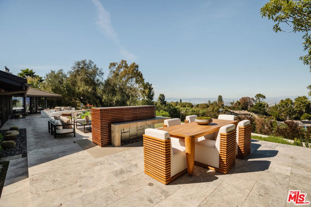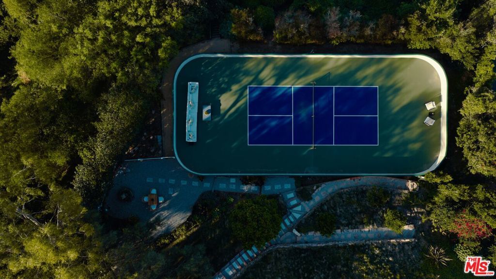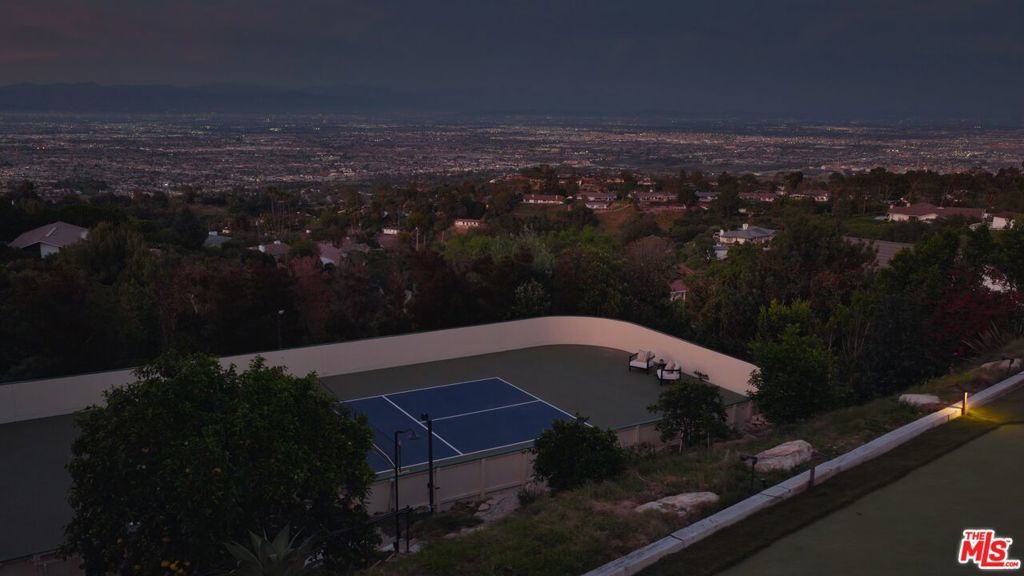Behind the gates of the prestigious city of Rolling Hills on the Palos Verdes Peninsula, this five-bedroom, six-bathroom estate spans more than two acres of manicured grounds, where mornings begin in stillness and evenings are framed by sweeping, unobstructed views from Redondo Beach across the South Bay and Los Angeles skyline to Long Beach. Designed for both retreat and gathering, the estate offers a resort-style, wellness-driven lifestyle with amenities rarely found together in Rolling Hills, including a pickleball court, fully equipped home gym, pool, spa, hot tub, putting green, outdoor kitchen, and detached guest house. Inside, natural light fills expansive living spaces as oversized windows frame the surrounding landscape. The floor plan flows effortlessly from living and dining areas into the kitchen, creating an environment equally suited for quiet mornings or lively evenings with guests. A custom saltwater aquarium feature introduces a distinctive architectural moment, adding depth and character to the interiors. The chef's kitchen, appointed with premium Thermador appliances, marble countertops, custom cabinetry, and generous storage, connects seamlessly to a temperature-controlled wine room and wet bar, designed for both everyday use and entertaining. The primary suite is positioned as a tranquil retreat with soaring ceilings, expansive proportions, and a spa-inspired bath. An oversized loft provides flexibility for a home office, lounge, or wardrobe expansion, while a patio just beyond the sliding glass doors offers a peaceful outdoor escape. Three additional guest bedrooms in the main residence each feature newly renovated ensuite bathrooms, while a detached guest house near the pool offers comfortable accommodations for visitors, a movie theater, or live-in staff. Outdoors, the grounds take on the feeling of a resort retreat. A waterfall cascades into the pool and spa, while multiple areas for dining and lounging invite time spent under the open sky. The outdoor kitchen, complete with grill, oven, refrigerator, and retractable awning, creates a natural extension of the home for hosting. Recreation and wellness are woven into daily living. The newly updated pickleball court, putting green, and home gym offer an elevated lifestyle centered around activity, balance, and ease. A fully paid Tesla solar system with backup batteries supports energy efficiency and long-term sustainability. Life in Rolling Hills offers a rare balance of space, security, and connection to nature, with 26 miles of equestrian trails, tennis courts, and scenic hiking paths, all just minutes from the beaches of the South Bay, Palos Verdes golf courses, and everyday conveniences. This is a dream where views and lifestyle come together in a way that feels both grounded and elevated.