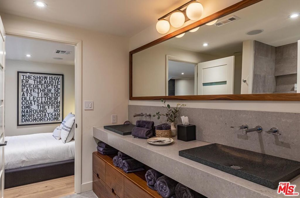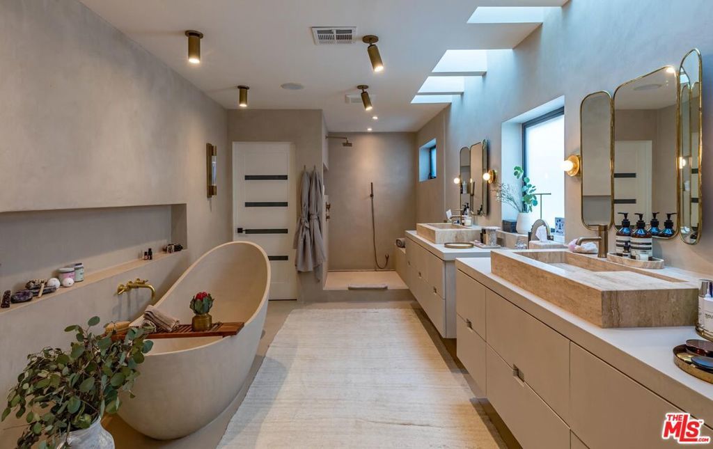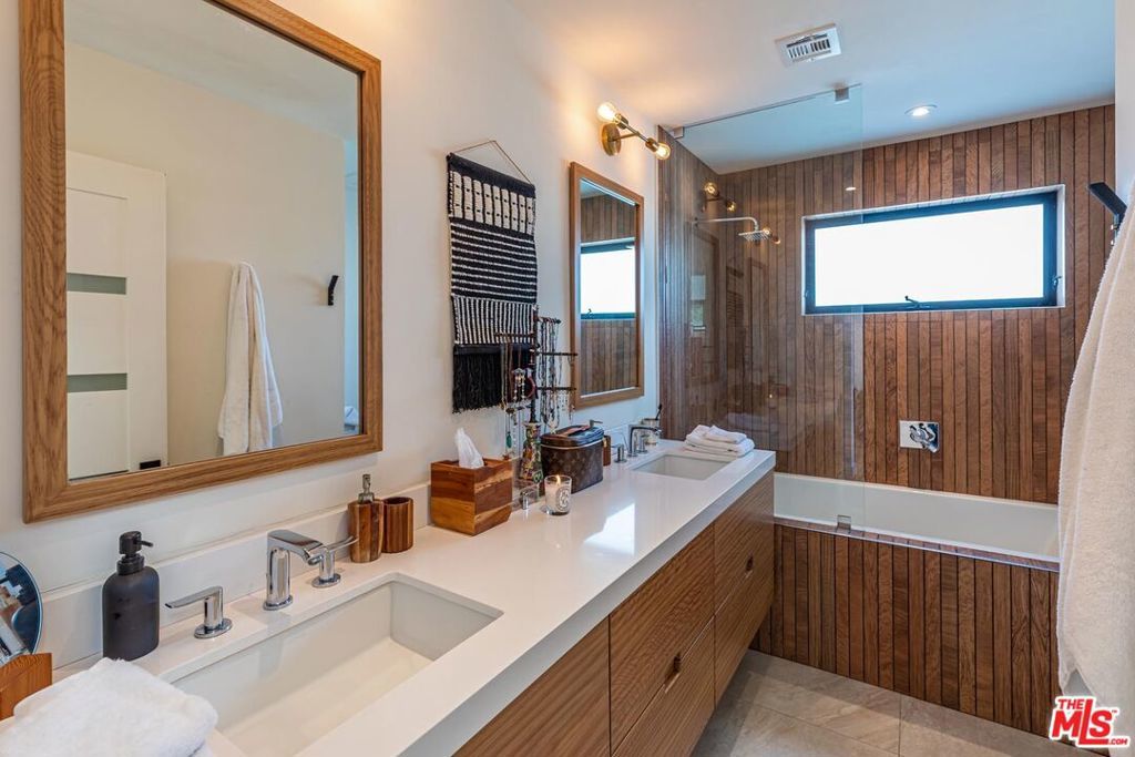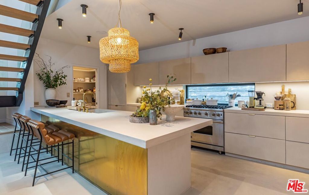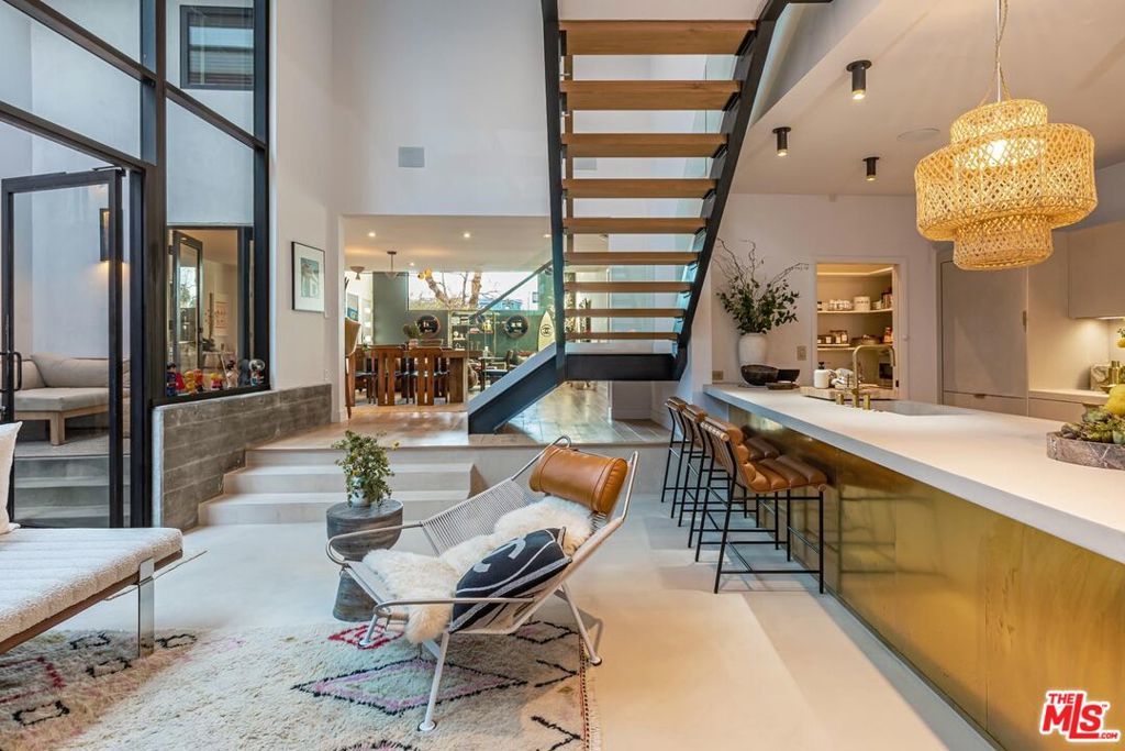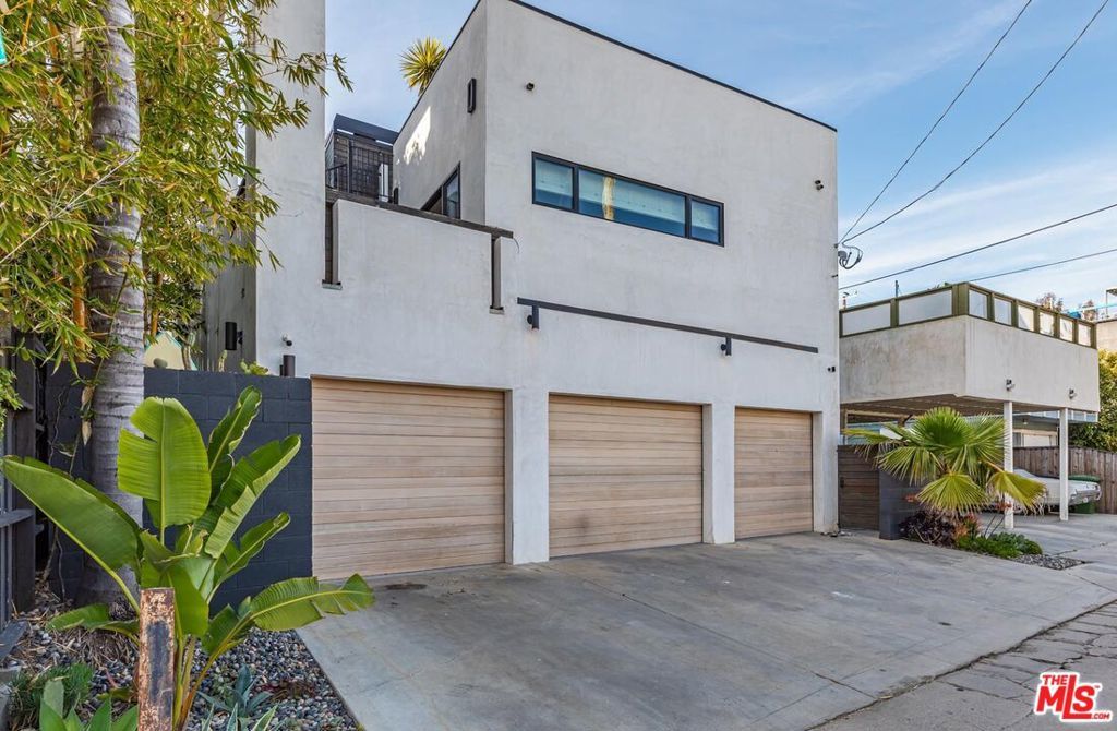 A strikingly beautiful David Hertz architectural compound, 2 blocks to the ocean and adjacent to Venice canals. The main home has 3 bedrooms and 3 bathrooms and an impressive roof top deck ideal for entertaining, dining or watching the sunset. Inside you will find an open kitchen fit with a walk-in pantry, wine cooler, Sub Zero fridge, Viking range, custom cabinets & intimate countertop dining. Enjoy a 2-story reclaimed wood fireplace lounge which leads out to a private atrium perfect for morning coffee or al fresco dining. The Primary bedroom wing provides a private terrace which extends to the roof deck, custom walk-in closet & luxurious bathroom with skylights. A separate one bedroom and one bathroom guest house with private entrance and separate garage, features a full kitchen, laundry, & roof deck access - perfect for guests or generating additional income. Additional gym/flex space/garage up front and invaluable 3 car garage in back + 1 spot. An expansive teakwood deck overlooks the nearby canals & features a BBQ grill, sink, fridge & fire pit. A Venice dream, this residence is located just a stone's throw away from the trendy shops and restaurants on Abbot Kinney like Gjelina, Felix, Erewhon, etc., recreational activities, and thriving nightlife. This property is a true gem that is not to be missed.