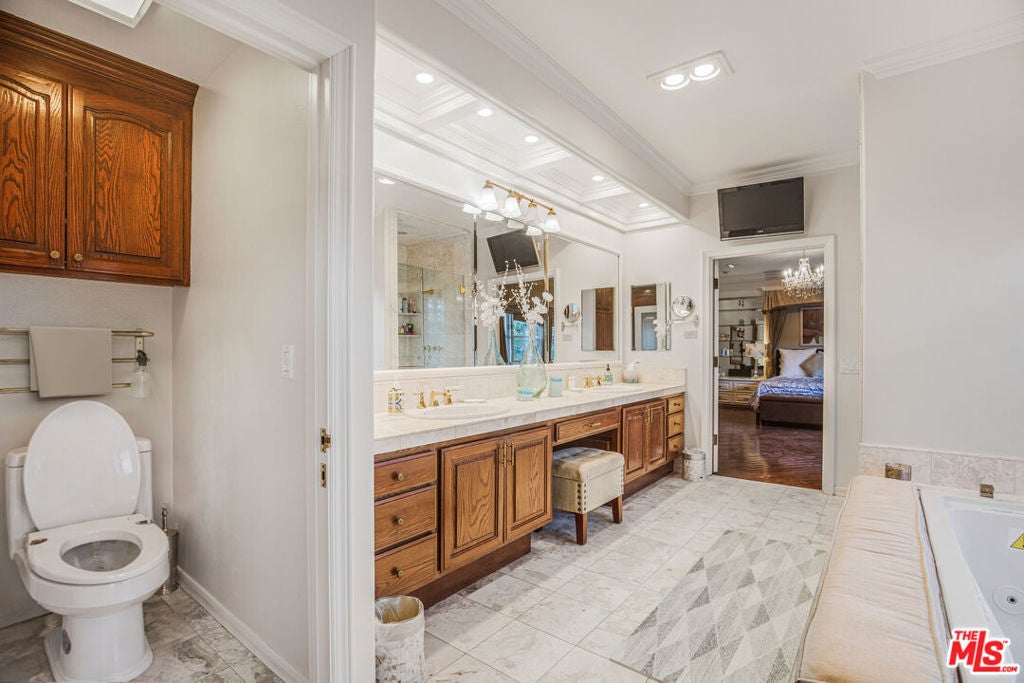 Sophisticated and beautifully remodeled, this Valley Circle Estates home blends timeless design with modern comfort, offering a seamless flow throughout. A grand entry with soaring ceilings and a sweeping staircase opens into expansive living spaces filled with natural light, oversized windows, and refined finishes. The main living room and separate family room, each anchored by a fireplace, create an effortless balance between formal elegance and relaxed everyday living, while the spacious dining area connects naturally to the heart of the home.The chef's kitchen is thoughtfully designed with sleek custom cabinetry, a generous center island, premium Thermador appliances, and a Samsung four-door refrigerator with integrated touchscreen, offering both style and functionality. An additional office provides flexibility and can easily be converted into a fifth bedroom if desired. The primary suite serves as a private retreat, complete with a spa-like bath and an oversized walk-in closet.Outdoors, the property offers a true entertainer's setting with a pool, spa, and multiple lounging areas, highlighted by an elevated gazebo deck that captures sweeping, unobstructed valley views. Ideally located just moments from Victory Trailhead for scenic hiking and within walking distance to a nearby park, this home delivers the best of indoor-outdoor California living. Accepting short-term rentals (1 month minimum) at varying rates depending on length of stay. Inquiries from World Cup attendees are welcome.