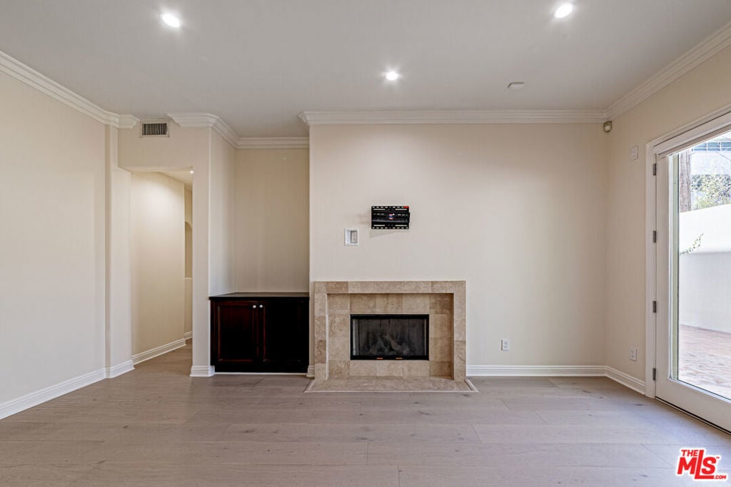 Remodeled, turnkey home features 2 bedrooms plus Den (Ideal for a play room or office) and 3 bathroom. Brand new premium engineered hardwood floors, new kitchen cabinet counter top and bathroom, custom-built closets and remote-controlled window blinds. Enjoy the feel of a single-family home with high ceilings and a large, sun-drenched patio- perfect for entertaining. 2 side-by-side parking with custom made storage cabinet at front of parking spaces. Benefit from exceptionally low HOA dues and a prime location just 10minutes from Cedars-Sinai hospital, world - class dining, Rodeo Drive shopping, and top-rated BH schools. Must see for all buyers seeking modern construction and move-in-ready luxury in 90211! Listing agent related owner.
