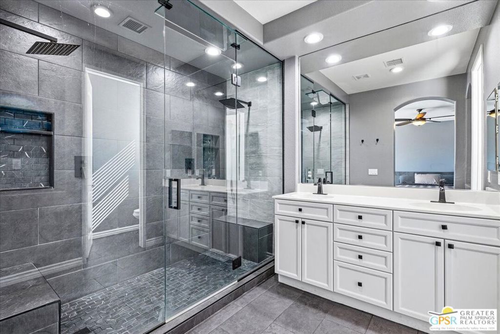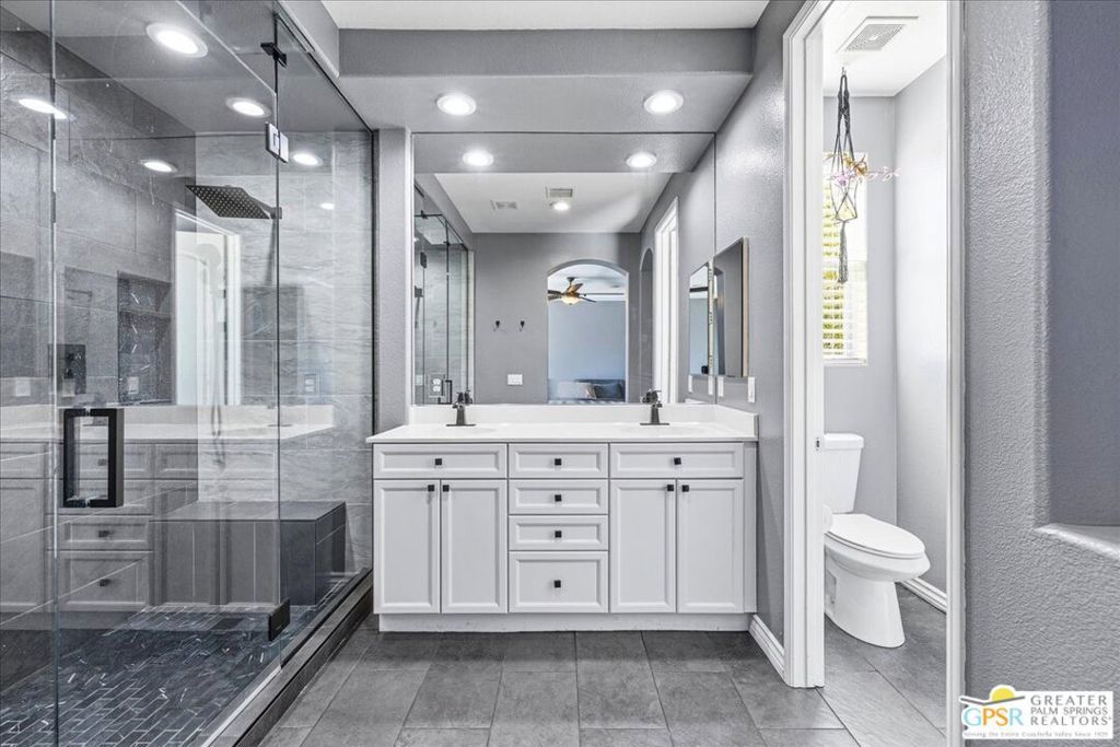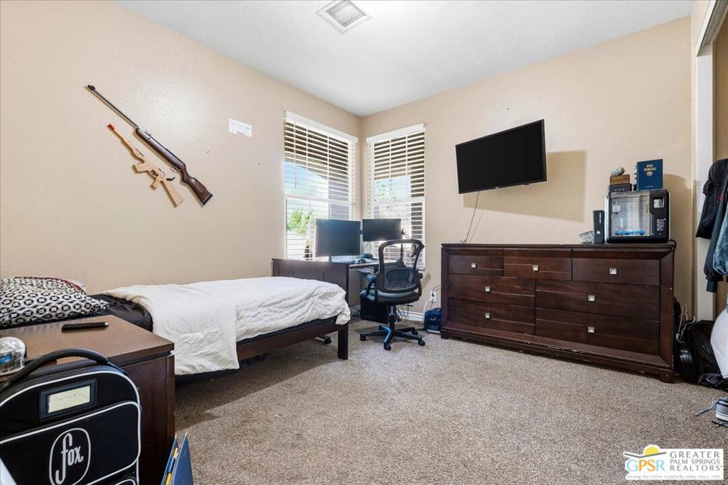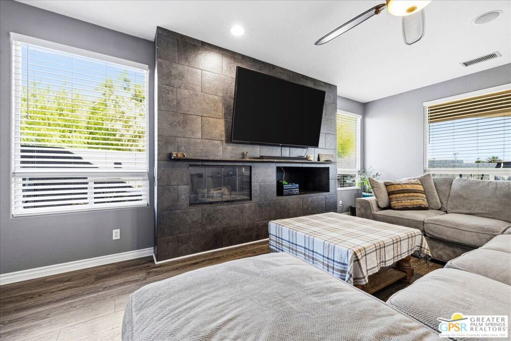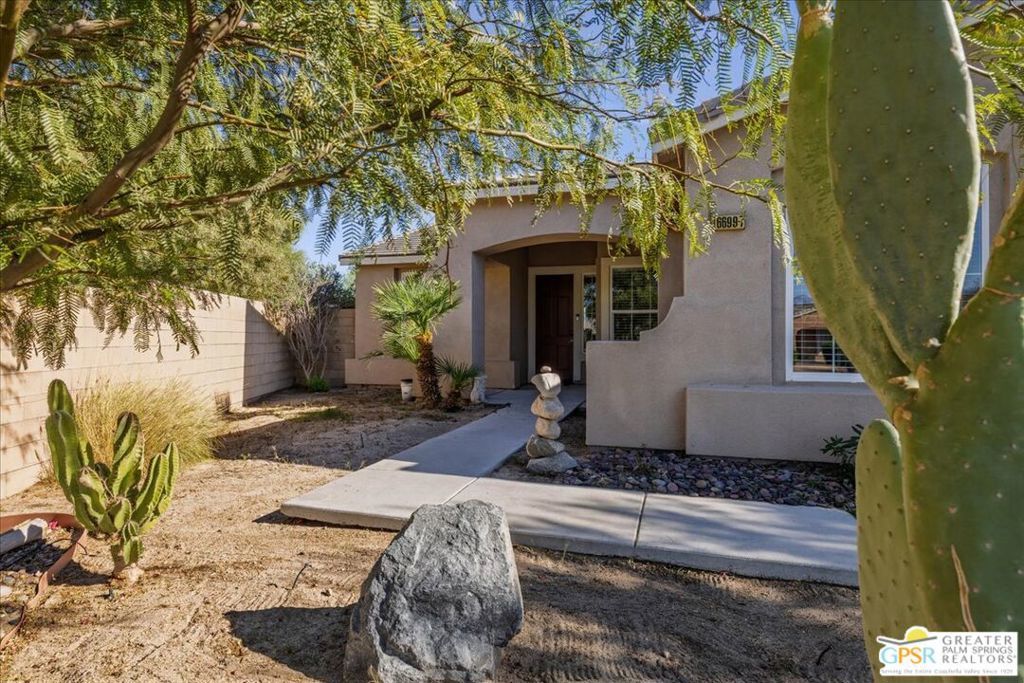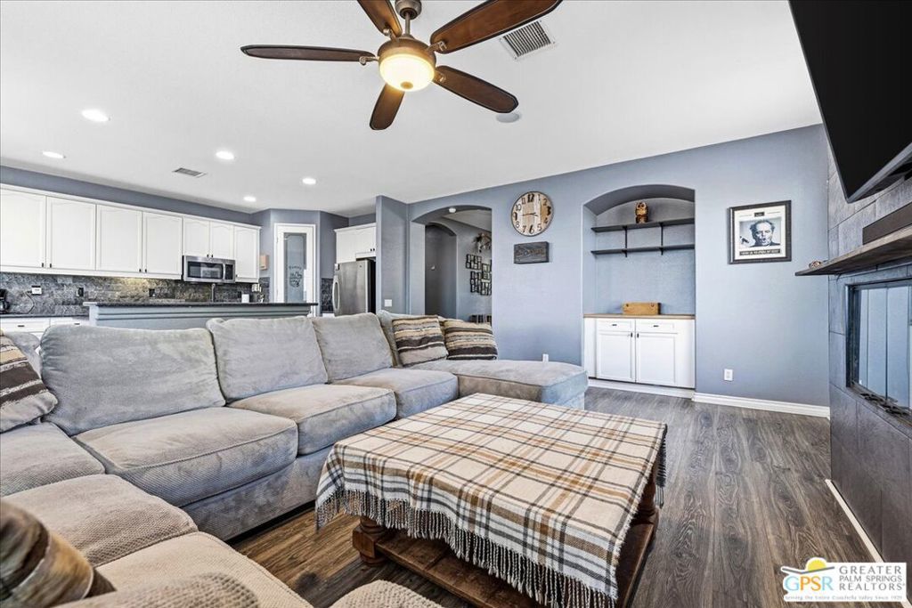 Welcome to this spacious 5-bedroom, 3 bathroom home tucked away at the end of a quiet cul-de-sac in Desert Hot Springs. Located within a gated community, this property offers the perfect blend of privacy, comfort, and scenic beauty, with stunning mountain views right from your backyard.Designed for both relaxation and entertaining, the home features a generous floor plan with ample living space for family and guests. The kitchen and bathrooms have been tastefully remodeled within the last two years, offering modern finishes and updated style throughout. The home also features a cozy gas fireplace, perfect for cooler desert evenings.Step outside to your private oasis complete with a sparkling pool featuring a tranquil waterfall, a fire pit, and a large backyard, ideal for enjoying sunny desert days and peaceful evenings under the stars.This home is equipped with energy-efficient solar panels along with two battery backup units, offering added peace of mind and potential cost savings. The air-conditioned garage adds versatility, perfect for a home gym, workshop, or additional comfort for your vehicles.Enjoy the benefits of a low monthly HOA fee while being conveniently located near local schools and amenities. The cul-de-sac location provides added tranquility with minimal traffic, making it a perfect retreat.Whether you're looking for a primary residence, vacation home, or investment opportunity, this property delivers on space, efficiency, and lifestyle.Don't miss your chance to own a slice of desert paradise. Sale is contingent upon upon sellers purchase of replacement home.