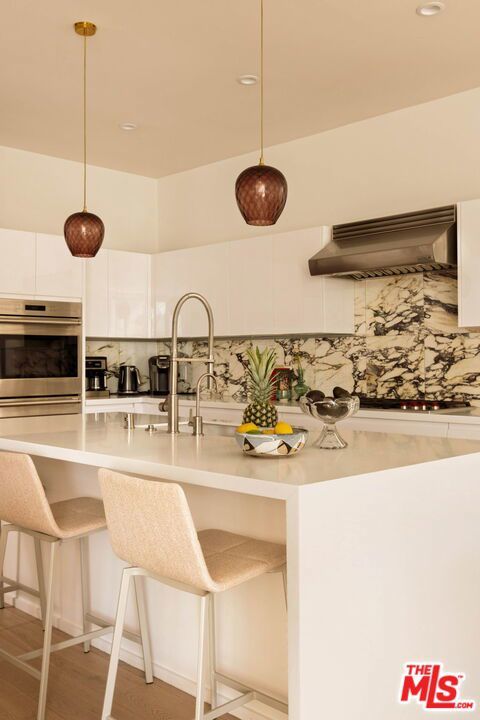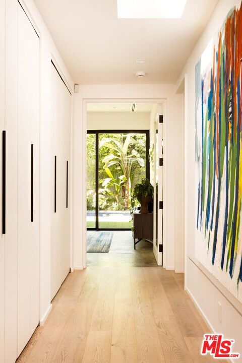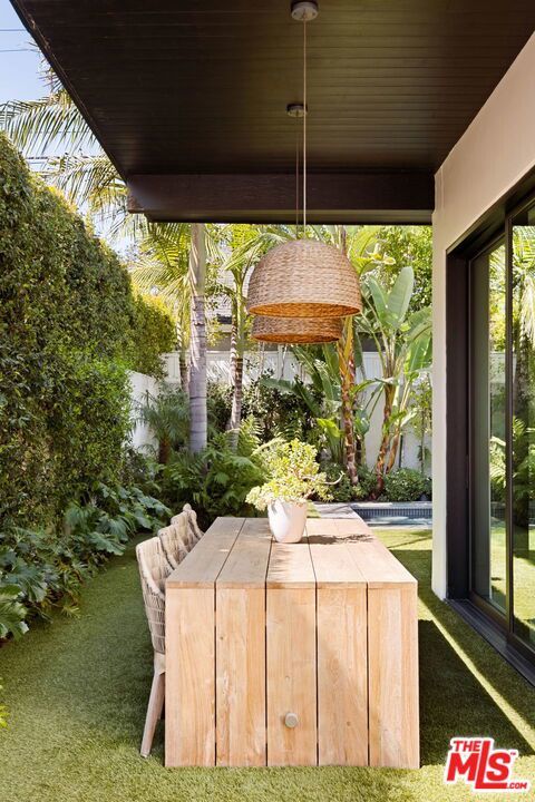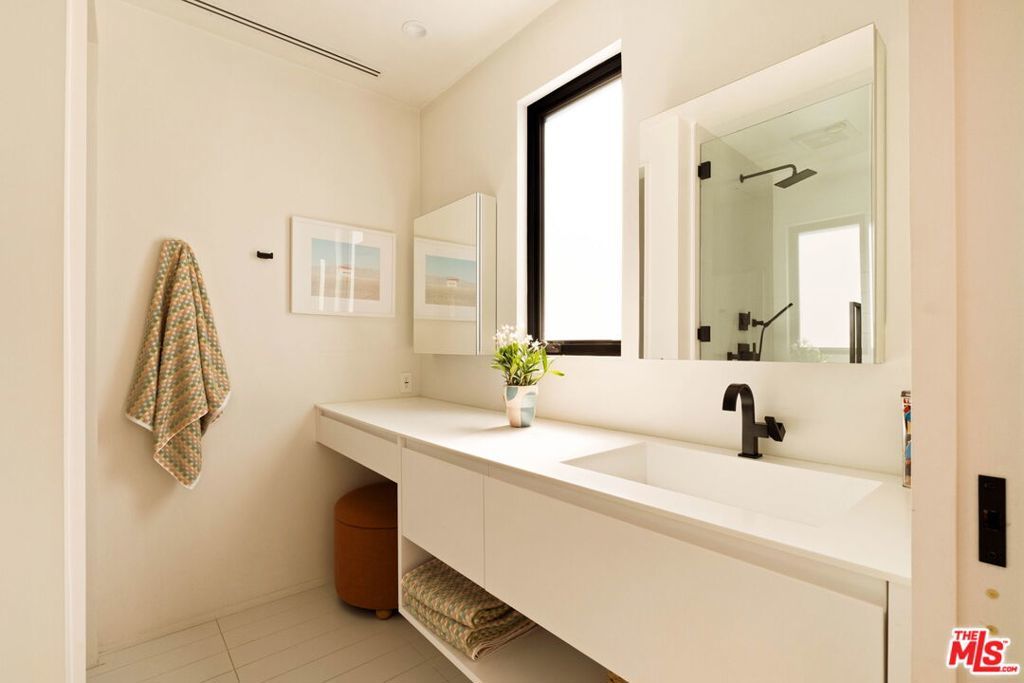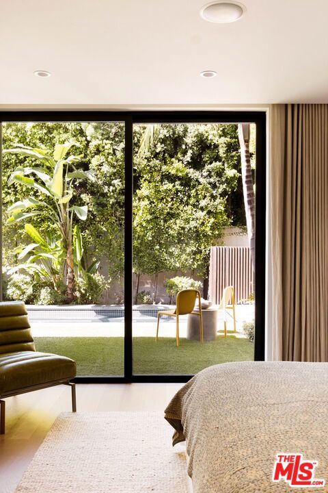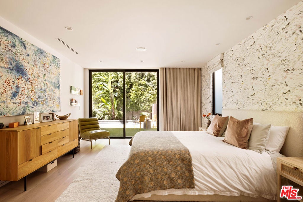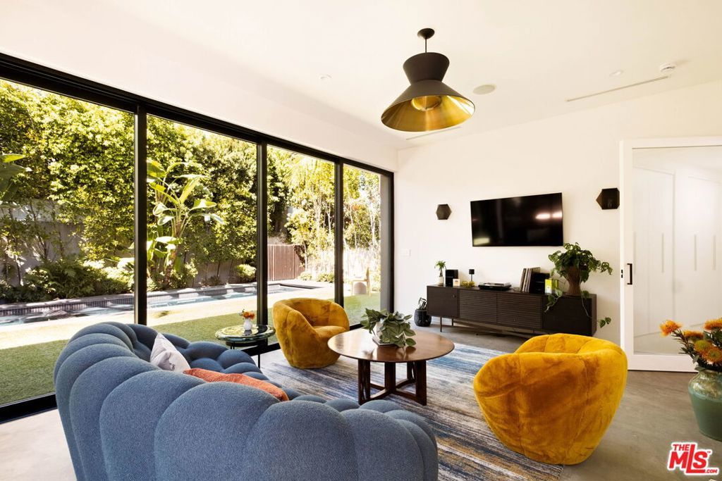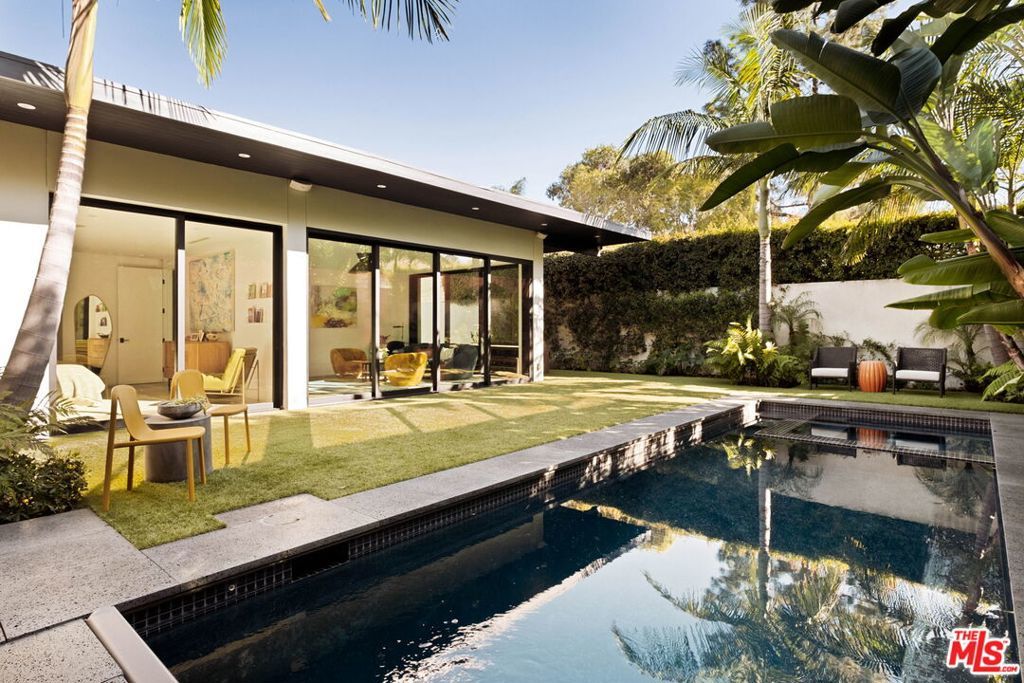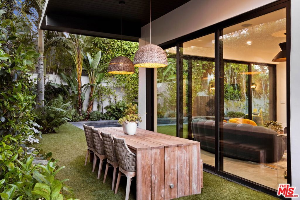 Prime Windsor Square 3 bed/3.5 bath contemporary that stylistically stands apart--defined by banks of tall windows and vertical planes of smooth-coat stucco, set behind a mature hedge--a private and elegant retreat two blocks from buzzy Larchmont Blvd. Inside, high ceilings, wide-plank bleached oak floors, generous windows and multiple skylights suffuse the home with natural light and a relaxed feel. The generously scaled open living room, dining room and sleek white kitchen encourage gatherings large and small. Kitchen features top-of-the-line stainless steel appliances and well-tended raised garden beds just outside--with bonus points for its close proximity to the beloved twice weekly farmers market. A skylight-lit center hall connects all 3 bedrooms--each with a modern en-suite bath and access to its own outdoor space. The primary suite overlooks the pool and lush tropical landscaping, and offers dual walk-in closets and a spa-worthy bath with soaking tub, large shower and floating double vanity. The family room is where the home really opens up: two walls of retractable floor-to-ceiling sliding doors connect a verdant covered dining pavilion on one side, and a palm-fringed pool on the other. Have a swim. Play records while the sun goes down. Host a Sunday BBQ at the outdoor kitchen--complete with fridge and ice maker--while Birds of Paradise sway in the late afternoon light and the home glows from within.