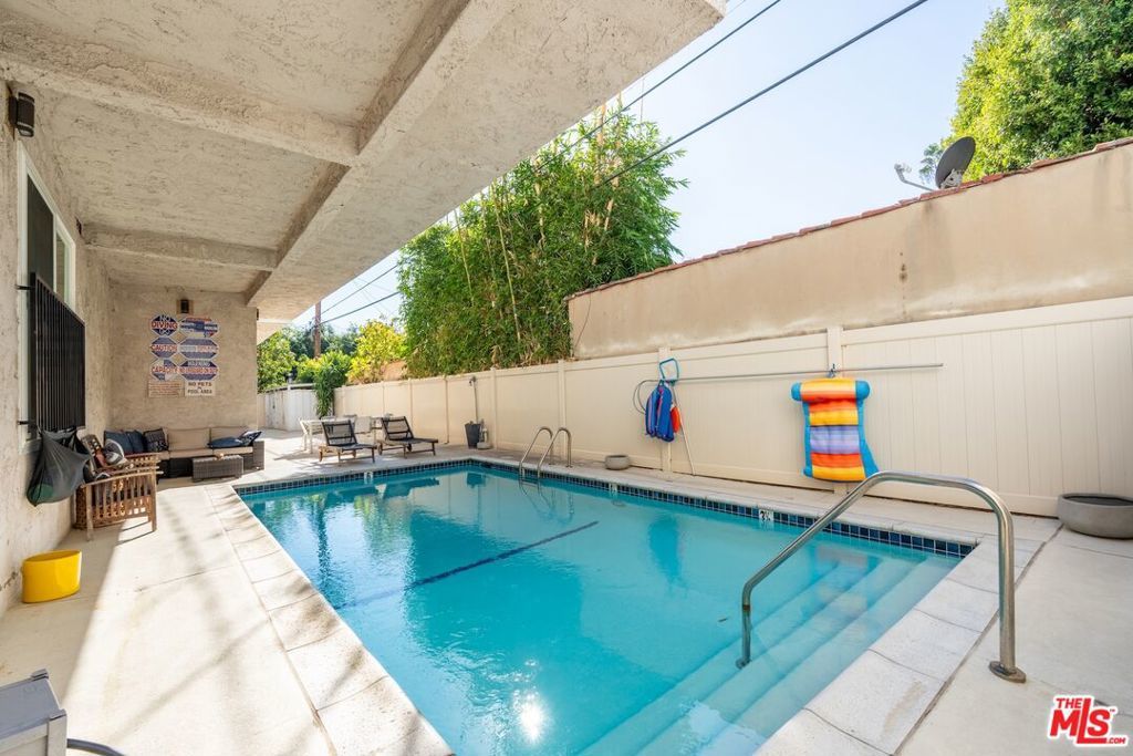 This 2BR/2BA condo is the best bargain in West Hollywood. Located on the second floor at the back of an intimate 21-unit building, this corner condo is bathed in natural light from west and south facing windows. Enjoy serene sunsets overlooking a rooftop view to the Hollywood Hills from this unit's big balconies that have sliding glass doors from the living room and the primary bedroom. This home is an amazing opportunity to channel your HGTV heroes! The galley kitchen, with its gas range/oven, could be a chef's delight with some loving renovations. The HOA allows installation of hardwood floors throughout to replace the carpeting. The two bathrooms are a blank canvas awaiting a creative owner to remodel with designer details. The primary bedroom has a walk-in closet and a spacious en-suite bathroom. Enjoy year-round climate-controlled comfort with central HVAC. In the building's securely gated garage, two side-by-side parking spaces and large storage closets are included in this sale. This pet-friendly building features succulent landscaping, a high-tech intercom system, community laundry rooms on each floor and a private pool area, all for a reasonable HOA fee that includes cable TV and internet. This coveted West Hollywood location is close to numerous restaurants, fitness studios, shopping and nightlife on Santa Monica Blvd. Don't delay; this home is the one you've been waiting for.