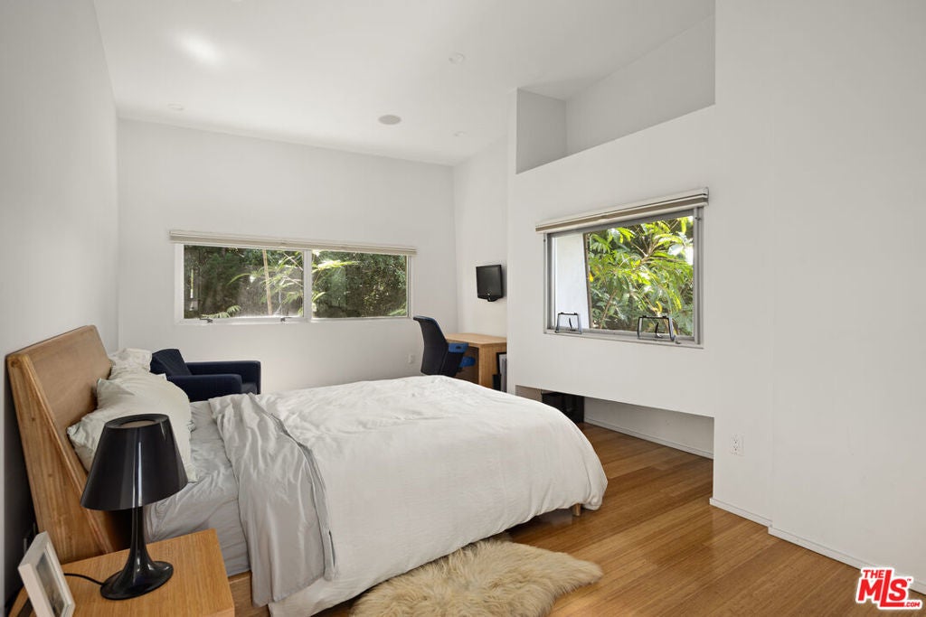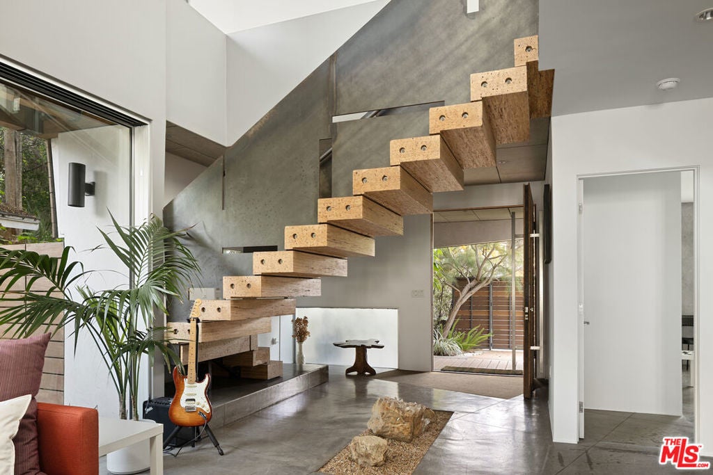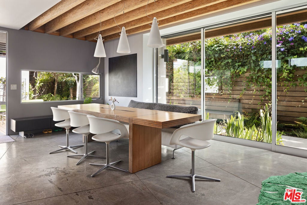 Architectural Paradise in Venice Beach. Welcome to your Bohemian tropical oasis in Venice Beach. This Platinum-rated LEED, Leadership in Energy and Environmental Design, modern home embodies eco-conscious living with numerous features for the socially conscious resident and discerning architectural enthusiast. Built to minimize its eco-footprint, this home integrates green, sustainable, and recycled products, proving that being environmentally conscious does not mean sacrificing great design. The open commercial kitchen's linear design, with no returns and walls, takes advantage of natural light from all sides, showcasing a significant green design element. Features like recycled denim insulation, bamboo wood, and energy-efficient Fleetwood glazing enhance the home's energy efficiency and promote healthier natural airflow. Radiant heating, solar panels, and energy-star appliances are just a few reasons this home boasts a leading-edge sustainability record. The layout, designed for optimal natural lighting, complements the use of FSC-certified lumber and Caesarstone rock throughout the house. Current furnishings from leading green manufacturers, such as Knoll Textiles, Steelcase, Viesso, and Modern Outdoor, complete the home's eco-friendly profile. Spanning over 3,400 square feet, this home offers serene escapes in multiple areas to soothe your mind or enjoy the beachy atmosphere. The central living room features an open floor plan with ceilings extending to the second floor, flanked by oversized windows. Sunshine floods every corner of the house, thanks to the meticulously designed Fleetwood sliders and windows, and overhead motorized, rain-sensor skylights in every room. The commercial kitchen and adjacent dining room have been the heart of many events and intimate dinners. Host special gatherings in an expansive open layout that allows seamless passageways between living areas. Beautiful cantilevered Paralam beams, made from recycled materials, enhance the ambiance with their unique texture and feel. The floor-to-ceiling Fleetwood sliders pocket to one side, creating an incredible indoor/outdoor experience overlooking the gardens. A built-in multi-channel entertainment sound system delivers customized music throughout the house. The primary en suite, with over 800 square feet of space, offers a personal sanctuary. An Italian-designed gas fireplace and multiple chaise lounges provide cozy spots for reading, meditating, and unwinding. Indulge in the spa-like bathroom featuring recycled glass-walled shower stall with five individual shower spray nozzles and a multi-jet whirlpool tub. The space also includes double vanity sinks and oversized steam-less mirrors. A 100-square-foot walk-in closet provides ample storage for clothing and personal items. Two guest bedrooms, lined with bamboo flooring, sit on the opposite side of the house, sharing a Jack-and-Jill bathroom. Both spacious bedrooms feature elevated ceilings, generous natural lighting, and personal comfort. Guest suite/office above detached garage serves as a perfect works space or guest suite for visitors. From the ground up, inside and out, this modern home is thoughtful, meticulous in design, and highly functional. Experience the perfect blend of tropical elegance and sustainable living in this stunning Venice Beach home situated one block away from the quintessential Gjelina restaurant on Abbot Kinney and other boutique shops lining the boulevard. https://apply.link/lSr-2Zo