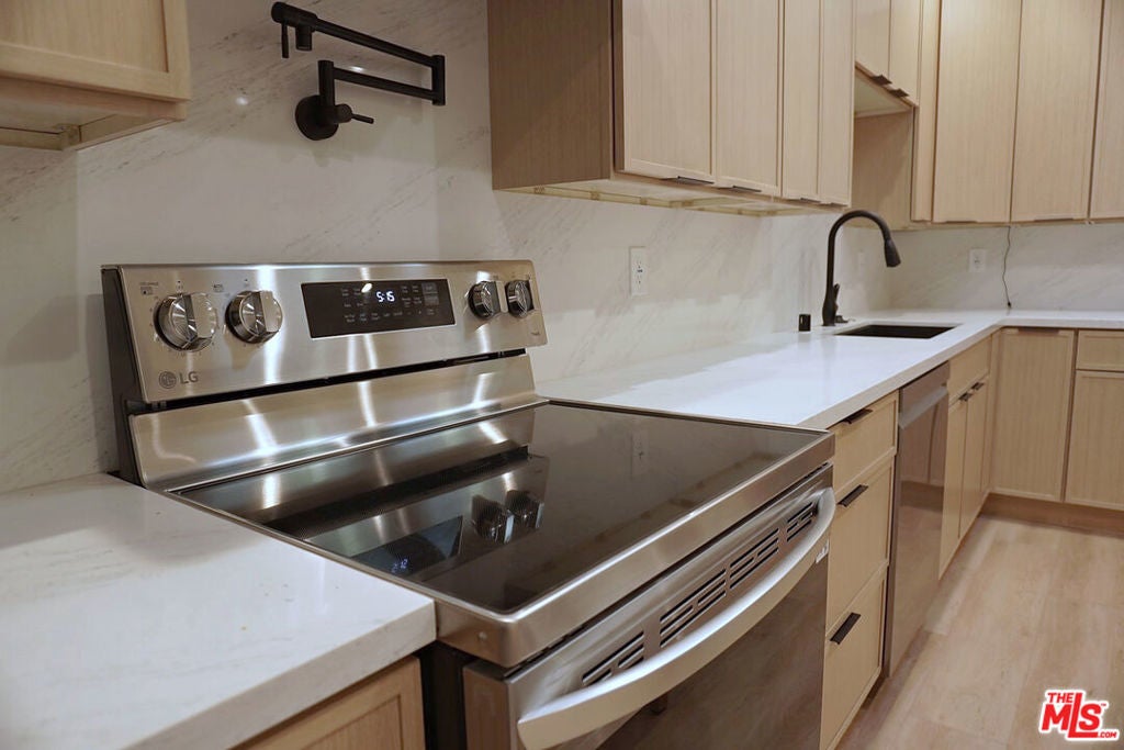 Newly built 2BD/2BA with vaulted ceilings, skylights, and great natural light. Features brand-new stainless steel appliances, in-unit washer/dryer, central AC, and gated parking (1 space). Prime Woodland Hills location just minutes to Westfield Topanga, Costco, Joey's, and the 101 FWY. Easy to show. Contact listing agent for access.