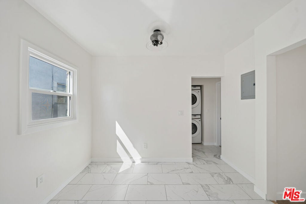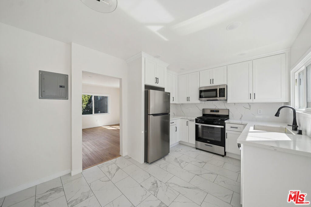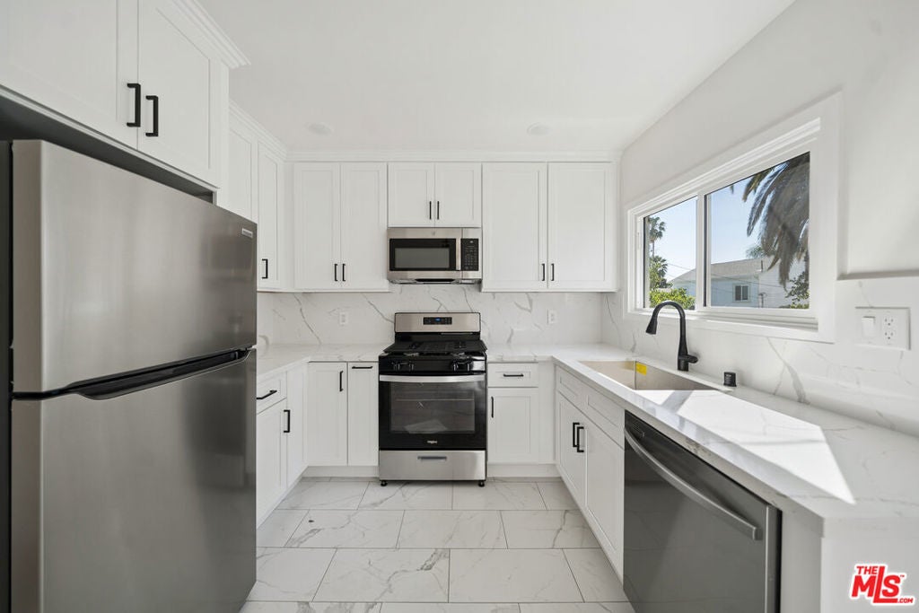 Beautifully renovated upper-level 1bedroom in prime West Hollywood featuring modern upgrades, abundant natural light, and a stylish contemporary layout. The kitchen includes stainless steel appliances, quartz counters, shaker cabinetry, and chic black fixtures. The spacious living area and bedroom are each equipped with mini split A/C units. The updated bathroom offers a sleek walk-in shower with glass enclosure, matte black hardware, and a built-in shower bench. This unit includes in-unit laundry and one assigned parking space. Pets are permitted subject to owner approval. Tenant pays electric, gas, and trash. Owner pays water. Located near Melrose Avenue, Fairfax Village, The Grove, Whole Foods, Trader Joe's, and numerous cafes, gyms, and local attractions. Square footage not verified.