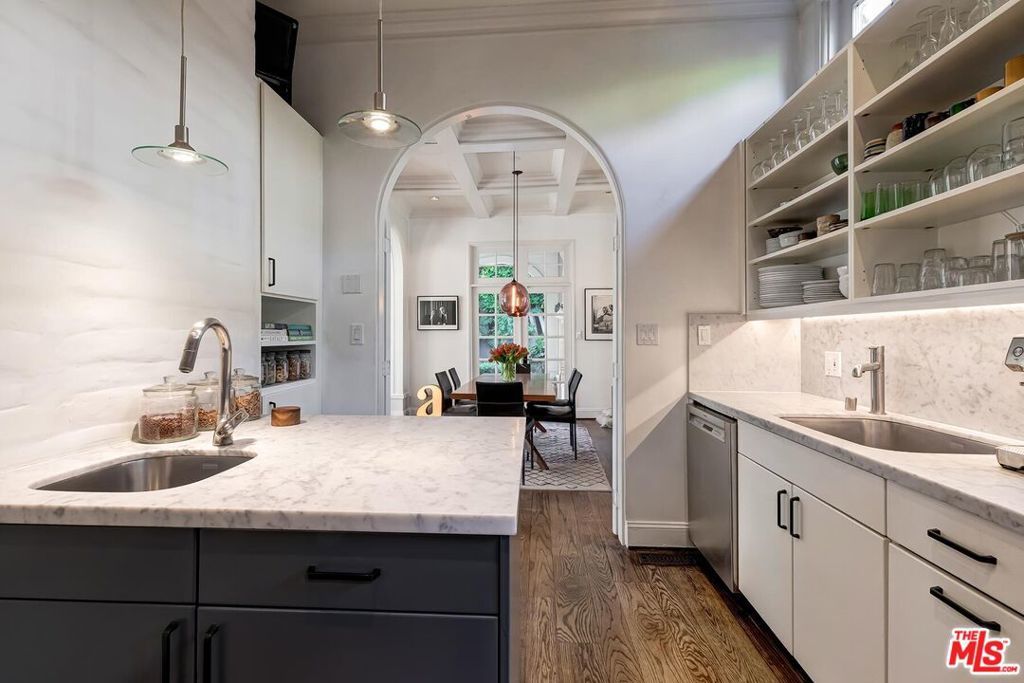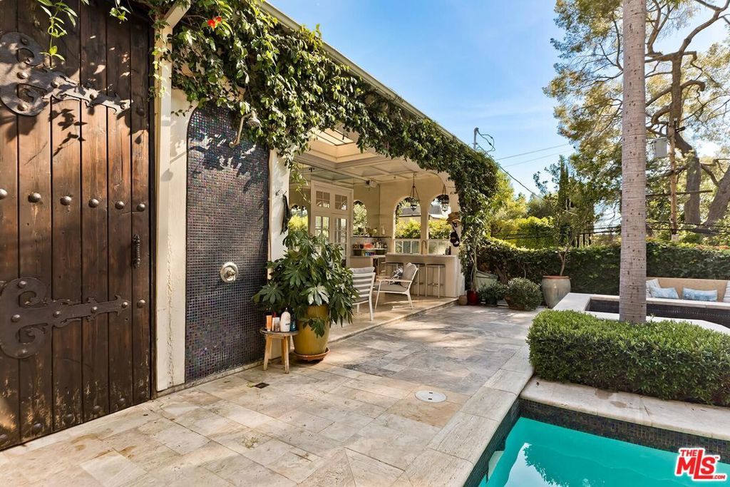 Elegant Mediterranean estate designed by acclaimed builder-architect Fred Smathers, located in the prestigious Upper Nichols Canyon neighborhood. An open-concept living and dining area showcases Smathers' signature arches and expansive windows, seamlessly blending indoor and outdoor living. Step outside to a spectacular entertainer's retreat featuring a pool, spa, outdoor shower, and bar, along with a covered patio highlighted by a striking fireplace, perfect for year-round enjoyment. This stylish residence offers 3 bedrooms and 5 bathrooms, including a luxurious primary suite with direct access and a beautifully appointed ensuite bath. The lower level features a plush home theater and a dedicated gym, providing ideal spaces for relaxation and wellness. A newly renovated laundry room adds both convenience and charm. Soaring ceilings throughout enhance the home's light-filled, sophisticated ambiance, creating a truly exceptional living experience.