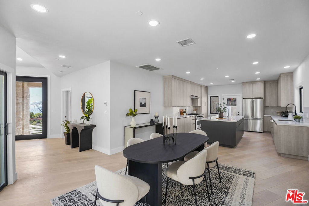 This turnkey single-level, ocean view Malibu home, offers 3 bedrooms and 2 baths, blending modern sophistication with an inviting coastal vibe. Sunlit interiors are complemented by wide plank flooring, recessed lighting, and an effortless indoor-outdoor connection, with walls of glass opening to a patio and private sitting area. The living and dining areas are thoughtfully arranged to promote both comfort and flow, transitioning seamlessly into a refined stainless-steel kitchen complete with an oversized quartz island, all anchored by a shared fireplace that enhances warmth and harmony. The large flat yard with room for a pool is framed by a striking king palm that is complemented by low maintenance drought-tolerant landscaping. Additional features include fire-resistant construction with an integrated sprinkler system, multi zone A/C, a gated motor court, and a two-car garage. Located in a highly desirable central Malibu neighborhood with convenient access to Las Virgenes and Cross Creek, this completely redone, ocean-view residence presents an exceptional opportunity for elevated Malibu living.
