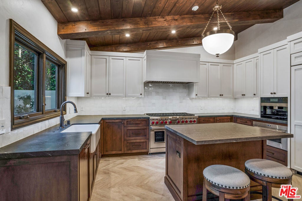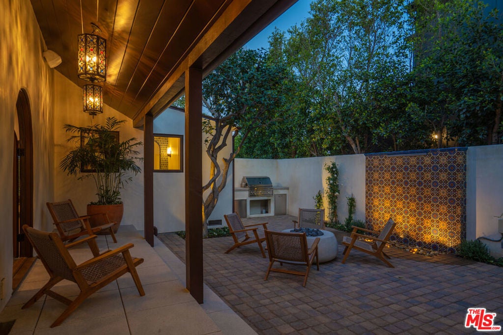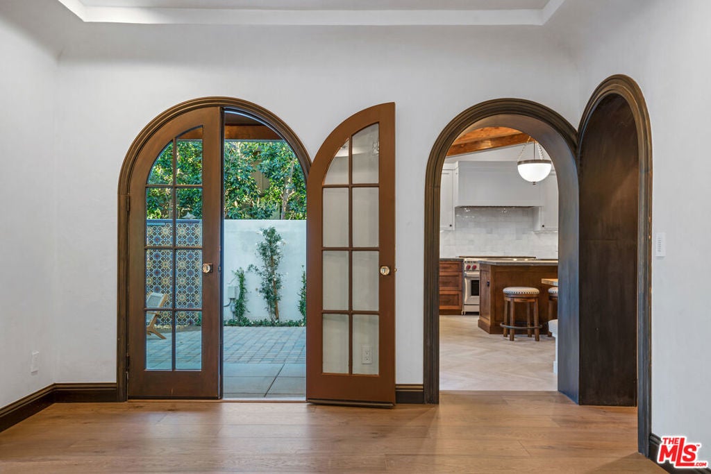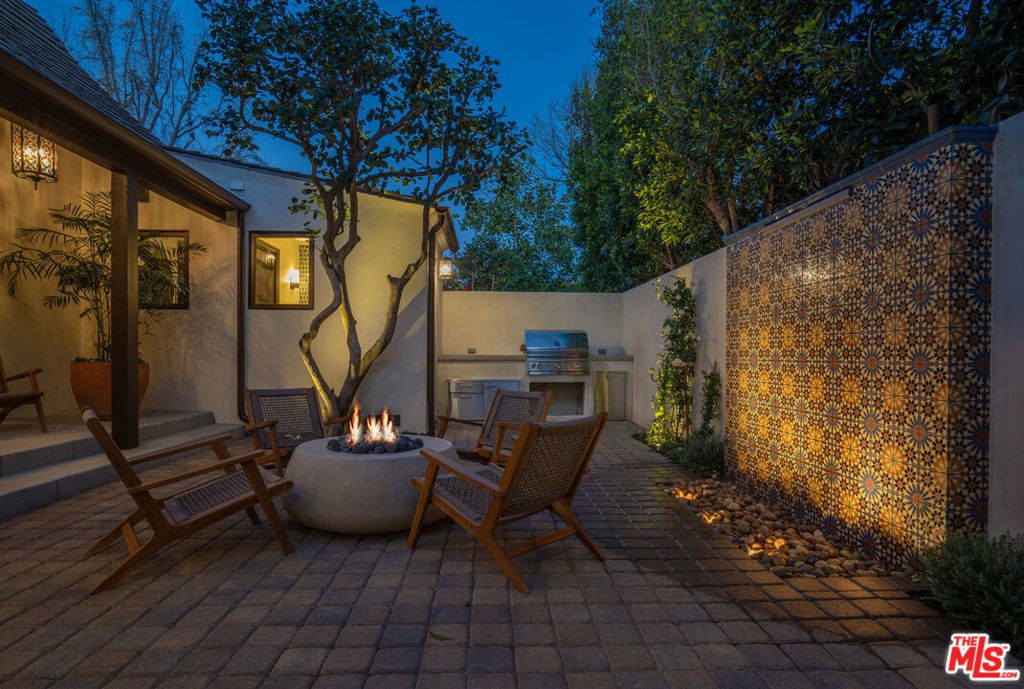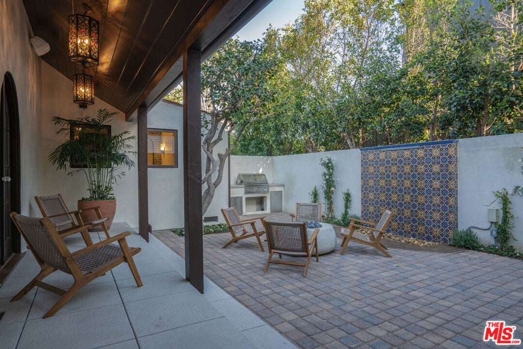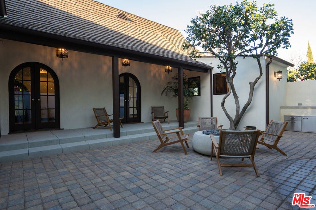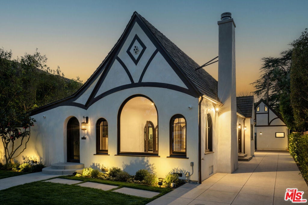 From the moment you walk across the front garden, you're welcomed into a storybook setting where classic Tudor charm meets elevated, modern design. Step into this masterfully reimagined home in the heart of Toluca Lake, a beautifully remodeled 2-bedroom, 2.5-bath residence that showcases a thoughtful blend of craftsmanship and luxury, complete with a fully detached studio ADU perfect for guests, a creative workspace, additional bedroom, gym or home office. Inside, the home is rich with curated details: elegant engineered hardwood floors flow throughout, complemented by striking designer wall finishes that add depth and personality to each space. French doors open seamlessly to the outdoors, enhancing the indoor-outdoor flow and inviting in natural light. The kitchen and baths feature exquisite Zellige tile, porcelain surfaces and refined marble accents, creating a sophisticated yet inviting aesthetic. The chef's kitchen is a true delight, featuring a charming built-in banquette for casual dining and gathering, and outfitted with premium appliances including a Wolf range, Sub-Zero refrigerator, built-in Miele coffee maker and Miele dishwasher perfectly designed for both everyday living and elevated entertaining. Custom, handcrafted iron light fixtures designed by a Santa Barbara artisan serve as statement pieces, each enhanced with distinctive glass inserts that cast a warm, ambient glow. Vaulted ceilings elevate the living spaces, filling the home with natural light and an airy sense of openness. The primary suite offers a true retreat, highlighted by a spa-inspired bath with a soaking tub framed by innovative smart glass delivering both privacy and a touch of modern luxury. At the heart of the property, the private courtyard is a true show piece, an entertainer's dream featuring a tiled waterfall fountain, cozy firepit, and outdoor BBQ, creating a seamless indoor-outdoor lifestyle perfect for relaxing or hosting under the stars. Beyond the interior, a gated entrance provides privacy and security, while the detached studio ADU adds versatility and value to this exceptional property. A rare blend of classic Tudor charm and contemporary sophistication, this Toluca Lake gem is designed to impress at every turn. Conveniently close to renowned dining, outstanding shopping and just a short drive to the Westside, beaches and freeways. Create your California lifestyle.