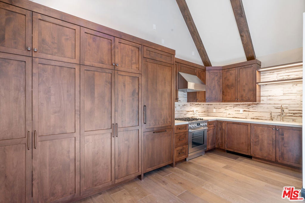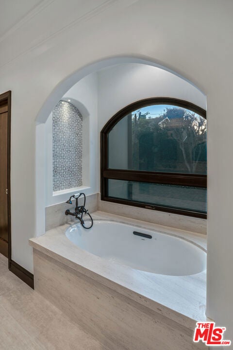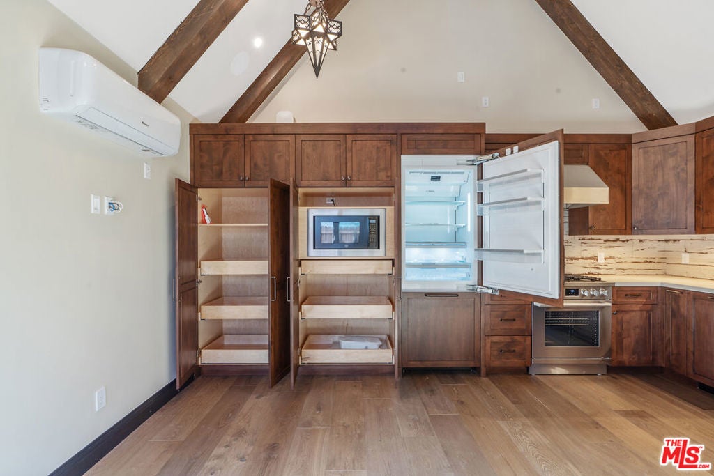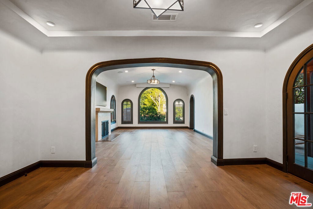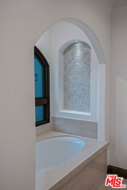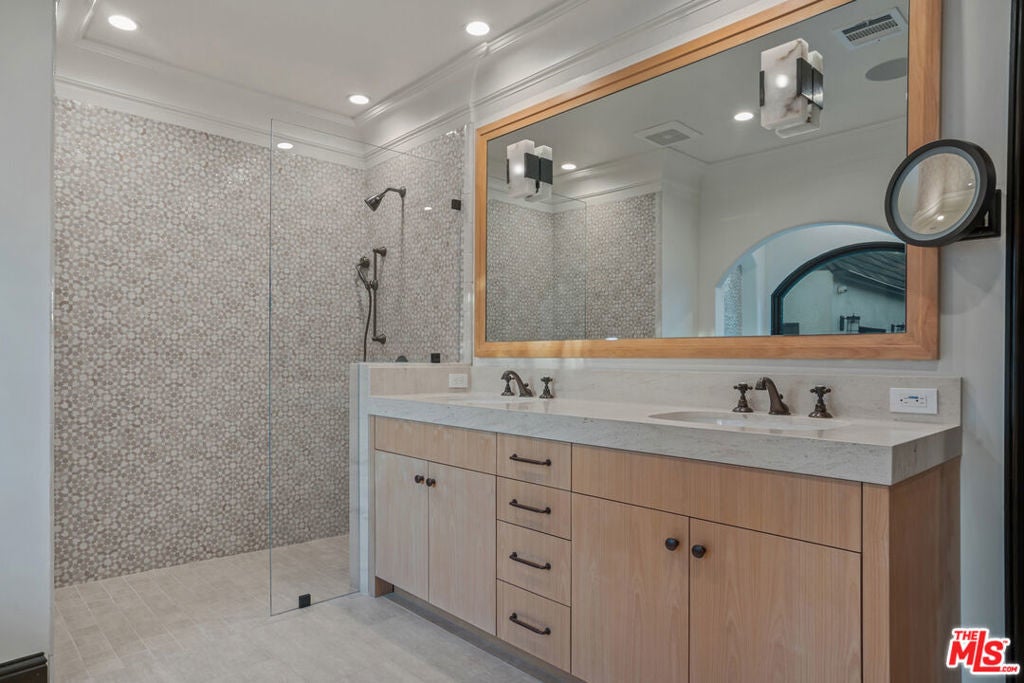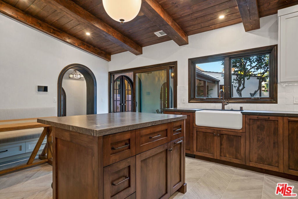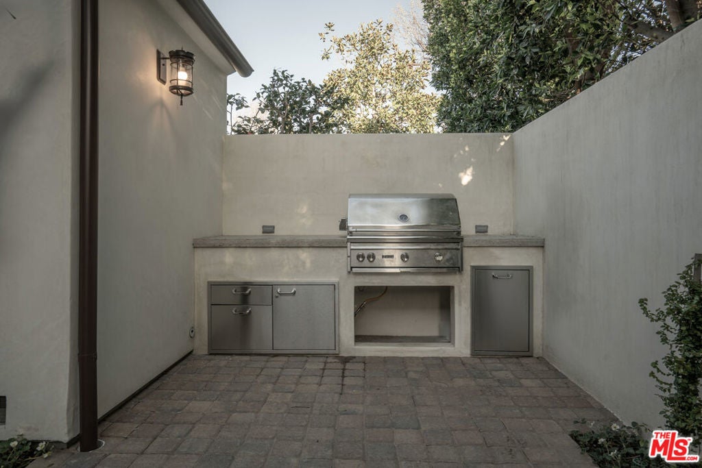 From the moment you walk across the front garden, you're welcomed into a storybook setting where classic Tudor charm meets elevated, modern design. Step into this masterfully reimagined home in the heart of Toluca Lake, a beautifully remodeled 2-bedroom, 2.5-bath residence that showcases a thoughtful blend of craftsmanship and luxury, complete with a fully detached studio ADU perfect for guests, a creative workspace, additional bedroom, gym or home office. Inside, the home is rich with curated details: elegant engineered hardwood floors flow throughout, complemented by striking designer wall finishes that add depth and personality to each space. French doors open seamlessly to the outdoors, enhancing the indoor-outdoor flow and inviting in natural light. The kitchen and baths feature exquisite Zellige tile, porcelain surfaces and refined marble accents, creating a sophisticated yet inviting aesthetic. The chef's kitchen is a true delight, featuring a charming built-in banquette for casual dining and gathering, and outfitted with premium appliances including a Wolf range, Sub-Zero refrigerator, built-in Miele coffee maker and Miele dishwasher perfectly designed for both everyday living and elevated entertaining. Custom, handcrafted iron light fixtures designed by a Santa Barbara artisan serve as statement pieces, each enhanced with distinctive glass inserts that cast a warm, ambient glow. Vaulted ceilings elevate the living spaces, filling the home with natural light and an airy sense of openness. The primary suite offers a true retreat, highlighted by a spa-inspired bath with a soaking tub framed by innovative smart glass delivering both privacy and a touch of modern luxury. At the heart of the property, the private courtyard is a true show piece, an entertainer's dream featuring a tiled waterfall fountain, cozy firepit, and outdoor BBQ, creating a seamless indoor-outdoor lifestyle perfect for relaxing or hosting under the stars. Beyond the interior, a gated entrance provides privacy and security, while the detached studio ADU adds versatility and value to this exceptional property. A rare blend of classic Tudor charm and contemporary sophistication, this Toluca Lake gem is designed to impress at every turn. Conveniently close to renowned dining, outstanding shopping and just a short drive to the Westside, beaches and freeways. Create your California lifestyle.