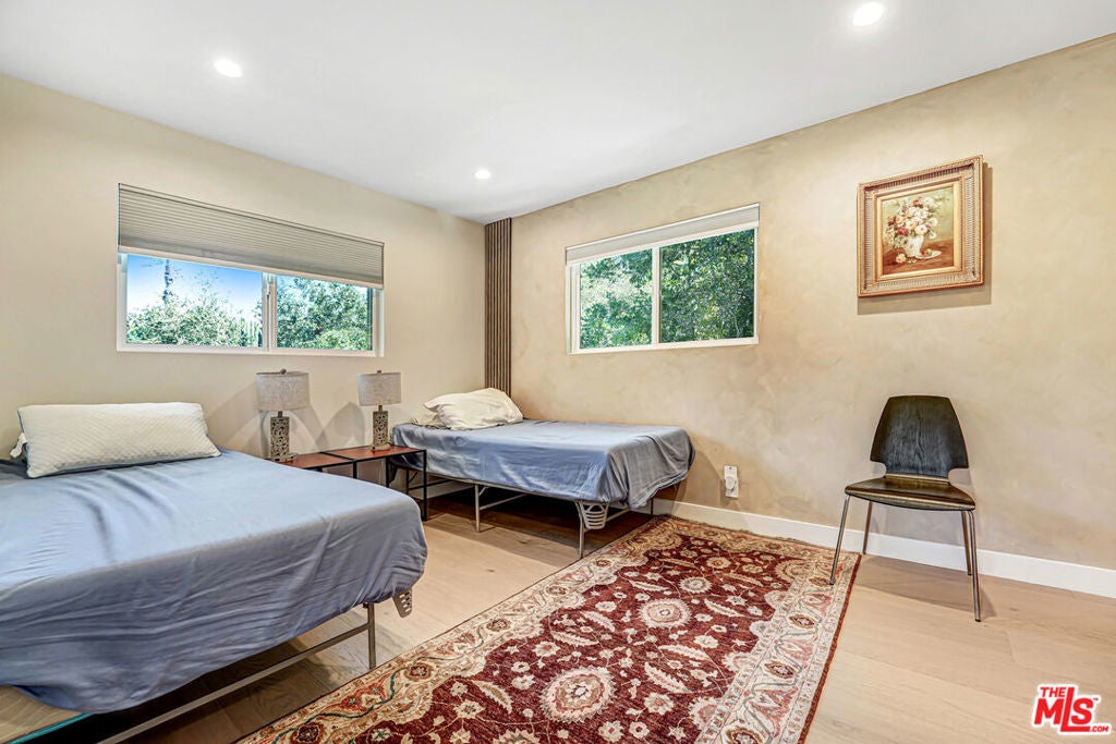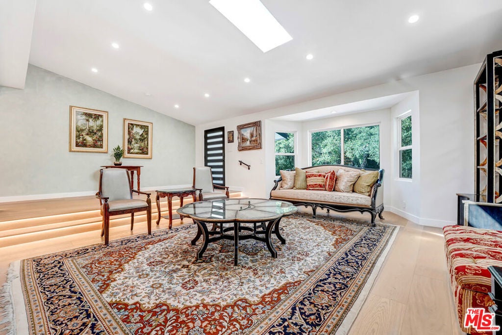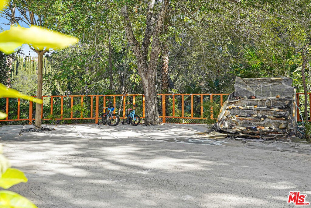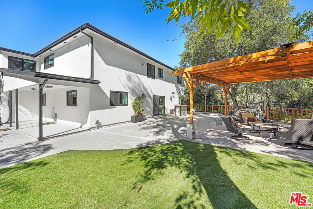 Experience the ultimate "Tree House" sanctuary in this masterfully reimagined home, situated on a sprawling 20,000+ square foot flag lot just a half-mile south of Ventura Boulevard. This 4-bedroom, 3-bathroom residence offers over 3,100 square feet of modern luxury and has undergone a complete top-to-bottom renovation, including a brand-new roof, windows, doors, electrical, plumbing, and dual-zone, app-controlled HVAC systems for precise climate control on every floor. The open-concept interior is anchored by a gourmet chef's kitchen featuring a professional Thermador appliance suite, stunning Taj Mahal Quartzite countertops, and a versatile island and peninsula layout. Designer engineered hardwood floors flow throughout the home, leading to a massive primary suite that serves as a multi-functional family retreat. The primary suite includes a dedicated sitting room perfect for a nursery or executive office, an extended exercise room for private wellness, and two separate, oversized walk-in closets. Every detail has been meticulously curated to provide a turn-key experience for those seeking brand-new construction quality within a secure, secluded environment. The exterior grounds are truly unparalleled, offering a private forest-like atmosphere characterized by mature trees and a tranquil, rhythmic waterfall. The elevated nature of the lot creates a unique "Tree House" perspective, complemented by an expansive outdoor dining deck off the living room that features professional tree lighting throughout the canopy and over the waterfall area. Entertainment and relaxation are seamless with a custom outdoor BBQ station, a beautiful gazebo, and multiple elevated paved platforms equipped with electrical and water supplies, ideal for a secondary workout space or quiet meditation. For the modern commuter, the property includes a completely renovated 3-car garage with a 220V outlet ready for your EV charger, custom storage shelving, and remote-controlled security doors for added peace of mind. A brand-new concrete driveway and an extra-large paved front yard provide ample space for guest parking. This flag-lot estate offers the rare combination of immediate access to the boutiques and dining of the city with the total privacy and security of a hidden mountain retreat.