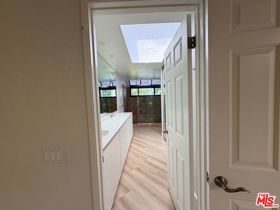 View, view, view! This beautifully appointed 2-bedroom plus den/loft residence offers an abundance of natural light and an open, airy layout. The living room features soaring two-story ceilings with a ceiling fan, a cozy fireplace, and three skylights that fill the home with warmth and brightness. Elegant hardwood flooring runs throughout. The kitchen has been tastefully remodeled with European-style cabinetry, while the 2.5 bathrooms have each been upgraded with clean, modern finishes and distinctive design elements. The upstairs den/loft includes built-in shelving, making it ideal for use as a family library, home office, or additional living space. Sliding glass doors open to a private rear patio overlooking the scenic Turtle Rock trail.The spacious primary suite offers room for a retreat area and features a private balcony with tranquil views. Additional highlights include a large garage with built-in storage cabinets. A water softener system is installed, providing added comfort and convenience. Located in a highly desirable community with access to a park, greenbelt, pool, and tennis courts. Conveniently within walking distance via a direct path to Turtle Rock Elementary School and University High School.