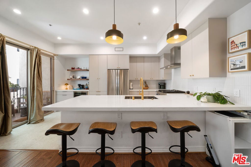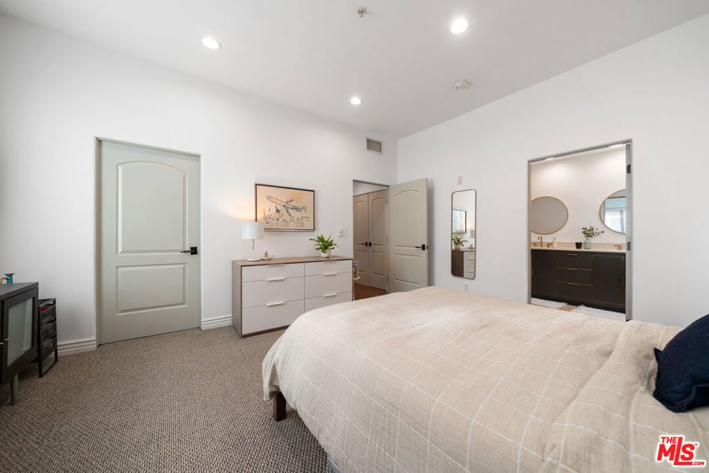 This is not your average condo. Tucked away on the second floor of a classic Spanish-style building in the heart of Toluca Lake, this condo has been reimagined into a bespoke, Scandi-modern sanctuary. This 3-bedroom residence is defined by bright, open-concept spaces and highly curated, designer details. The Kitchen is a Masterclass in Design where the owners spared no expense. They created a seamless chef's kitchen featuring flat-panel custom cabinetry, elegant stone countertops, stunning tile backsplash, and custom pendant lights. Brushed gold hardware and a coordinating gooseneck faucet are elevated details. Open shelving over the dedicated dry bar/espresso station offsets the clean lines, and features a built-in wine cooler for effortless hosting. Entertaining Made Easy | The layout flows naturally through the living spaces with wood floors and terrazzo tiles, toward a charming Juliet balcony nook. It's an ideal, private space for a vertical garden or a quiet coffee. Spa-Inspired Bathrooms | The primary suite is a true retreat. It leads into a bathroom sanctuary anchored by a deep soaking tub, extra large shower and a double sink vanity with plenty of counter space in between. The Heart of Toluca Lake | Located steps from iconic Riverside Drive, this property offers incredible walkability to the neighborhood's storied dining and boutique shopping. Move-in-ready, highly polished, and impossible to find at this level of finish. This is the new standard of Toluca Lake living. Additional Details | Plenty of storage in the form of a front hall closet, a full-size laundry room, a linen closet, and a custom primary walk-in closet. Must-Have EV charger in the garage, as well as a storage locker and bike room.
