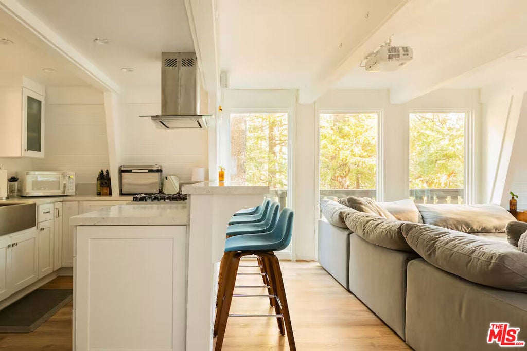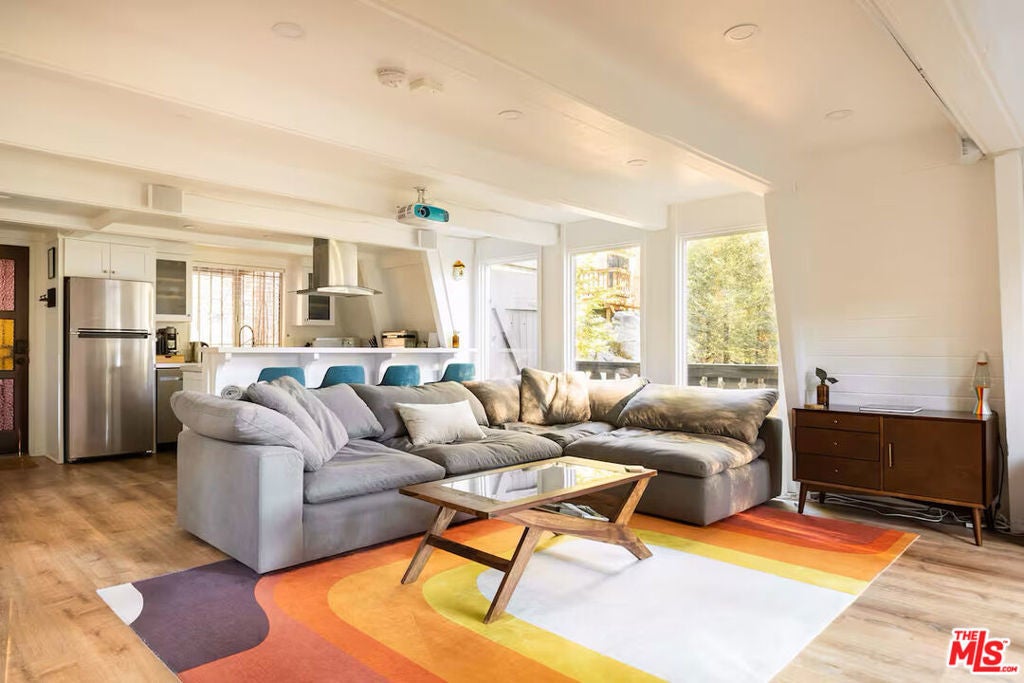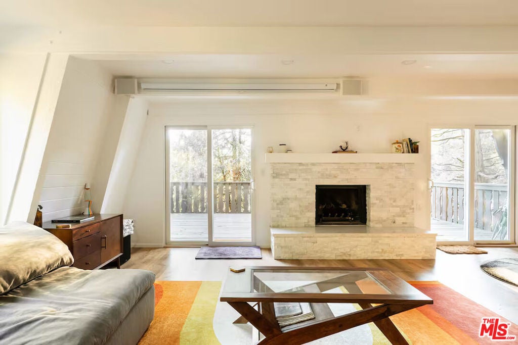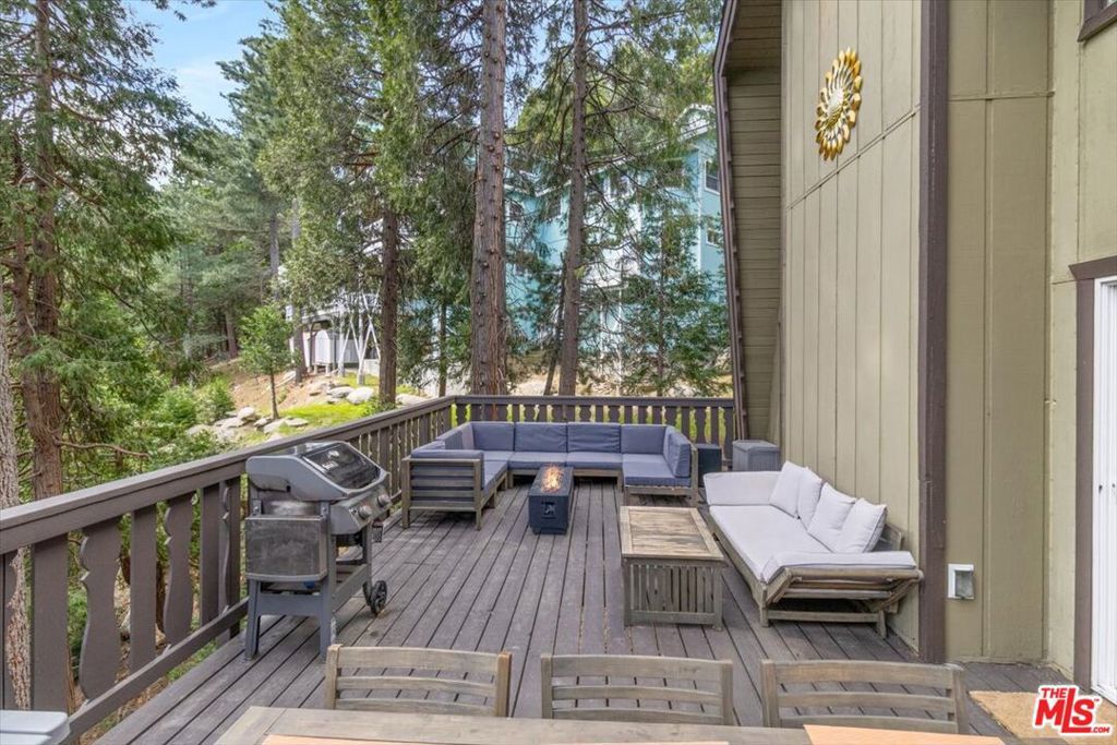Experience elevated mountain living in this fully furnished Mid-Century modern retreat, tucked away among towering pines and cedars. Ideally located just moments from local shops, dining, dog parks, and the scenic shores of Lake Gregory, this home offers the perfect balance of convenience and natural beauty. Lake Gregory is a true hidden gem ideal for swimming, boating, and enjoying its popular inflatable water park. Surrounded by forested tranquility, it provides a refreshing escape year-round. In every season, Crestline offers endless recreation, with easy access to nearby hiking trails and a short drive to Big Bear's renowned ski slopes. Built in 1974 and set in the historic San Moritz neighborhood, this three-story chalet has been thoughtfully renovated to blend modern luxury with its original architectural charm. The result is a warm, stylish space that honors its mid-century roots while offering today's comforts. Currently operating as a highly rated and sought after Airbnb, the home is a proven a guest favorite. Features include multiple parking spaces with rare level entry perfect for accommodating extra vehicles, possibly even a boat or camper. Inside, unwind in the soaking tub after a day on the slopes, gather around the fireplace for cozy evenings, or enjoy movie nights on the oversized sofa with a 100" 4K projector and surround sound system. Step outside to the newly renovated deck ideal for grilling and dining under the trees after a day at the lake. Perched on Altdorf Drive, this property offers exceptional privacy and a peaceful setting just a short drive from Los Angeles. Renovated in 2021, it's truly move-in ready and designed for both relaxation and entertaining.Whether you're searching for a serene personal retreat or a turnkey investment opportunity, this one-of-a-kind mountain home delivers. Schedule your showing today and discover its charm for yourself.