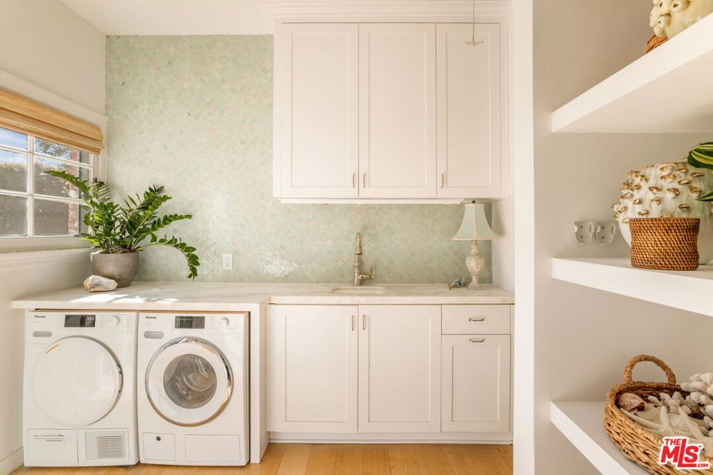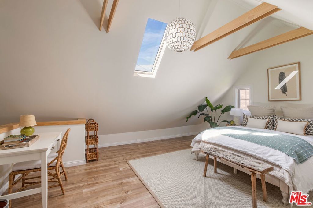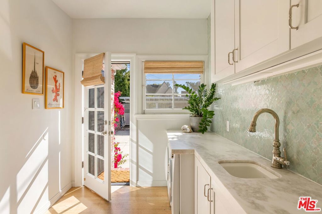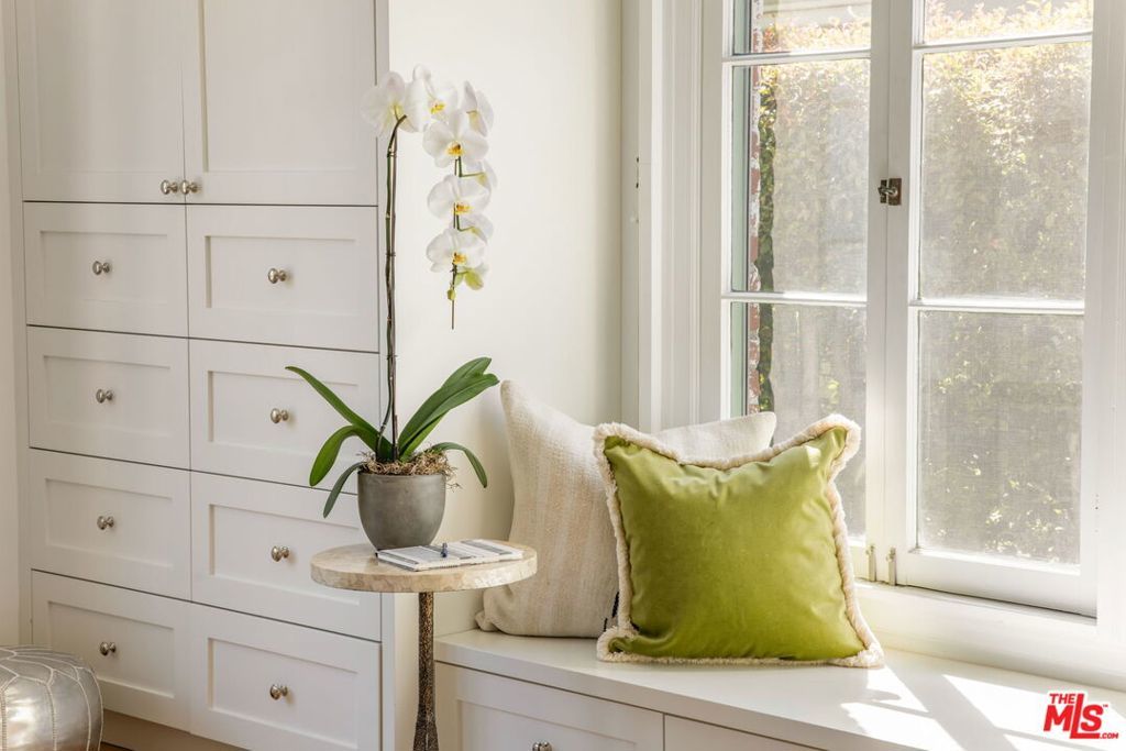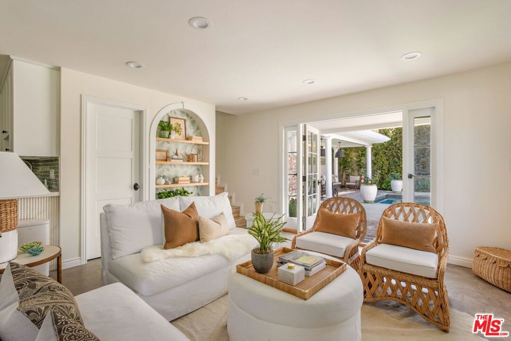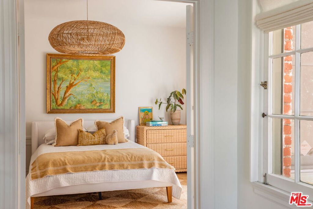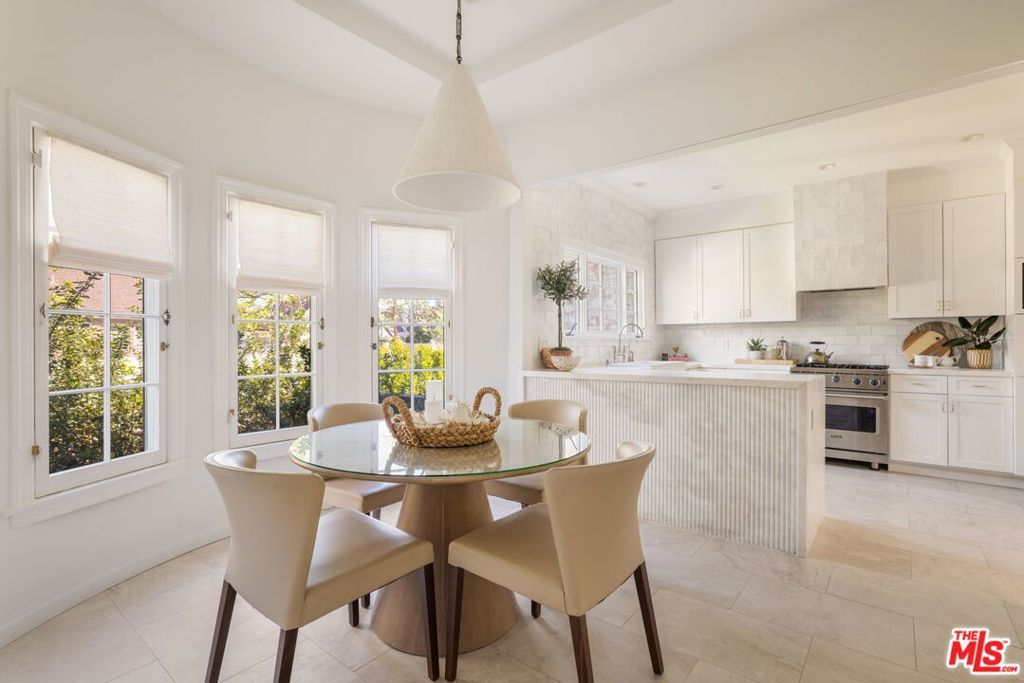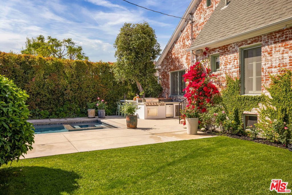 Set on an oversized 9,300-square-foot private lot in a coveted Hancock Park adjacent location near Brookside and Miracle Mile, this beautifully reimagined English Country Cottage offers 3 bedrooms plus a guest house (ADU) and pool, blending timeless architecture with modern livable luxury. Bathed in natural light, the home unfolds with an effortless sense of flow, creating an atmosphere that feels both open and inviting. The generous living room is anchored by dramatic arched windows, while the formal dining room opens to a tiled terrace, ideal for indoor-outdoor entertaining. The designer kitchen is a true focal point, featuring Zellige tile, gourmet appliances, marble countertops, and a striking eat-in dining area with custom floor-to-ceiling bookshelves. The main residence includes three well-proportioned bedrooms, each unified by a cohesive, design-forward aesthetic. The primary suite offers a spa-like bathroom with refined finishes and elegant detailing. A charming two-story guest house with its own kitchen, living area, and bathroom provides exceptional flexibility, perfect for guests, a private office, studio, or extended stays. The expansive backyard is a true retreat, complete with a pool, covered seating area, and built-in barbecue, designed for both relaxation and entertaining. Additional features include wide-plank hardwood floors, bespoke lighting, curated finishes, and custom window coverings throughout. Elegant, composed, and quietly luxurious, this Hancock Park adjacent compound is a rare opportunity to own a thoughtfully designed home in one of Los Angeles' most desirable neighborhoods.