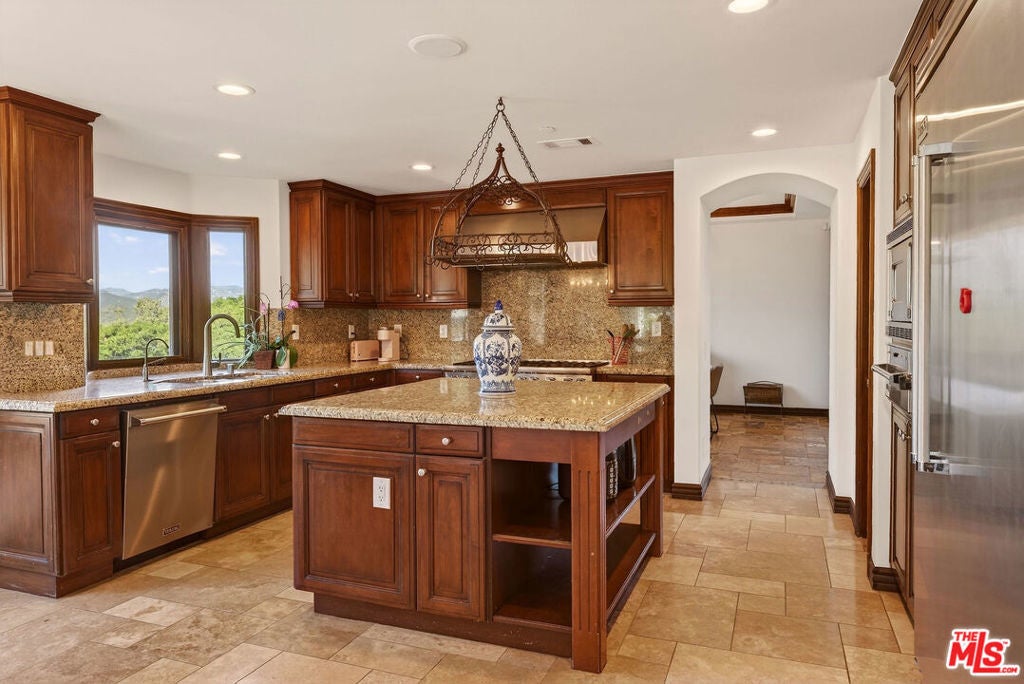 Located in the serene enclave of Monte Nido, just minutes from the iconic beaches of Malibu, this exceptional 7-bedroom estate offers the ultimate blend of luxury, comfort, and resort-style living. Set on a sprawling, fully gated 3/4-acre lot, the property is a private oasis featuring a beach-entry, saltwater, solar-heated pool with spa, waterslide, and swim-up bar, complemented by authentic palapas and an expansive BBQ and entertaining area. Additional outdoor highlights include a children's play area, a walking track that encircles the property, and ample RV parking. An attached guest unit adds flexibility for extended family or visitors. Inside, approximately 5,000 square feet of living space showcases soaring ceilings, walls of glass, and breathtaking views of the Santa Monica Mountains. The oversized gourmet kitchen, anchored by a massive center island, opens seamlessly to the tropical pool area, perfect for both everyday living and entertaining. The home offers formal living and dining rooms, a cozy den, and a spacious homework or office area. Four ensuite bedrooms provide comfort and privacy, while the spectacular primary suite sets a new standard for luxury with a fireplace, soaking tub, dual vanities, separate closets, and sweeping views. Balancing grandeur with warmth, this home is both elegant and inviting, ideal for hosting or simply enjoying time with family. Monte Nido is cherished for its peaceful, close-knit community feel often likened to a modern-day Mayberry while remaining just a short drive from Malibu's renowned shopping, dining, beaches, and hiking trails.
