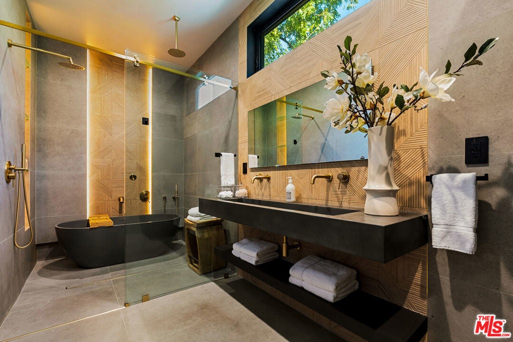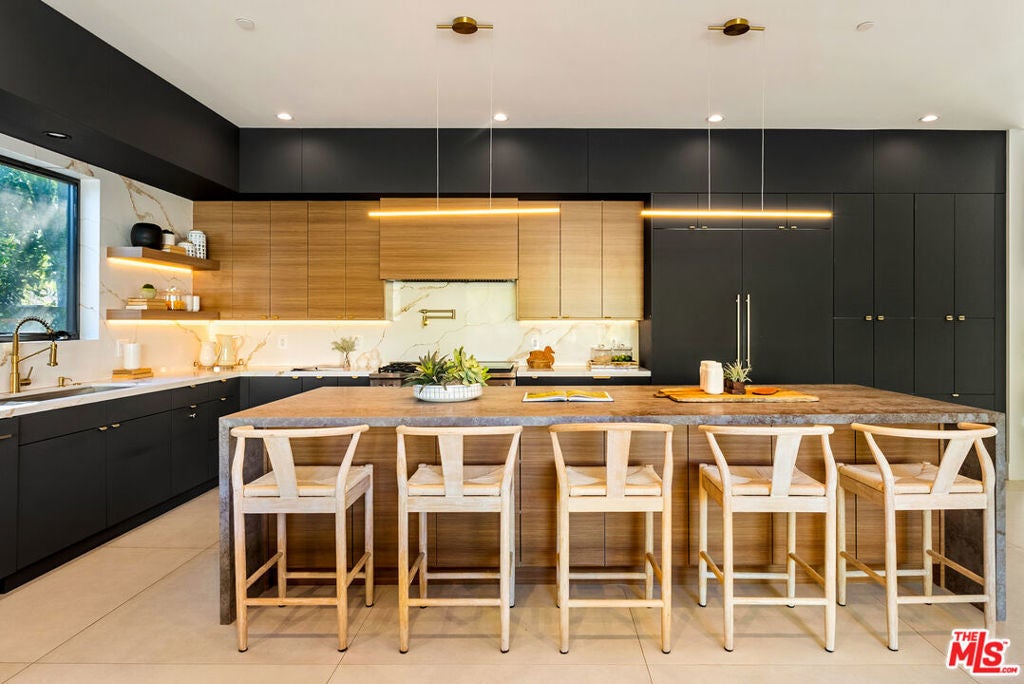 Introducing a stunning newer construction by STYLEBUILD in the highly sought-after Encino neighborhood, just moments from Ventura Boulevard. This exceptional residence blends luxury, quality craftsmanship, and modern design throughout. Set on an expansive ~9,000 sq ft lot, the property offers privacy with a fully hedged perimeter. Inside, a bright and open floor plan showcases a designer chef's kitchen featuring top-of-the-line appliances, a large center island with seating, and seamless flow into the family and dining areas ideal for everyday living and entertaining. Custom sliding doors open to a resort-style backyard complete with a covered patio, pool, and spa, creating the ultimate indoor-outdoor California lifestyle. The gated front yard provides additional space for multiple vehicles or recreational use. The main level features a private primary suite with direct access to the backyard, along with an additional bedroom for guests or office use. Upstairs, you'll find three spacious en-suite bedrooms, including a potential second primary suite. A rare opportunity to own a thoughtfully designed, move-in-ready home in one of Encino's premier locations.