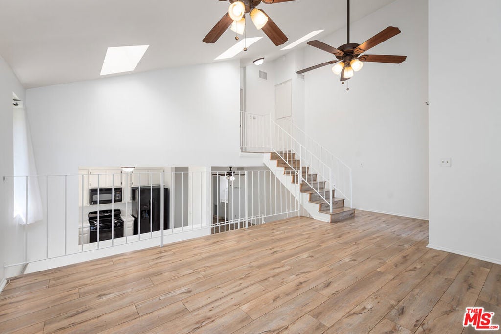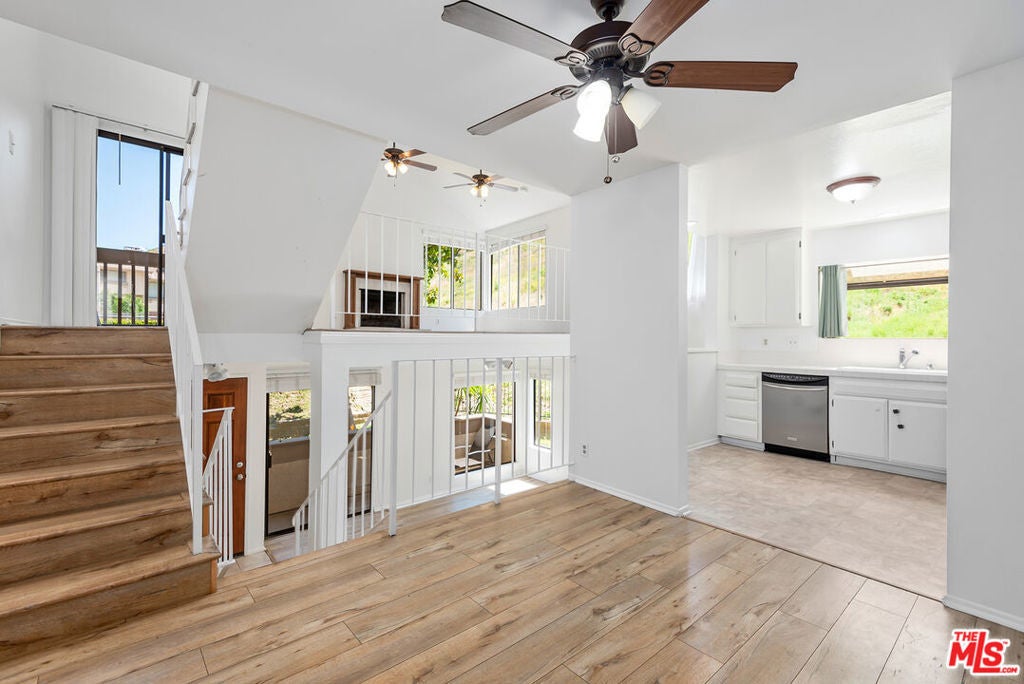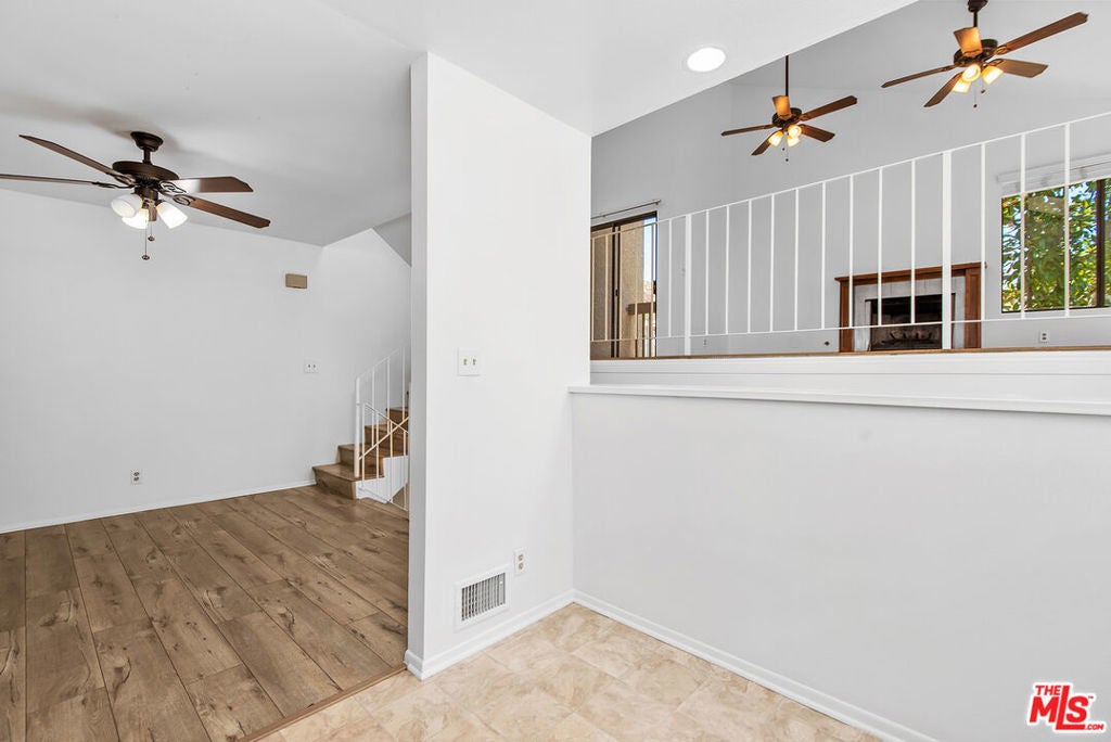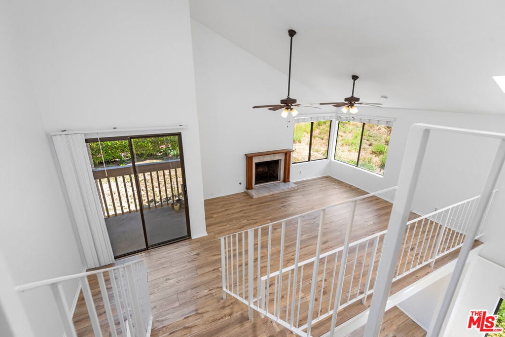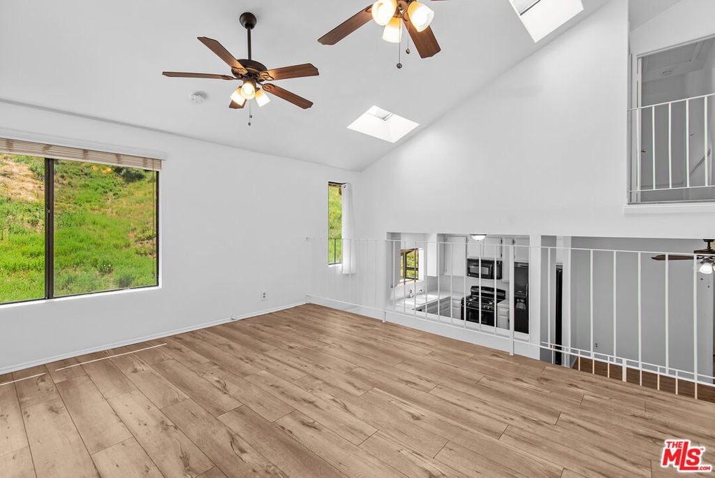 Beautiful 3-bedroom, 2-bathroom end unit townhome, in the highly desirable Alizia Canyon community in Calabasas. This internally located unit offers a great open floorplan with tons of natural light, vaulted ceilings, both living and family rooms, skylights, sliding glass doors, and outdoor space. An open entry welcomes you into a spacious living room overlooking the front patio. The spacious mid-level den features a cozy fireplace and sliding doors to a balcony with beautiful canyon views. A spacious kitchen boasts a greenhouse window that overlooks the lush hillside, ample cabinetry, and adjacent dining area. One bedroom and bathroom are also located downstairs. Upstairs, there are two additional well sized bedrooms that share a bathroom. Unit also includes newly installed HVAC and heat pump and an attached 2-car garage. Amenities include a pool, spa, tennis courts, and paths. Short drive into Calabasas or head to the inviting beaches of Malibu! Located in the award-winning Las Virgenes school district.