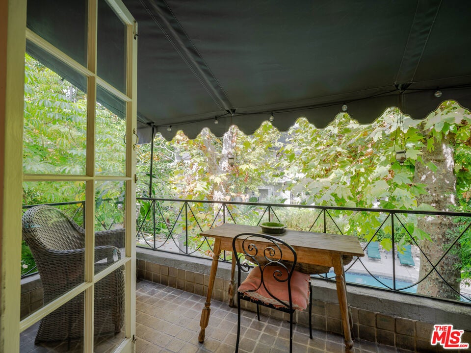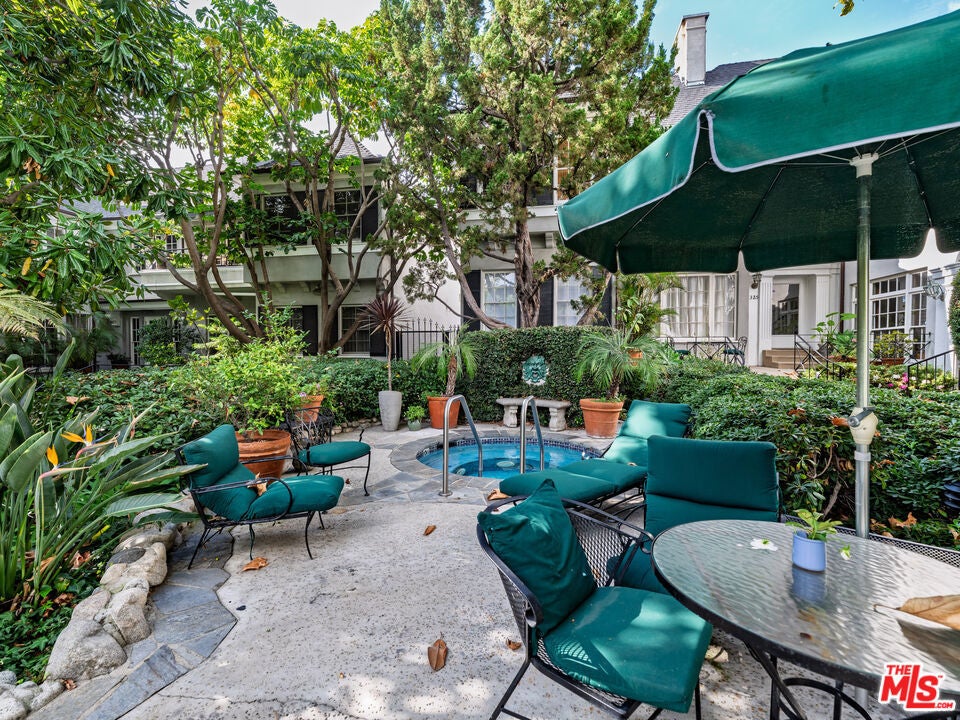 Spacious 3 bedroom, 2.5 bathroom residence in the boutique Chateau Brittany complex in the heart of West Hollywood. A private hedge lined gated entry opens to a beautifully landscaped courtyard with pool, spa, and lounge seating. Step directly into a bright living room with hardwood floors, a fireplace, and courtyard views through oversized windows. The layout flows into a generous dining area and a large kitchen with plenty of cabinet and counter space. Two well sized bedrooms and two full bathrooms on the main level. Upstairs, the primary suite takes over the entire upper floor with an eclectic, loft like layout that feels like its own private retreat. Steps from Sunset Plaza, dining, shopping, and nightlife.