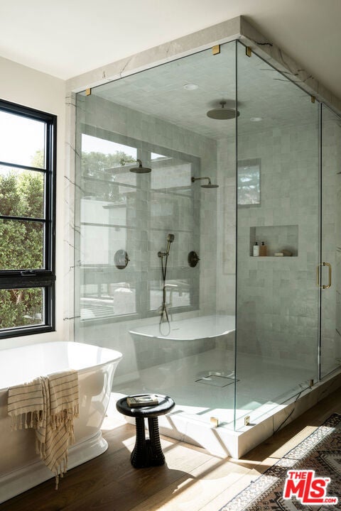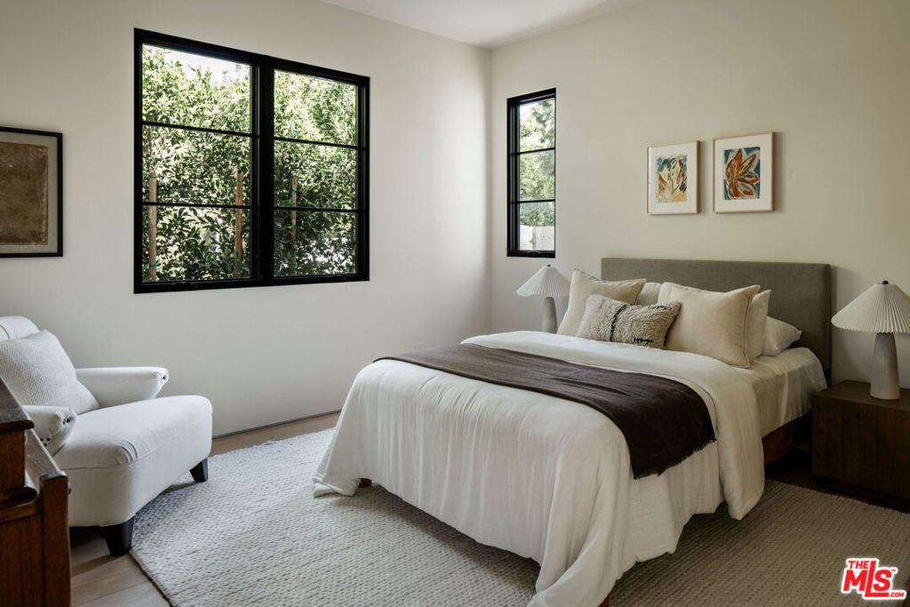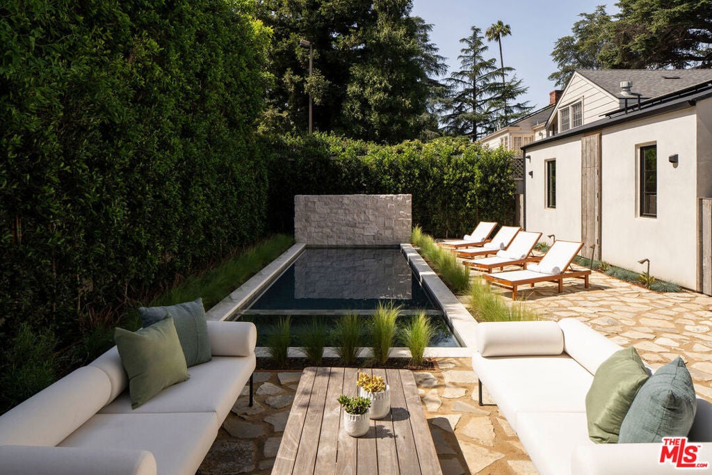 Nestled in the heart of Studio City's coveted Silver Triangle, this newly constructed modern farmhouse blends natural materials, designer finishes, and luxurious amenities to create a truly refined, light-filled sanctuary. Sitting on an oversized lot, the thoughtfully designed 5bed/5.5bath main house and separate 1bed/1bath guest house balance architecture and lifestyle with quiet ease. Inside, find the open concept main floor rooted in the dramatic grand foyer and sweeping curved staircase with high ceilings, white oak beams, and wide plank wood floors throughout. The chef's kitchen is appointed with custom white oak slim Shaker cabinetry, side-by-side large Sub-Zero fridge and freezer, 48-inch Wolf induction stove, Taj Mahal Quartzite counter tops, and two integrated sinks. Looking over an olive tree, the breakfast nook provides a haven for budding ideas and calm. The family room with built-in white oak shelving, fireplace, and floor-to-ceiling glass doors, opens to the outdoor oasis with sparkling pool and spa. Mature trees, lush landscaping, and an abundance of grass create an inviting environment for gathering. Upstairs, grounded by the vast landing, you'll find three en-suite bedrooms, two with balconies, a laundry room with built-in cabinets, and the primary suite, a beautiful and serene sunlit retreat with sitting area, large walk-in custom closet, designated make-up vanity and soaking tub. Outside, the separately addressed detached guest house features exceptional flexibility for guests, extended family, or can function as a private studio space. Additional amenities include: solar panels for house and ADU, built-in security cameras, integrated speakers, WIFI system, corrugated metal roof, and home control systems. The property is fully electric with no gas. Located south of Ventura Blvd, you are moments from Fryman Canyon, Erewhon, and The Shops at Sportman's Lodge, the Sunday Farmers Market, and all the exciting eateries and shops Studio City has to offer, plus easy access to Hollywood, the Westside, and one of the best public schools in Los Angeles, Carpenter Community Charter. This home offers a rare combination of impeccable design, warmth, and luxury in the ultimate location.
