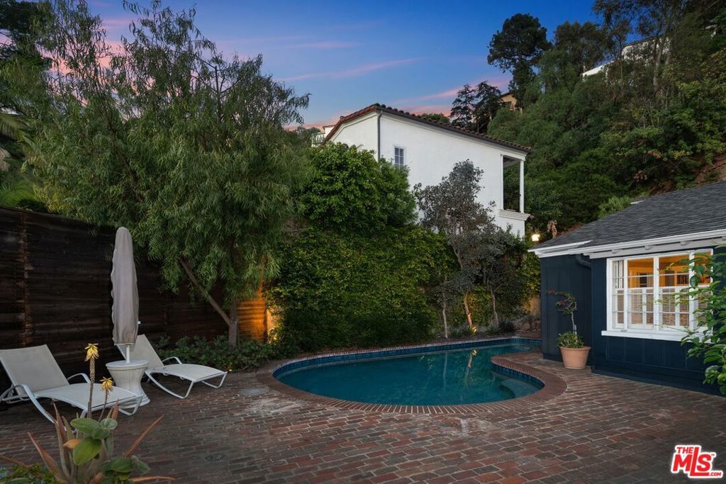 Located in an extraordinary setting, this special residence welcomes you with breathtaking canyon and city views the moment you arrive. Offered for the first time in 31 years, this is a rare and exceptional opportunity to own a truly cherished home that has had only three prior owners since 1935. Designed for effortless living, the expansive single-level floor plan offers a seamless flow throughout. Rich wood moldings and timeless architectural details create an air of elegance, while walls of windows frame stunning views from nearly every room, creating a light-filled and harmonious environment. Indoor-outdoor living is at its finest here. Two spacious primary suites provide comfort and privacy, while the classic kidney-shaped pool is set against a vast terrace and patioideal for entertaining or simply enjoying the serene surroundings. On the lower level is a four-room guest house, complete with separate entrance, private deck and same captivating views. There is also a large workshop. This offers flexibility for guests, a creative space, or extended living.Large 2 car attached garage which is hard to find in a beautiful vintage home. Representing one of the best values in Outpost Estates, this is a rare offering not to be missed.
