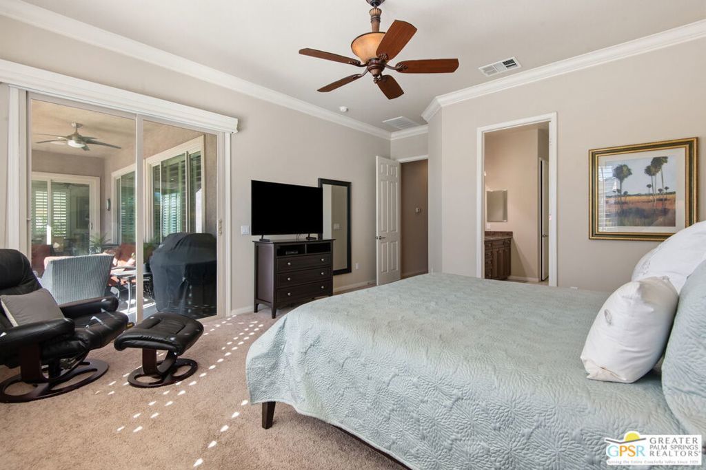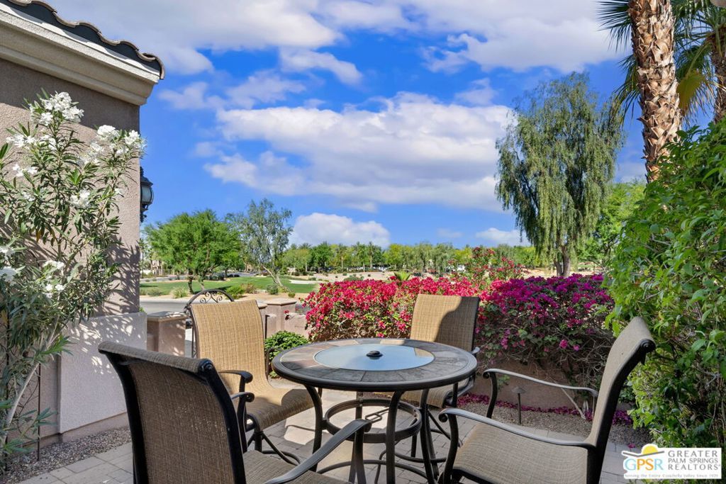 Desert resort living at its finest! This impeccably maintained, move-in ready home offers the perfect combination of comfort, style, and privacy. Featuring 2 bedrooms and 2.5 bathrooms, this Dorado model residence is ideal as a full-time home or a luxurious seasonal retreat. Step outside to your own private backyard oasis, complete with a resort-style pool and spa, a cozy fire pit, and inviting spaces designed for both relaxation and entertaining. The front courtyard is truly special offering gorgeous golf course views and stunning sunset vistas, making it the perfect place to enjoy morning coffee or unwind in the evening with a glass of wine. Inside, the home is light, bright, and beautifully cared for, with a spacious layout and a warm, inviting living room with a fireplace perfect for cooler desert nights. For those who appreciate golf course living, this home delivers the best of both worlds enjoy scenic views from the front courtyard while maintaining complete privacy in your backyard retreat. A rare opportunity to own a stunning desert escape in one of the Coachella Valley's most sought-after communities schedule your private showing today!