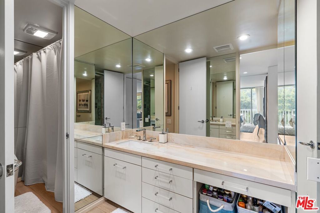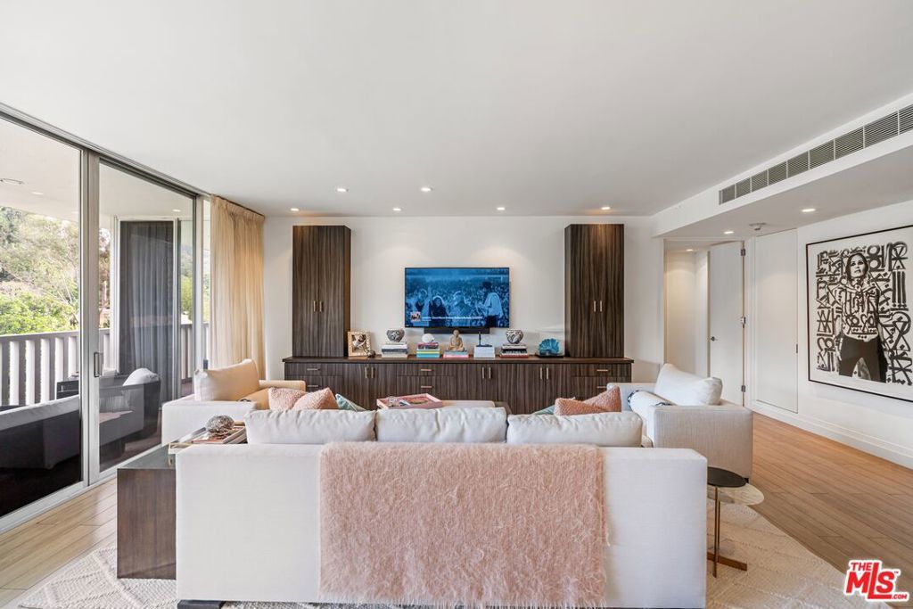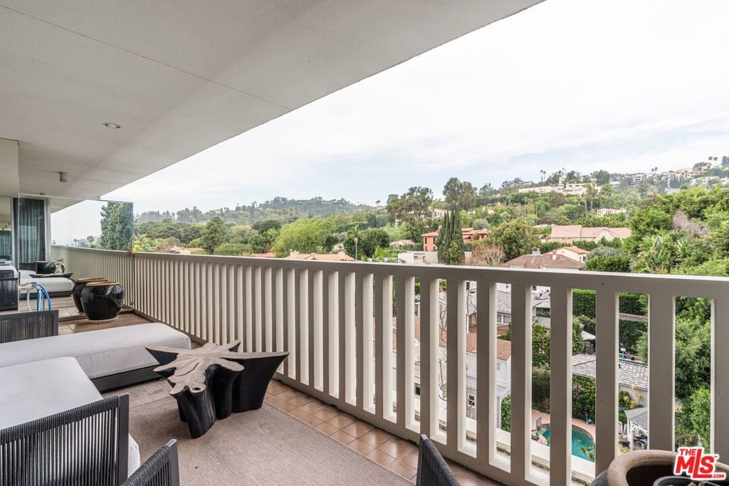 Refined style meets effortless California luxury in this beautifully updated residence at the iconic Sierra Towers, poised between Beverly Hills and the Sunset Strip. This serene one-bedroom home is quietly positioned overlooking the lush Hollywood Hills greenery. A formal entry opens to expansive living spaces with a wall of sliding glass doors leading to a large private terrace, ideal for dining, a sunset cocktail or for reading a book while lounging under the LA sky. The dining area flows into a remodeled kitchen featuring quartz countertops, stainless steel appliances, generous storage, a casual seating area, and a full laundry room. The spacious primary suite enjoys tranquil hill views and lounge area, a walk-in closet with tailored storage, and a spa-like bath with stone finishes. Additional highlights include wide-plank wood-look tile flooring, central heat and air, two entry closets, and a powder room. Residents enjoy world-class amenities: 24-hour concierge, valet and doorman service, a sparkling pool, spa, and a fully equipped fitness center. Located just minutes to world class dining and shopping in Beverly Hills and West Hollywood providing a rare opportunity to live where timeless sophistication meets ultimate convenience.