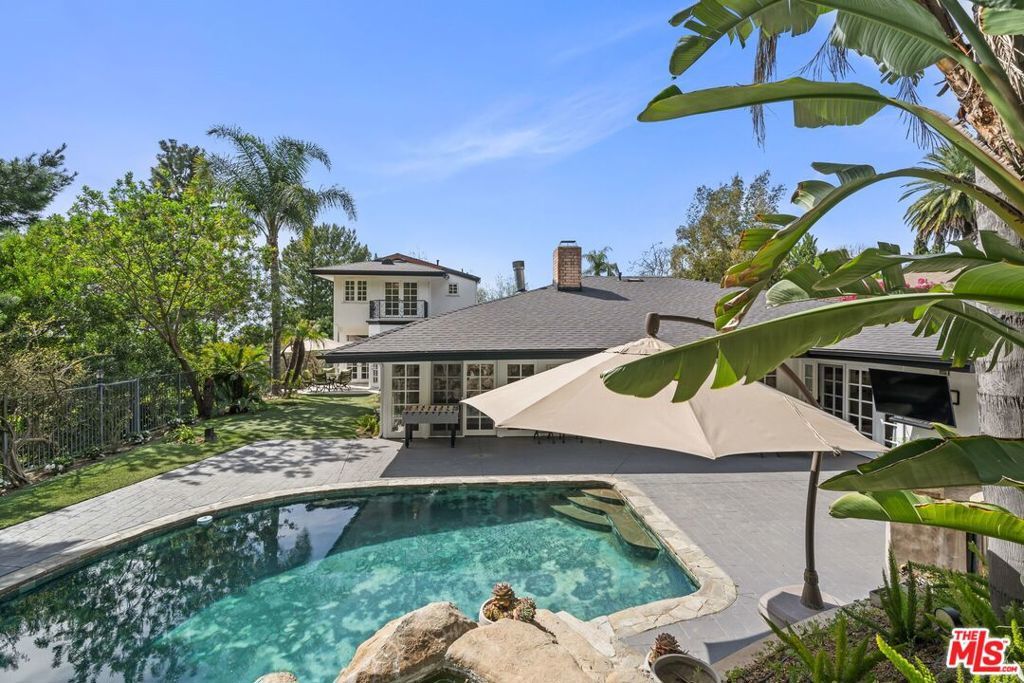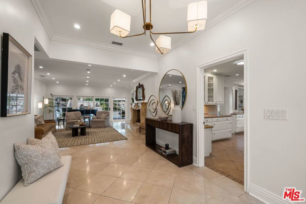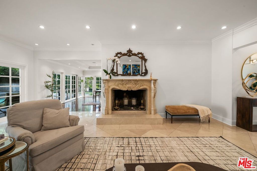 Situated on a quiet street in prestigious Trousdale Estates, this gated contemporary residence offers refined luxury and effortless indoor-outdoor living on nearly one-third of an acre of lush, tropical grounds. With over 5,000 square feet of living space, the home delivers scale, privacy, and a true resort-style experience rarely available for lease. Thoughtfully designed with an open, flowing floor plan and abundant natural light, the residence features six bedrooms and six and a half baths. The main level is ideal for comfortable living and entertaining, offering four en-suite bedrooms, including an expansive primary suite, along with formal living and dining rooms and a seamless connection between the kitchen, breakfast area, and den. This functional layout allows for easy single-level living while still providing generous space throughout.The first-floor primary suite serves as a private retreat, complete with an oversized walk-in closet and spa-style bath featuring a Jacuzzi soaking tub with jets, a separate oversized shower, and dual vanities. French doors open directly to the backyard, connecting to the pool and gardens. A chef's kitchen anchors the home, highlighted by a large island with a 5-burner Wolf range, custom cabinetry, and ample counter space. The gourmet kitchen opens to a sunny breakfast room and flows into a spacious family room/den with a fireplace, bar, and surround sound system, ideal for everyday living and entertaining. The home also features three fireplaces in the formal living room, den, and dining room. Upstairs, two generously sized bedrooms share a large bath, offering flexibility for guests, a home office, or extended living. A dedicated game and entertainment room elevates the home's lifestyle appeal, featuring movie theater seating, an 84" screen, and a pool table, perfect for hosting or relaxing at home. French doors and windows line the rear of the home, opening to a backyard that feels like a private tropical paradise. The grounds include mature landscaping, multiple terraces, and a resort-style pool and spa with heater, along with a large outdoor bar and BBQ area designed for effortless entertaining.In front, enjoy your own basketball hoop with room to play-another added amenity that enhances the property's versatility. Additional features include high ceilings, recessed lighting, copper plumbing, ample storage, a grand double-door entry, parking for up to six cars, and full gated privacy.Located moments from world-class dining, shopping, and entertainment, this exceptional property offers the best of Beverly Hills living. This is a rare opportunity to lease a true garden estate in one of the city's most coveted neighborhoods. Also available fully furnished for $35,000