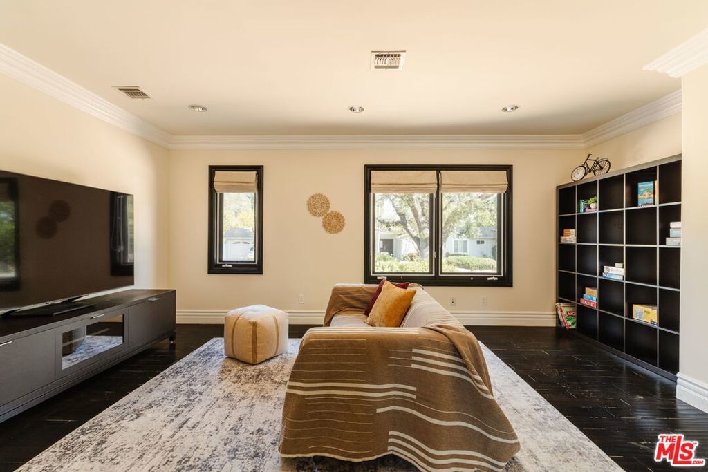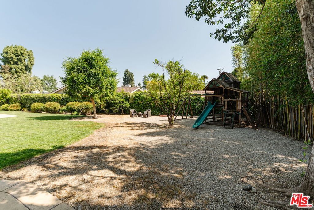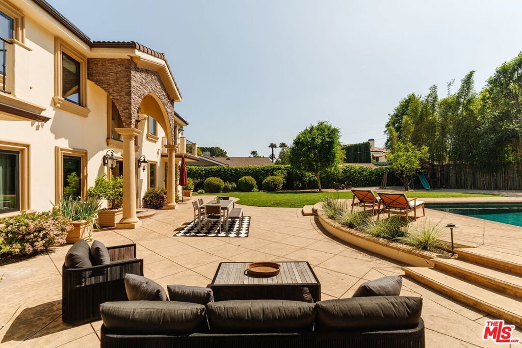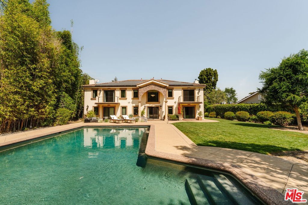 Nestled in the highly sought-after Amestoy Estates neighborhood, this expansive estate offers six bedrooms, eight bathrooms, and sits on an impressive, flat 18,000+ square foot lotembodying a graceful blend of scale, comfort, and refined living. Introduced by a grand circular driveway, the home reveals itself with quiet elegance and was completely reimagined and expanded in 2006, where a beautifully composed layout creates a natural harmony between elevated entertaining and everyday ease.Well designed, each bedroom is appointed as a spacious ensuite, offering a sense of retreat and comfort throughout. A private media room with its own bathroom and a dedicated gym further enhance the home, creating spaces that invite both relaxation and recreation.From the moment you enter, the home unfolds with an effortless, natural flow. The living room, highlighted by dramatic two-story ceilings, transitions seamlessly into the formal dining area, then onward to the kitchen and family room, creating a series of light-filled, open spaces. Sunlight pours in, while French doors open to the backyard, blurring the line between indoors and out and allowing each space to feel effortlessly connected.At the heart of the home, the chef's kitchen serves as a natural gathering placeopen, inviting, and thoughtfully appointed with a large island, stainless steel appliances, and a walk-in pantry. A charming breakfast sitting area completes the space, making it ideal for both casual mornings and larger gatherings.Warmth is woven throughout, with fireplaces anchoring both the dining room and the primary suite, adding a sense of intimacy and quiet sophistication.Upstairs, four generously sized ensuite bedrooms offer comfort and calm, each thoughtfully designed with ample closet space and beautifully finished baths.The primary suite unfolds as a true sanctuaryexpansive yet serene, featuring a sitting area with a fireplace, dual walk-in closets, and a private balcony overlooking the lush grounds. The spa-inspired bath evokes a sense of escape, with refined finishes and a tranquil, restorative atmosphere.Outside, the grounds feel both expansive and secluded. Set on a flat lot and framed by mature bamboo and lush hedging, the backyard offers exceptional privacy. A sparkling pool anchors the space, surrounded by a sprawling lawn, a dedicated playground, and a collection of fruit trees. A separate structure with a three-quarter bathcurrently used as a gymoffers incredible flexibility and could easily serve as a pool house, office, or guest quarters, adding to the versatility of the outdoor setting.Offering a rare combination of space, comfort, and versatility, this home presents an exceptional opportunity to experience the best of Amestoy Estates living.