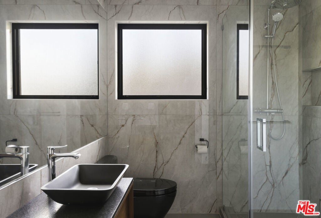 Rare, design-forward retreat in the heart of Silver Lake, set on a lush 7,724 sqft double lot just moments from the Reservoir, Meadow, and neighborhood hotspots. Thoughtfully created to blur the line between indoor and outdoor living, the home features expansive windows and multiple outdoor spaces including a ~500 sqft front deck, ~275 sqft rear deck, private garden, and spacious backyard. The main residence offers a modern aesthetic with high-end finishes, large porcelain tile floors, curated lighting, and European soft-close doors. Three Mitsubishi split-system A/C units provide year-round climate comfort. The kitchen is beautifully appointed with natural stone surfaces, premium appliances (Liebherr, GE Advantium, Miele), and seamless flow for indoor-outdoor dining. The primary suite connects to a spa-inspired bath with a Hansgrohe rain shower and custom vanity. Additional features include a tankless water heater, Ring security system, two-cars paver driveway off street parking, and landscaped grounds with irrigation. Pet friendly and available now! A separate second-floor ADU is only occasionally used by the owner, maintaining a high level of privacy. A rare opportunity to live in a serene, design-driven home in one of LA's most sought-after neighborhoods.