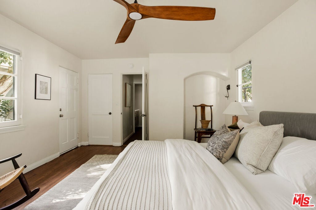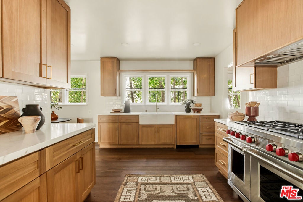 Located in the serene Beverly Crest enclave of Beverly Hills Post Office, this 1928 Spanish residence originally designed and built as the personal home of architect James Conway seamlessly blends timeless character with modern livability. Featuring four bedrooms and three newly remodeled bathrooms, the home offers expansive living spaces that honor its architectural heritage while catering to today's lifestyle. The dramatic step-down living room showcases vaulted king post truss ceilings, rich original details, and a striking arched, tile-accented fireplace. The newly updated chef's kitchen includes an 8-burner Wolf range, a double-door Sub-Zero refrigerator, ample storage, an eat-in dining area, and convenient access to both a side entrance and the attached two-car garage with laundry. Upstairs, three spacious bedrooms offer privacy and abundant natural light. The primary suite is a true retreat, featuring a private balcony, separate living and dressing areas, and a spa-inspired bath with dual vanities and a walk-in shower all thoughtfully designed to capture light from both the front and rear of the home. Just minutes from Coldwater Canyon Park and Franklin Canyon Park, and located within a highly regarded school district, this rare lease offering presents an exceptional opportunity to experience iconic Los Angeles architecture with comfort, privacy, and proximity to nature.