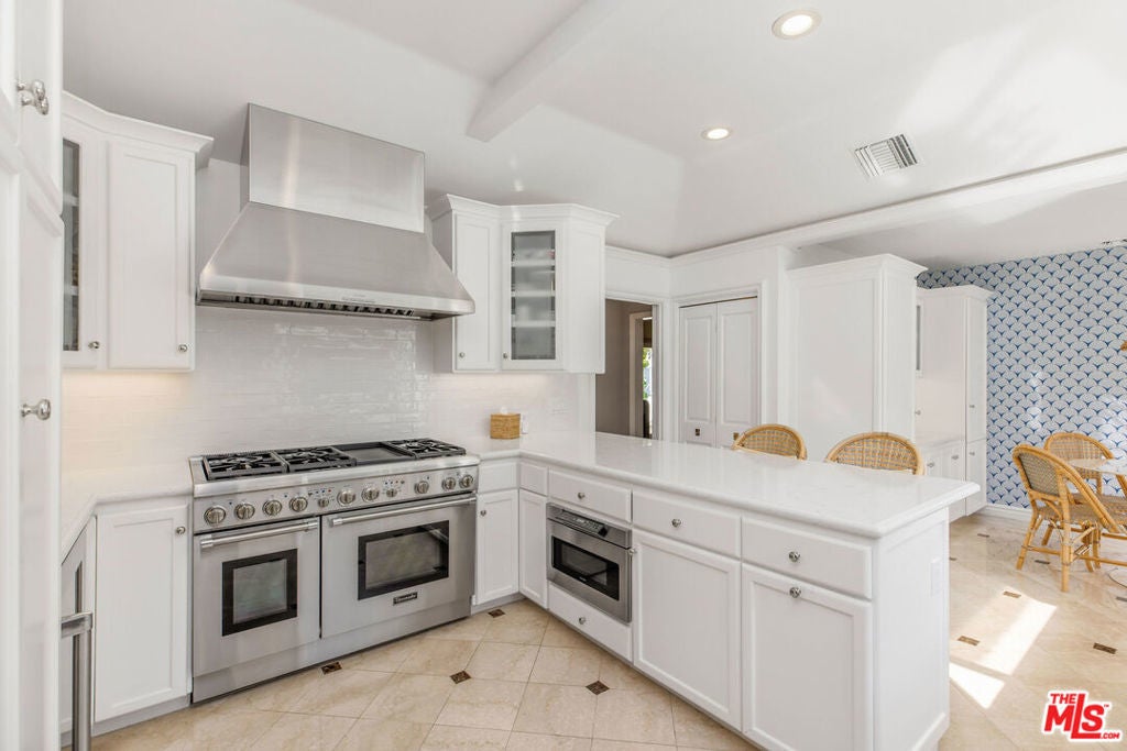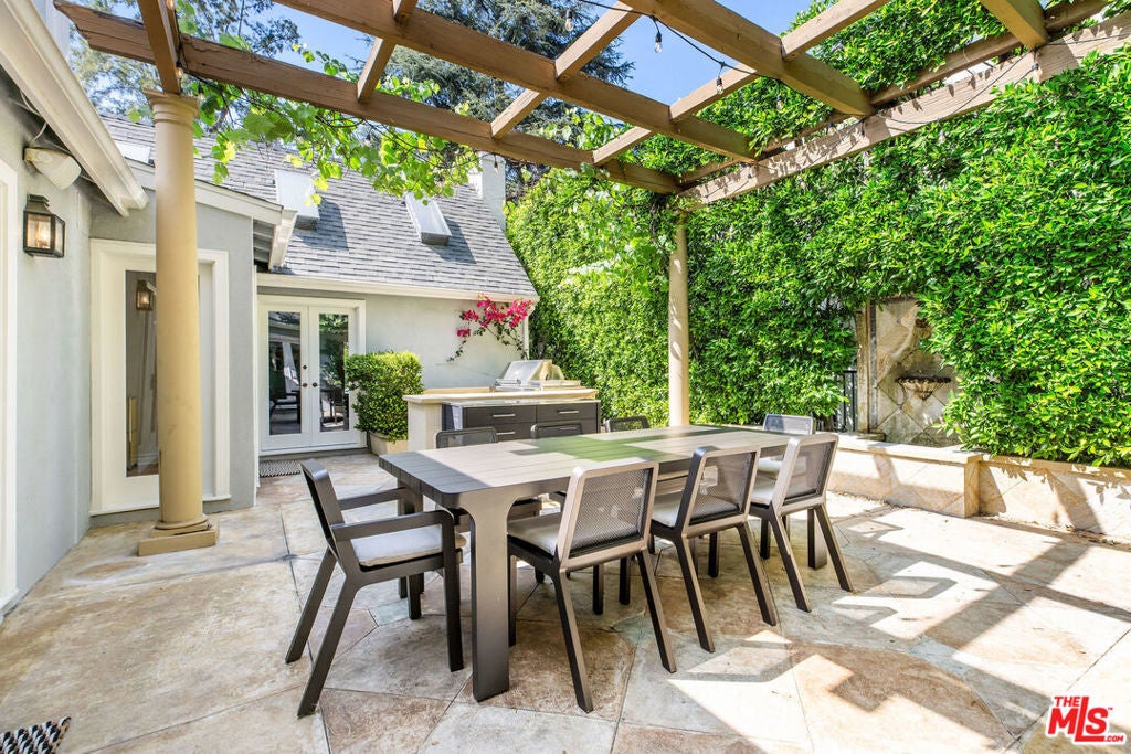Set up slightly from the street, this single-level, extensively remodeled Traditional home offers a rare opportunity to own a move-in ready property in the prestigious Little Holmby neighborhood of Westwood. Upon stepping into the formal entry from the covered porch, you find a cheery and welcoming home with hardwood floors throughout and natural light streaming in through every room. On one side is a grand formal living room with a stately fireplace, soaring cathedral ceilings, numerous sky lights, and French doors leading to the patio. On the other side is a stately formal dining room with tree-top views encouraging fabulous dinner parties late into the night. Adjoining the dining room is an inviting and updated gourmet kitchen beckoning to the aspiring chef or trained professional. Features include high-end stainless appliances, built-in microwave, wine cooler, white granite counters, multiple workspaces, bay window, bar seating and eat-in breakfast area. The other public areas in the front of the house include a bright separate study/office with glass door to the outside, welcoming family room with peaked, exposed wood ceiling, sliding doors, warm fireplace, and a lovely powder room. The three bedrooms comprise the rear portion of the house with ensuite baths offering total privacy and comfort. The two family bedrooms are generous in size and have copious amounts of closet space. The primary bedroom is a tranquil escape from the hectic world outside with raised ceilings, fireplace, sumptuous bath, large closet and direct access to the pool. The convivial exterior areas are just the icing on the cake for this wonderful home. Accessible from the living room, office, family room and one bedroom is an amazing, private patio bordered by mature landscaping featuring an outdoor kitchen plus barbeque, partially covered dining or seating area and babbling fountain adding just the right touch of atmosphere. This is the space where you will spend all your time entertaining friends for al fresco parties, catching up with family over a glass of wine or curling up with a good book and enjoying the serenity. Additionally, there is a sparkling pool at the back beckoning all to come and enjoy a playful afternoon of water sports. The house also has a lower direct access garage with a storage area lined with shelves and closets perfect for immediate storage after a successful Costco run and laundry area with laundry chute from above. Located just minutes away from the relaxing atmosphere at Holmby park, the world-class shopping at Century City Westfield mall, the glamour of Beverly Hills, the vibrant nightlife of West Hollywood, the cultural offerings of UCLA/Westwood and the prestigious, award-winning Warner Avenue elementary school, this is the house you have been waiting for.
