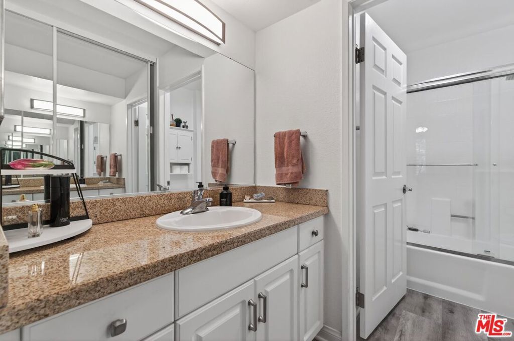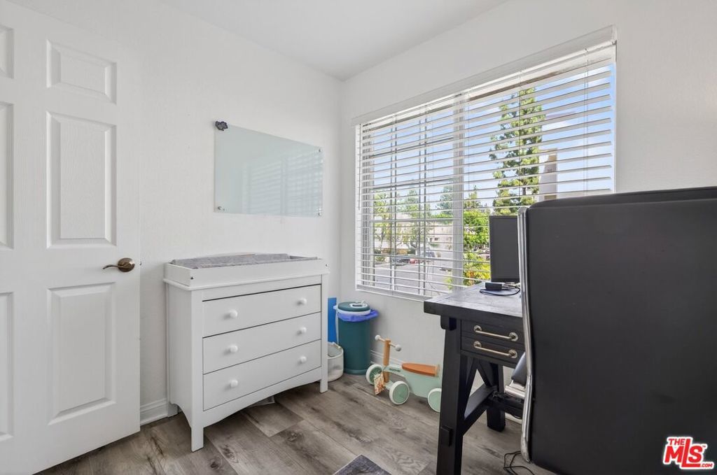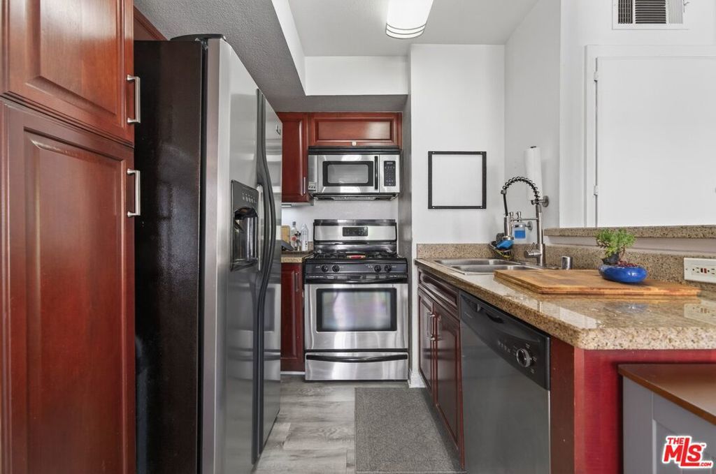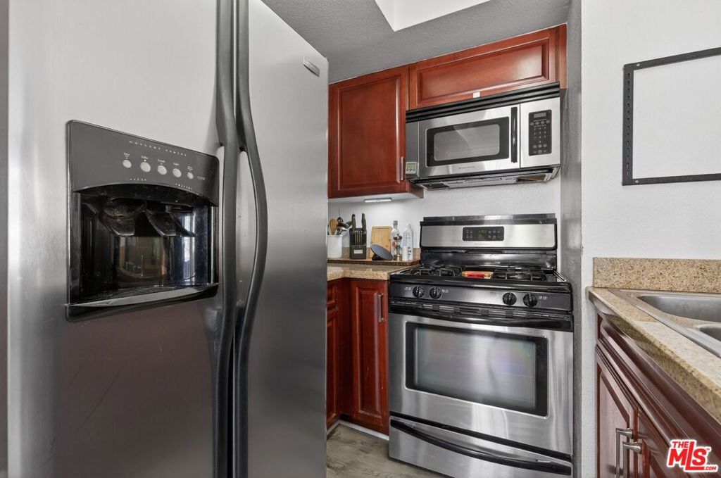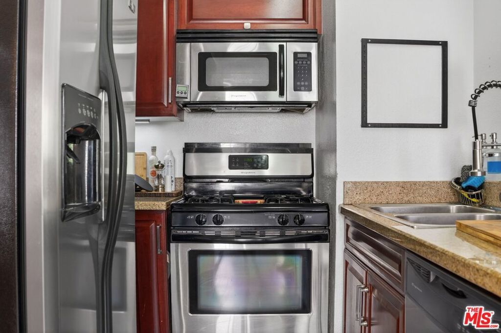 Welcome to your new home! This rare, delightful 1 bedroom (plus a den), 1 bathroom unit offers 770 square feet of charm and comfort. Nestled in the heart of the complex, this corner unit, with no neighbors in front, provides the perfect blend of privacy and accessibility. Large windows fill the space with natural light, creating a warm and inviting atmosphere. The den is a fantastic bonus, ideal for a home office, a playroom for kids, or even a cozy guest bedroom. Picture yourself relaxing by the fireplace in the living room or enjoying sunny days on the wraparound balcony. The kitchen, equipped with stainless steel appliances, is ready for your culinary adventures, all while being tucked away from busy streets for a peaceful retreat. The unit comes with assigned tandem parking spots. Now, let's talk about the community! "The Met" is a gated oasis with 24/7 guard services, making you feel secure and at home. You'll love the resort-style amenities, including refreshing pools, a clubhouse for gatherings, a fitness room to keep you active, and courts for tennis and basketball. Plus, there's a playground for the little ones and laundry facilities for added convenience. It's a pet-friendly community, too, so your furry friends are welcome! (FHA-approved!) And the location? You'll be in the vibrant Woodland Hills Warner Center area, surrounded by an array of fantastic restaurants, shops, and entertainment. Explore the Village Woodland Hills, indulge in retail therapy at Westfield Topanga Mall, or pick up groceries at Costco, Target, Whole Foods, or Trader Joe's. Don't forget movie nights at the nearby AMC theaters! Everything you need is just moments from your doorstep.