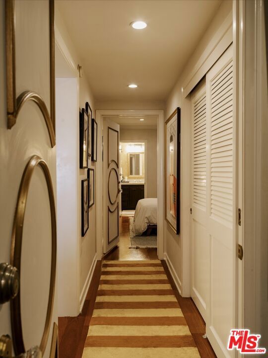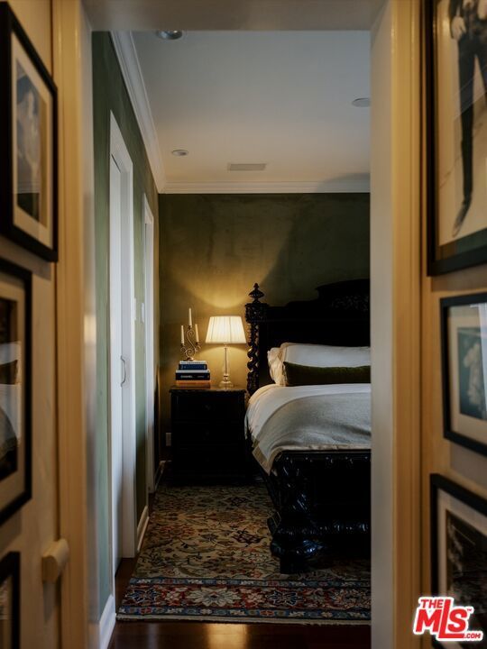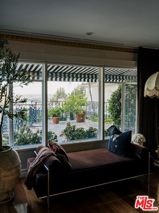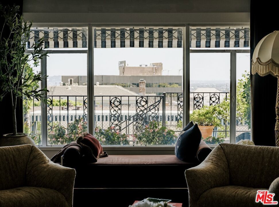 Perched in the Hollywood Hills just moments above the iconic Sunset Strip, this elegant two bedroom, two bath residence evokes the charm and romance of a classic European pied-a-terre, thoughtfully reimagined for modern California living. From the moment you enter, the home unfolds with warmth and character. Rich hardwood floors, curated lighting, and refined detailing set the tone, while expansive French windows draw in soft natural light and frame tranquil views of the lush courtyard and shimmering pool below. The living spaces feel both intimate and elevated, designed for quiet mornings, effortless entertaining, and everything in between. The kitchen blends function with personality, featuring deep green cabinetry, marble surfaces, and a timeless, tailored aesthetic that complements the home's overall design narrative. Just beyond, the dining area is anchored by a chandelier and custom finishes, creating a setting that feels both sophisticated and inviting. Privately positioned on opposite ends of the residence, both bedrooms offer a sense of separation rarely found in condominium living. The primary suite is serene and generous in scale, complete with custom detailing and a calming, retreat like ambiance. The secondary bedroom provides flexibility for guests, a home office, or creative space, all while maintaining its own sense of privacy.Throughout the home, moments of design surprise and delight unfold, from layered textures and bespoke finishes to thoughtfully styled vignettes that give the residence a distinct point of view. Set within a secure, well maintained building, residents enjoy access to a pool and spa, along with gated, side by side parking for two. Just minutes from the energy of Sunset Boulevard, yet tucked away in a peaceful hillside setting, this home offers a rare balance of vibrancy and retreat. A residence that lives with intention, style, and soul, capturing the essence of elevated Hollywood Hills living moments from the best the Sunset Strip has to offer!