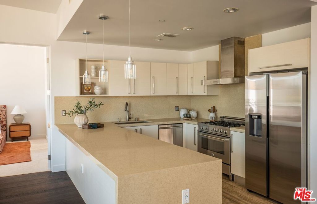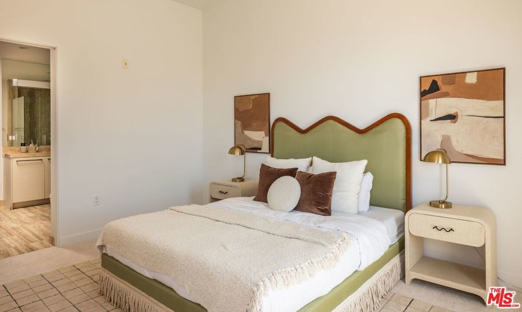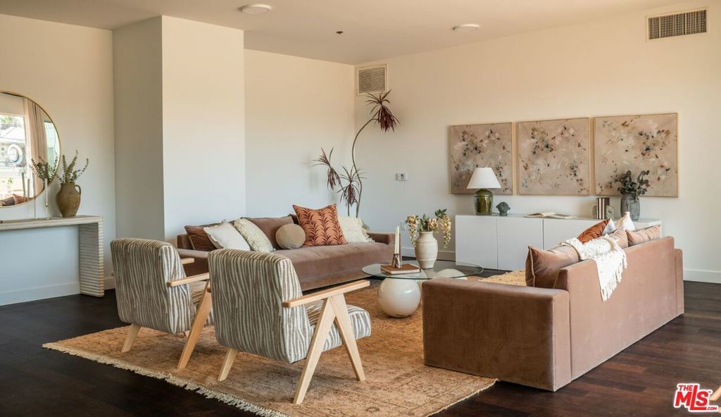Perched on the top floor of this iconic architectural gem designed by Zoltan Pali, FAIA. This sophisticated Penthouse conveys urban elegance and the coveted California lifestyle with an open concept floor plan, soaring ceilings, sleek wood floors and expansive walls of glass that open seamlessly onto a sprawling patio. Framed by lush meticulously designed landscaping, the patio offers stunning hilltop views, perfect for both relaxation and entertaining. The chef-inspired kitchen, complete with a breakfast bar, is ideal for hosting gatherings or enjoying casual meals. Two generously sized master suites each feature their own private patios, luxurious en-suite bathrooms, and walk-in closets, providing a perfect blend of comfort and privacy. Additional amenities include side-by-side parking, a private storage room, and in-unit laundry for ultimate convenience. Located steps from Melrose Place in the vibrant heart of West Hollywood, this Penthouse is a rare opportunity to experience elevated living in LA's most desirable neighborhood.