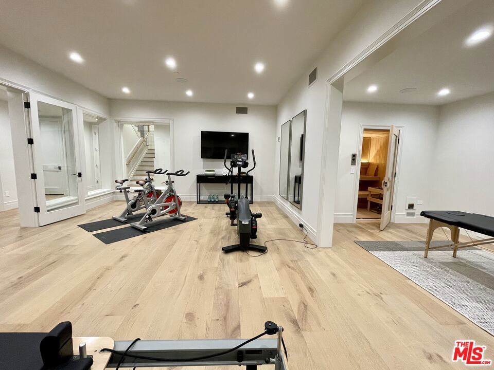 State of the art newer construction in the prestigious Brentwood Park area of Los Angeles. Completed in 2021, this private estate sits behind a secure and private circular driveway. It features 8 bedrooms and 10 bathrooms that has been carefully designed. The attention to detail and grand scale shows throughout the home with graciously sized rooms, high ceilings, and custom cabinetry. The bespoke chef's kitchen with Wolf, Subzero and la Cranche appliances flows seamlessly to the family room with a bar area that opens with an automatic sliding pocket door that disappear to allow a seamless indoor/outdoor entertaining heaven. Upstairs, the large primary retreat features a seating room a dual closet, and an oversized primary bathroom. In addition on the 2nd floor you will find 4 en-suites and a study/living area. Take the elevator down to the lower level where an oversized great room with a showcase bar and wine cellar, a large gym with sauna and wellness area, an oversized movie theater with candy bar and 2 additional en-suites awaits. The lush back yard has a large pool with spa, a bbq area and heated patio area. This smart home is on Savant system and has 3 car garage. Minutes away from the Brentwood Country Mart, The Pacific Palisades Village and the beach, this home is a true Brentwood Park gem.